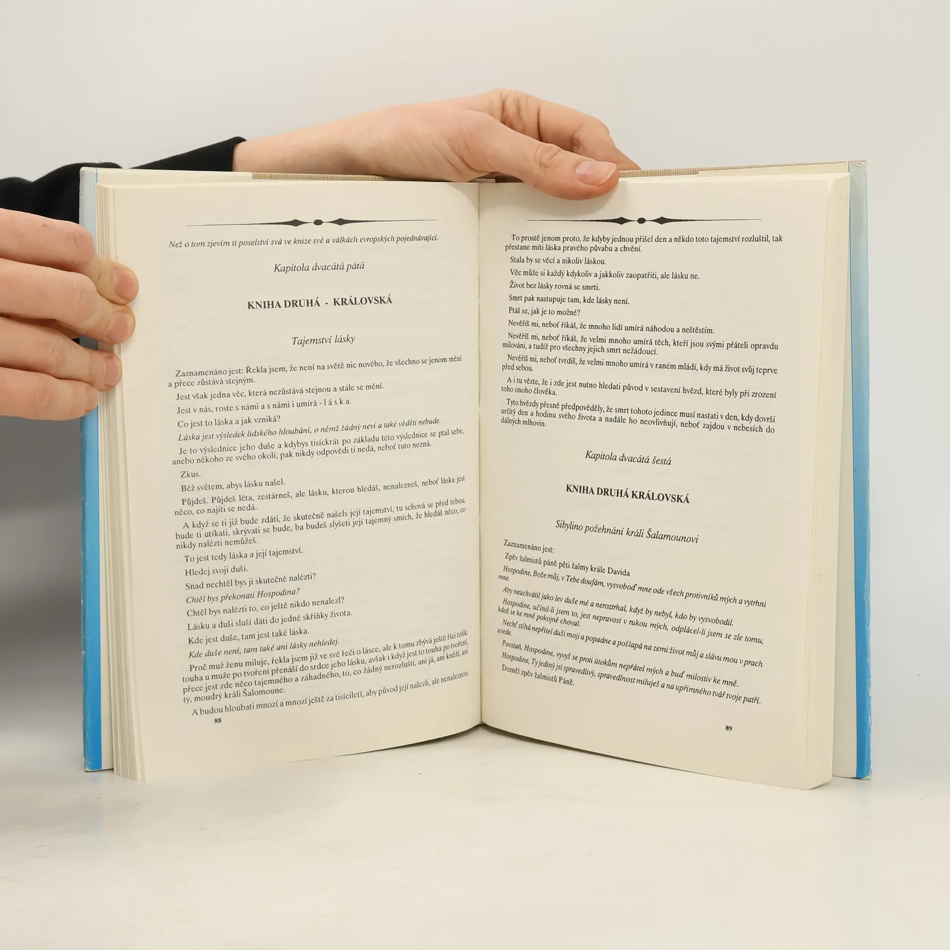 Kniha obsahuje všech devět knih, které Sibyla Kumana napsala. Kniha první obsahuje první proroctví Šalamounovo Kniha druhá obsahuje proroctví o mužích, poddanství a lásce Kniha třetí pojednává o Světě novém Kniha čtvrtá pojednává o lidech v Novém světě Kniha pátá obsahuje proroctví o zemích asijských a afrických Kniha šestá pojednává o Evropě Kniha sedmá obsahuje proroctví o válkách evropských a světových Kniha osmá obsahuje proroctví o Dni posledním Kniha devátá obsahuje vzkaz všemu lidstvu Cenzura v době pobělohorské prakticky znemožnila, aby proroctví, která Sibyla vyjevila králi Šalamounovi byla jakýmkoliv způsobem publikována. Poslední opis byl vydán v roce 1890 a byl zcela rozebrán. Slova této vzácné ženy se postupem doby různě upravovala a zneužívala. Vinu na této skutečnosti hledejme především u překladatelů, kteří knihy upravovali k potřebě vládnoucích skupin.