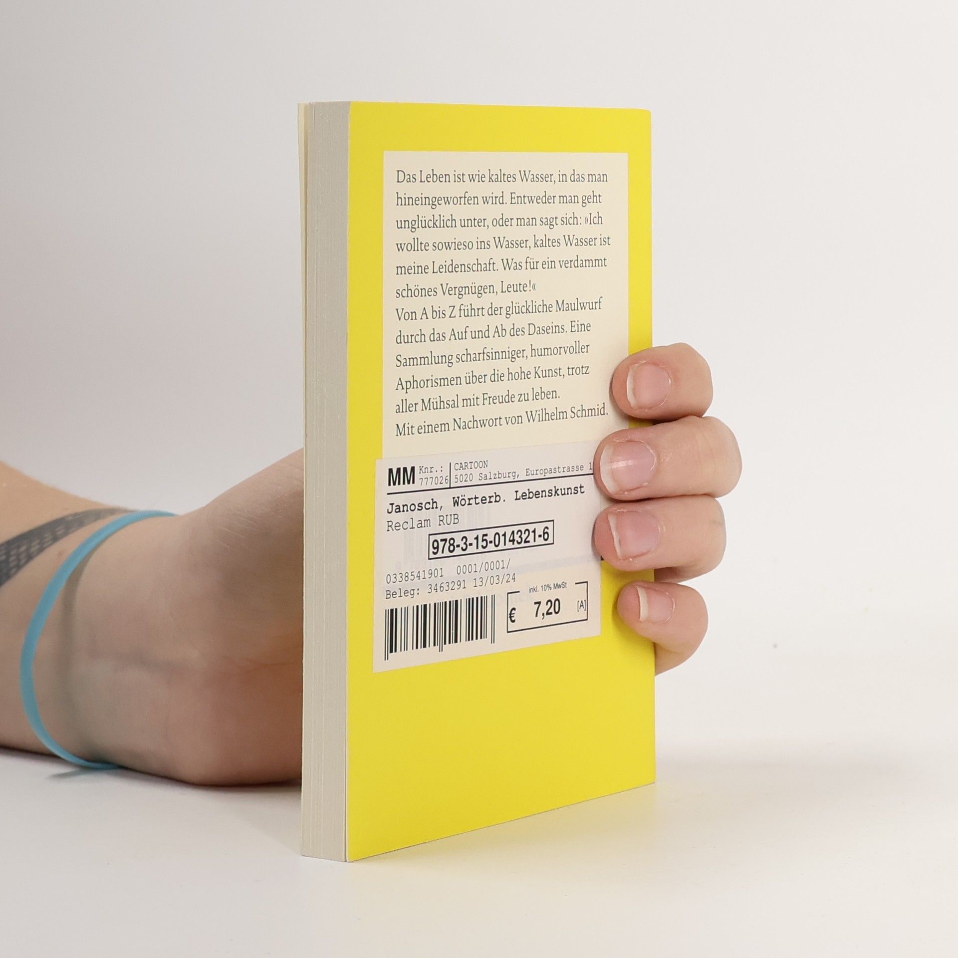 Das Leben ist wie kaltes Wasser, in das man hineingeworfen wird. Entweder man geht unter oder man sagt sich: »Ich wollte sowieso ins Wasser, kaltes Wasser ist meine Leidenschaft. Was für ein verdammt schönes Vergnügen, Leute!« Und da haben wir sie auch schon, Janoschs Lebenskunst. Von A bis Z führt der glückliche Maulwurf durch die Sternstunden und Wechselfälle des Lebens. Bratkartoffeln und Brillenträger, Emanzipation und Einsamkeit – Janoschs Wörterbuch ist eine Sammlung scharfsinniger, humorvoller Aphorismen über die Kunst, das Dasein trotz aller Mühsal zu genießen. Mit Janoschs unverwechselbaren Zeichnungen und mit einem Nachwort des Philosophen und Bestsellerautors Wilhelm Schmid. »Freudig zu leben, trotz allem, das ist für Janosch Lebenskunst.« Wilhelm Schmid