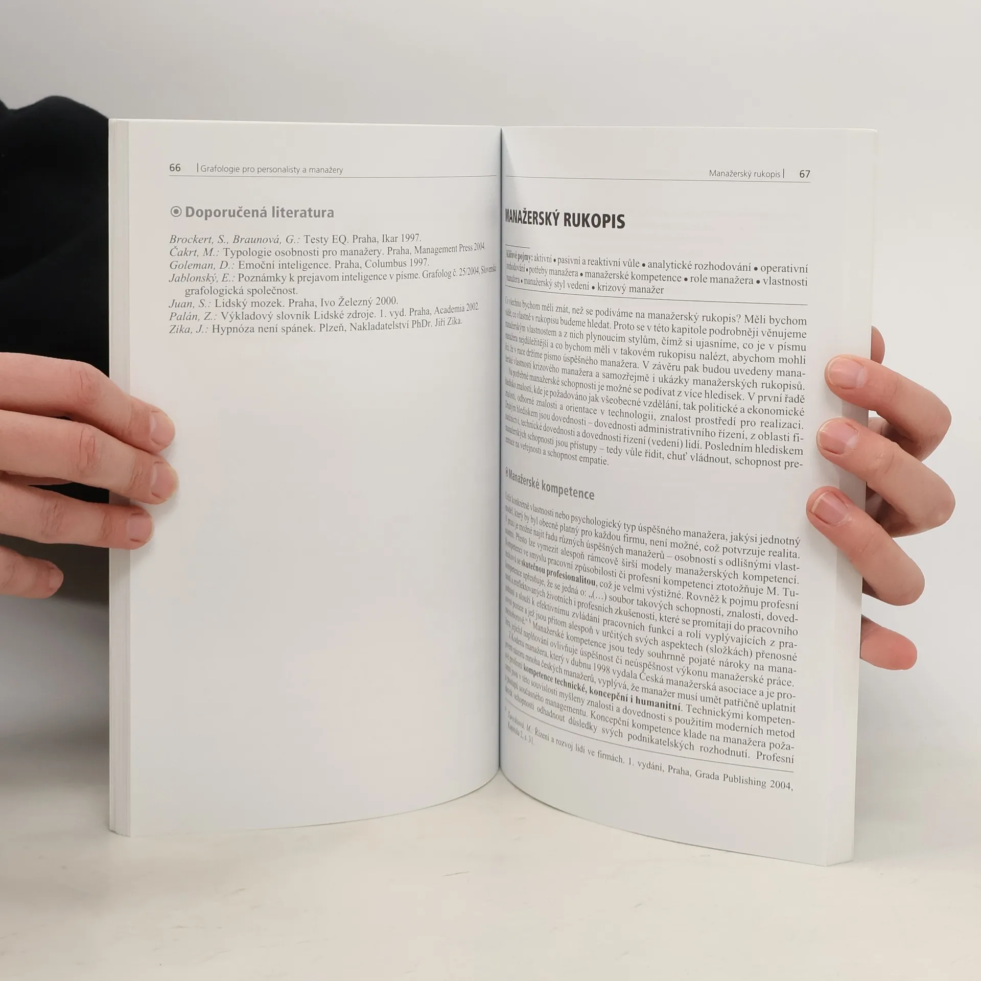 Chcete se rychleji orientovat v myšlení a chování svých profesních partnerů? Toužíte podpořit své sebepoznání, vlastní seberozvoj a zvýšit svou sociální inteligenci? Pomoci vám může Grafologie pro personalisty a manažery, nová kniha renomovaných autorek a grafoložek Vlaďky Fischerové-Katzerové a Dany Češkové-Lukášové. Svou pozornost zaměřily tentokrát na manažery, personalisty a odborníky z oblasti rozvoje lidských zdrojů. Srovnávají základní styly manažerského vedení s jednotlivými styly písma, vše podtrhují názornými příklady z praxe. Zabývají se i vlastnostmi, které jsou žádané u personalistů, a popisují, jakým způsobem se projevují v písmu