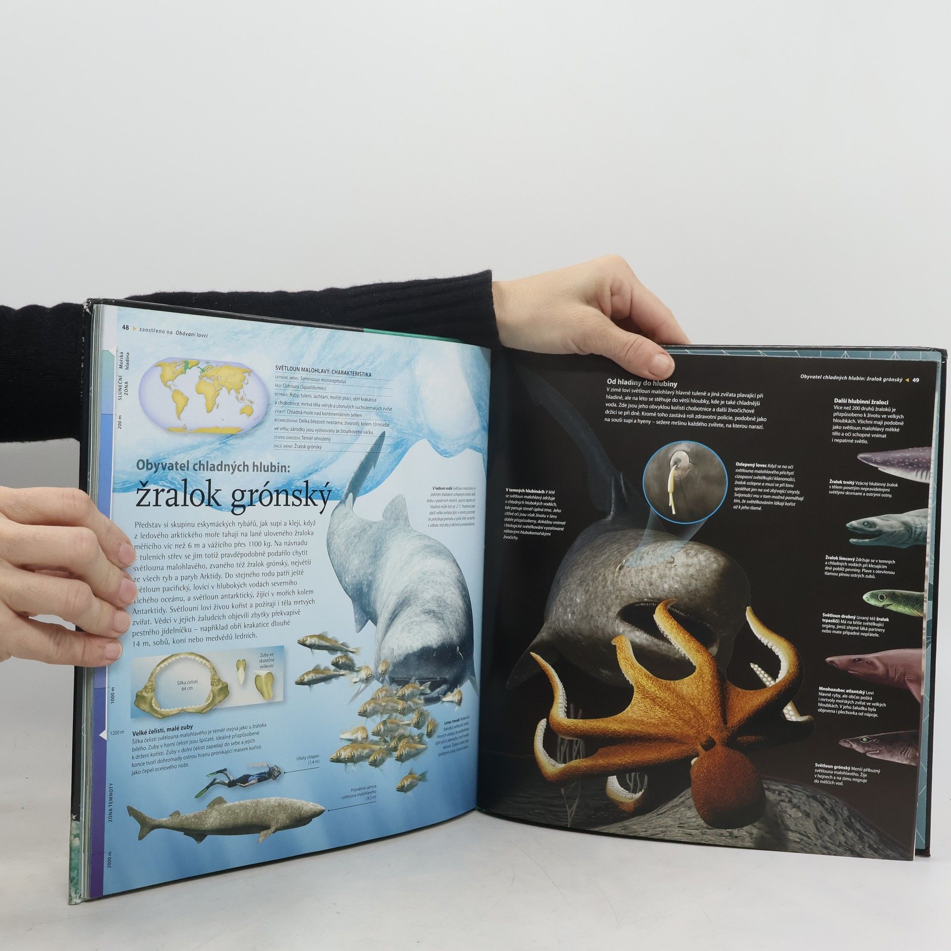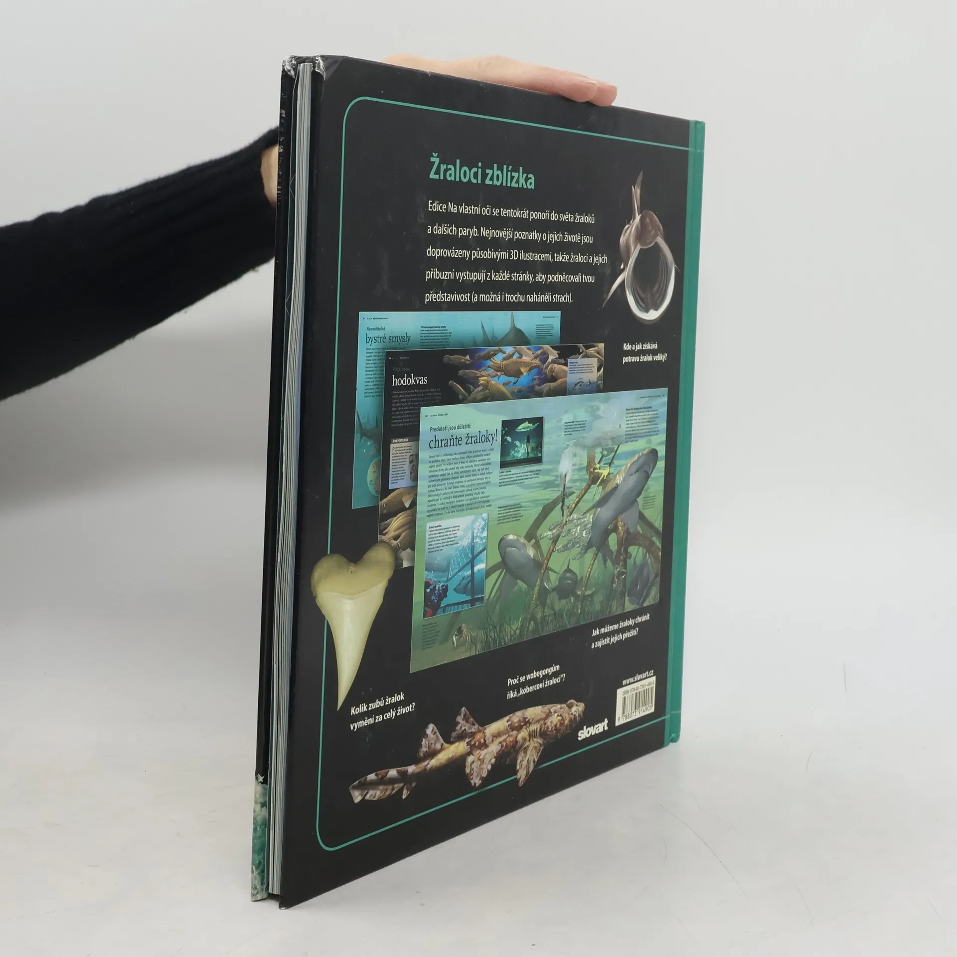 Kde a jak získává potravu žralok veliký? Kolik zubů žralok vymění za celý život? Jak můžeme žraloky chránit a zajistit jejich přežití? Edice Na vlastní oči se v novém dílu ponoří do světa žraloků a dalších paryb, vyskytujících se v mořích v nejrůznějších tvarech a velikostech. Nejnovější poznatky o jejich životě jsou doprovázeny působivými 3D ilustracemi, takže žraloci a jejich příbuzní vystupují z každé stránky a podněcují představivost dětských čtenářů (a možná i trochu nahánějí strach).