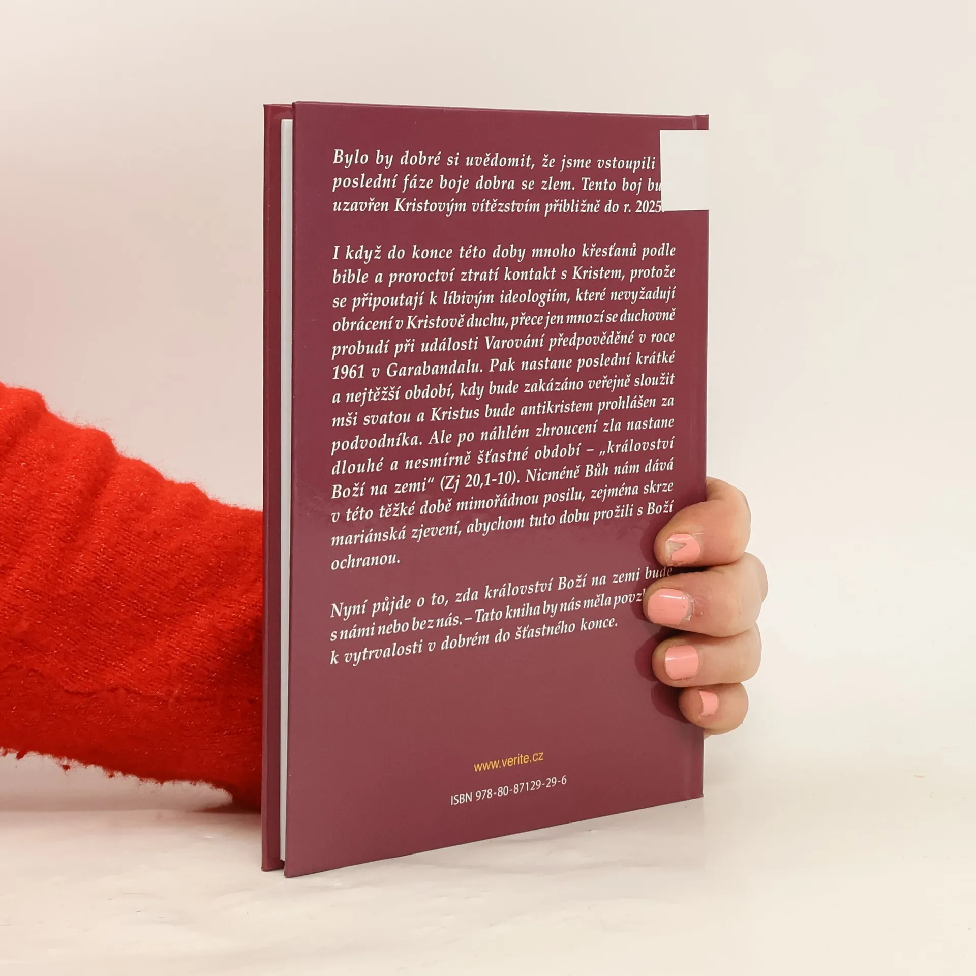 Bylo by dobré si uvědomit, že jsme vstoupili do poslední fáze boje dobra se zlem. Tento boj bude uzavřen Kristovým vítězstvím přibližně do r. 2025. I když do konce této doby mnoho křesťanů podle bible a proroctví ztratí kontakt s Kristem, protože se připoutají k líbivým ideologiím, které nevyžadují obrácení v Kristově duchu, přece jen mnozí se duchovně probudí při události Varování předpověděné v roce 1961 v Garabandalu. Pak nastane poslední krátké a nejtěžší období, kdy bude zakázáno veřejně sloužit mši svatou a Kristus bude antikristem prohlášen za podvodníka. Ale po náhlém zhroucení zla nastane dlouhé a nesmírně šťastné období – „království Boží na zemi“ (Zj 20,1-10). Nicméně Bůh nám dává v této těžké době mimořádnou posilu, zejména skrze mariánská zjevení, abychom tuto dobu prožili s Boží ochranou. Nyní půjde o to, zda království Boží na zemi bude s námi nebo bez nás. – Tato kniha by nás měla povzbudit k vytrvalosti v dobrém do šťastného konce.