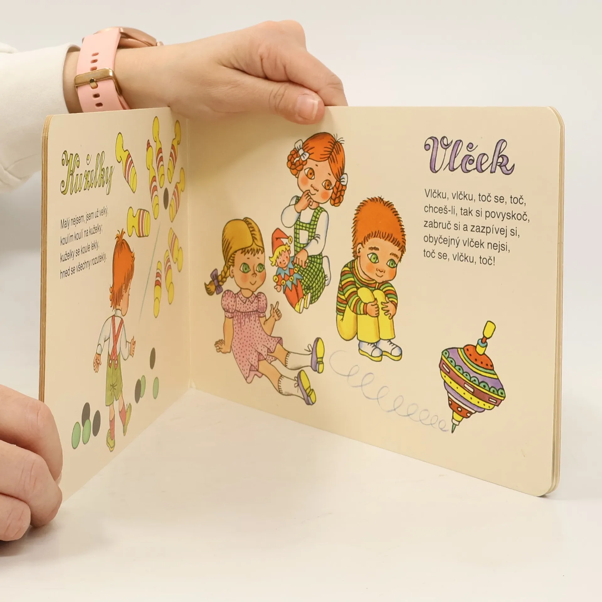 Leporelo s říkadly Františka Hrubína a ilustracemi známé dětské malířky Heleny Zmatlíkové. Pro děti od 2 let. 10. vydání.