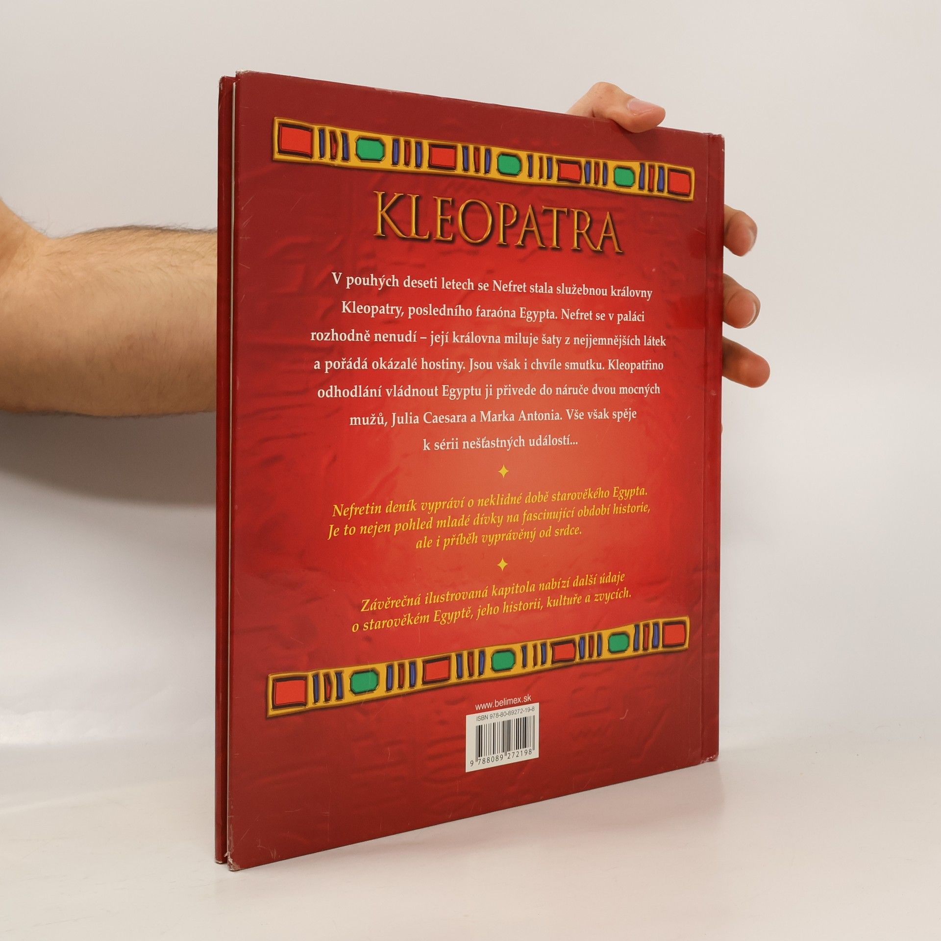 V pouhých deseti letech se Nefret stala služebnou královny Kleopatry, posledního faraóna Egypta. Nefret se v paláci rozhodně nenudí - její královna miluje šaty z nejjemnějších látek a pořádá okázalé hostiny. Jsou však i chvíle smutku. Kleopatřino odhodlání vládnout Egyptu ji přivede do náruče dvou mocných mužů, Julia Caesara a Marka Antonia. Vše však spěje k sérii nešťastných událostí. Nefretin deník vypráví o neklidné době starověkého Egypta. Je to nejen pohled mladé dívky na fascinující období historie, ale i příběh vyprávěný od srdce. Závěrečná ilustrovaná kapitola nabízí další údaje o starověkém Egyptě, jeho historii, kultuře a zvycích.