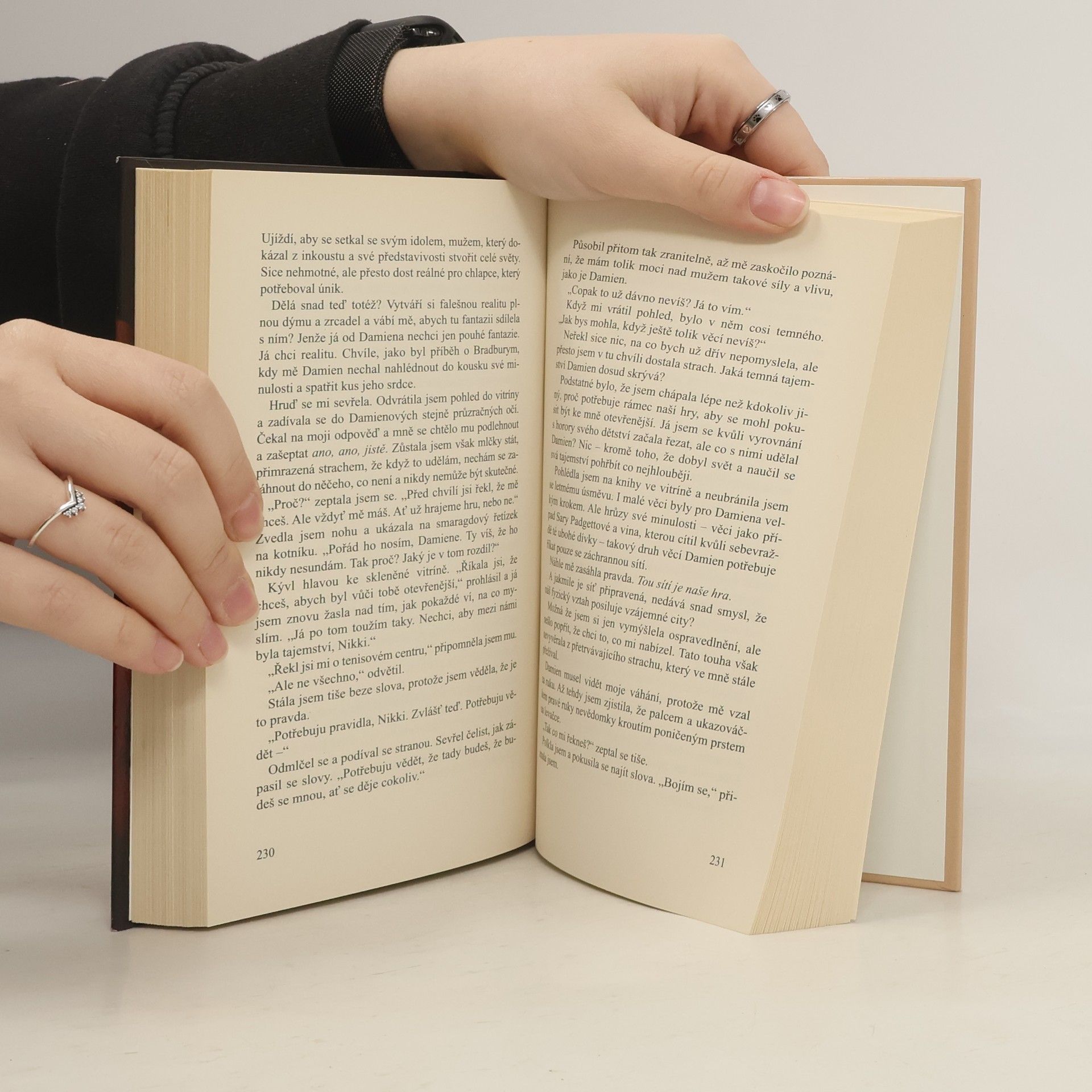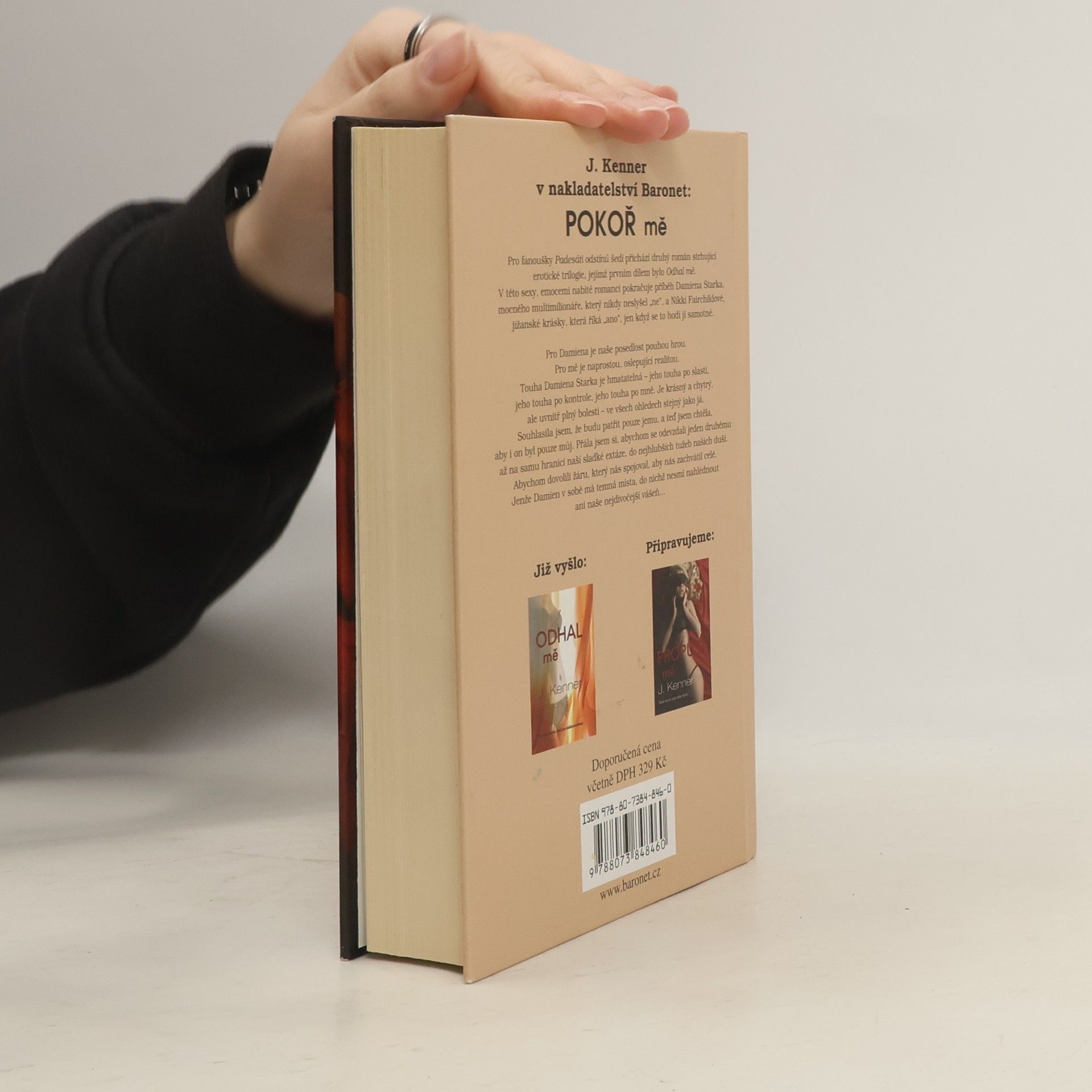 Pro fanoušky Padesáti odstínů šedi a Obnažené přichází druhý román strhující erotické trilogie, jejímž prvním dílem bylo Odhal mě. V této sexy, emocemi nabité romanci pokračuje příběh Damiena Starka, mocného milionáře, který nikdy neslyšel „ne“, a Nikki Fairchildové, jižanské krásky, která říká „ano“, jen když se to hodí jí samotné. Pro Damiena byla naše posedlost pouhou hrou. Pro mě byla naprostou, oslepující realitou. Touha Damiena Starka byla hmatatelná – jeho touha po slasti, jeho touha po ovládání, jeho touha po mně. Byl krásný a chytrý, ale uvnitř plný bolesti – ve všech ohledech stejný jako já. Souhlasila jsem, že budu patřit pouze jemu, a teď jsem chtěla, aby i on byl pouze můj. Přála jsem si, bychom se odevzdali jeden druhému až na samu hranici naší sladké extáze, do nejhlubších tužeb našich duší. Dovolit žáru, který nás spojoval, aby nás zachvátil celé. Jenže Damien v sobě měl temná místa, do nichž nesměla nahlédnout ani naše nejdivočejší vášeň. Prahla jsem znát jeho tajemství, prahla jsem po tom, aby se mi vzdal stejně, jako jsem se vzdala já jemu. Naše problematická minulost nás však může víc spojit – nebo definitivně zničit.