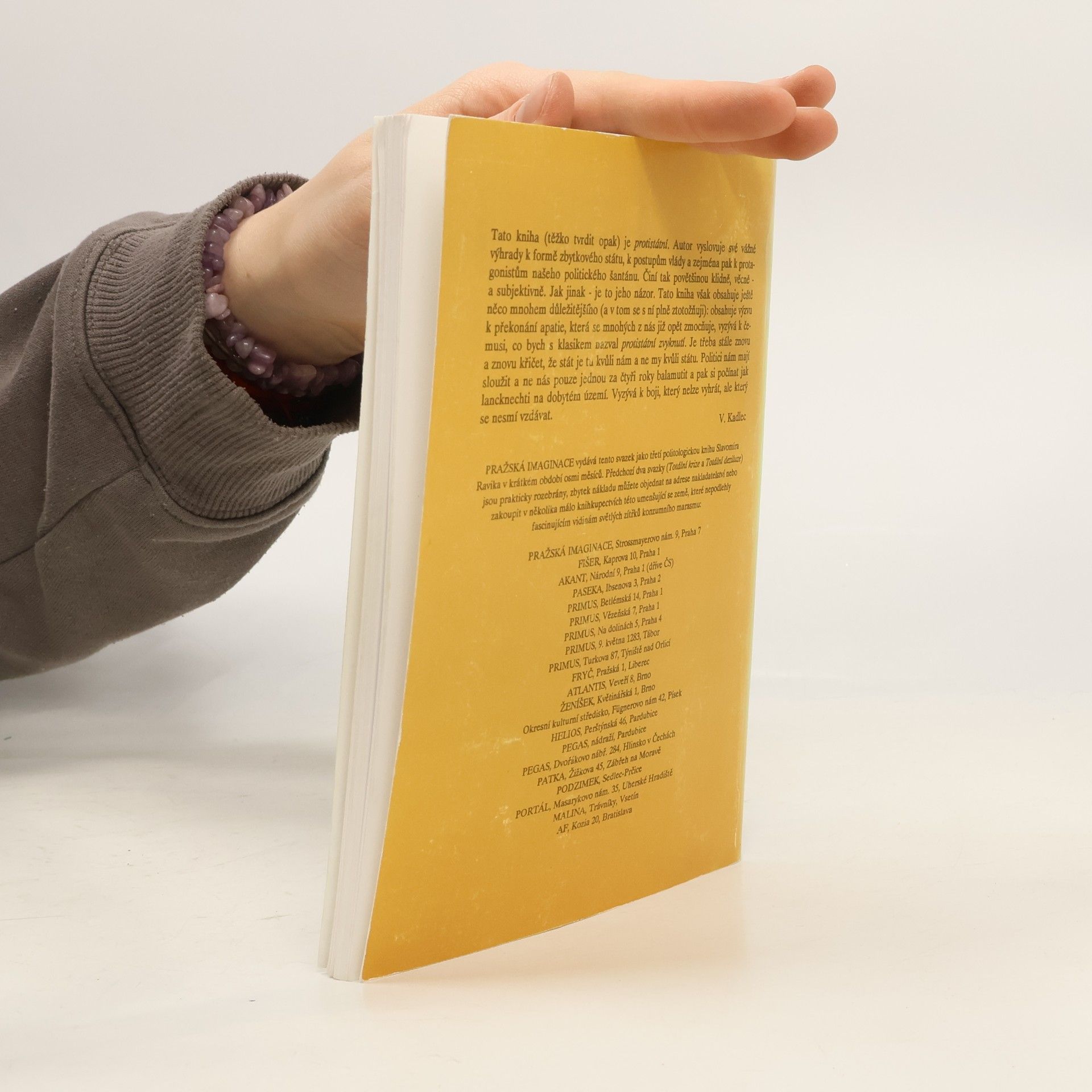 Politická publicistika hodnotící vnitropolitický vývoj v ČSFR v letech 1989-1992. Studie zabývající se Václavem Havlem a protagonisty české politické scény a rozpadem republiky. Z rozboru plyne, že do jisté míry došlo v zemi k realizaci Havlovy Zahradní slavnosti, v níž se členy početného komparsu stalo 15 milionů občanů Československa. Na obálce je text vydavatele, z něhož plyne, že „politici nám mají sloužit a ne nás pouze jednou za čtyři roky balamutit a pak si počínat jak lancknechti na dobytém území. Vyzývá k boji, který nelze vyhrát, ale který se nesmí vzdávat“.