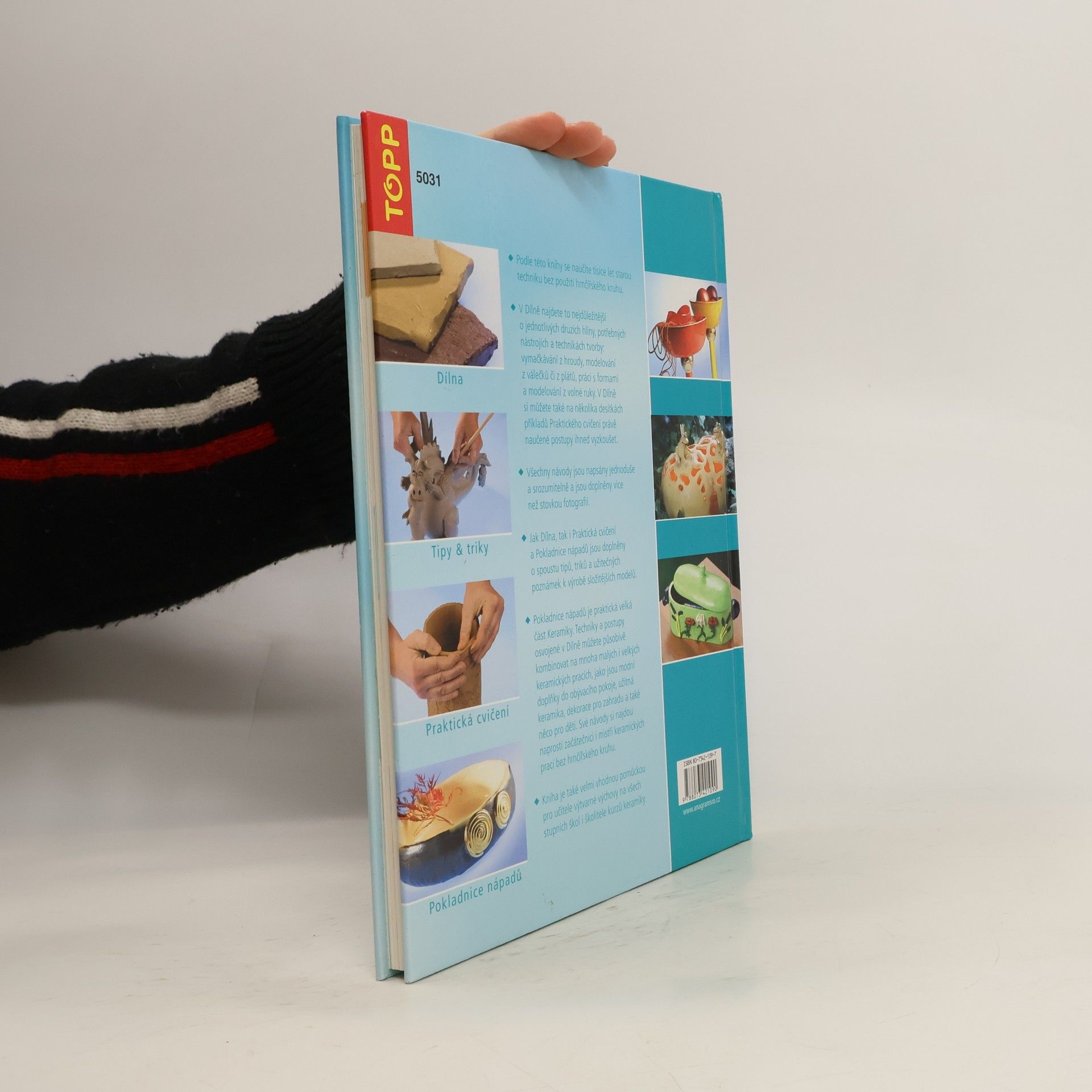 Podle této knihy se naučíte tisíce let starou techniku bez použítí hrnčířského kruhu. V Dílně najdete to nejdůležitější o jednotlivých druzích hlíny, potřebných nástrojích a technikách tvorby: vymačkávání z hroudy, modelování z válečků či z plátů, práci s formami a modelování z volné ruky. Všechny návody jsou napsány jednoduše a srozumitelně a jsou doplněny více než stovkou fotografií.Kniha je velmi vhodnou pomůckou pro učitele výtvarné výchovy na všech stupních škol i školitele kurzů keramiky.