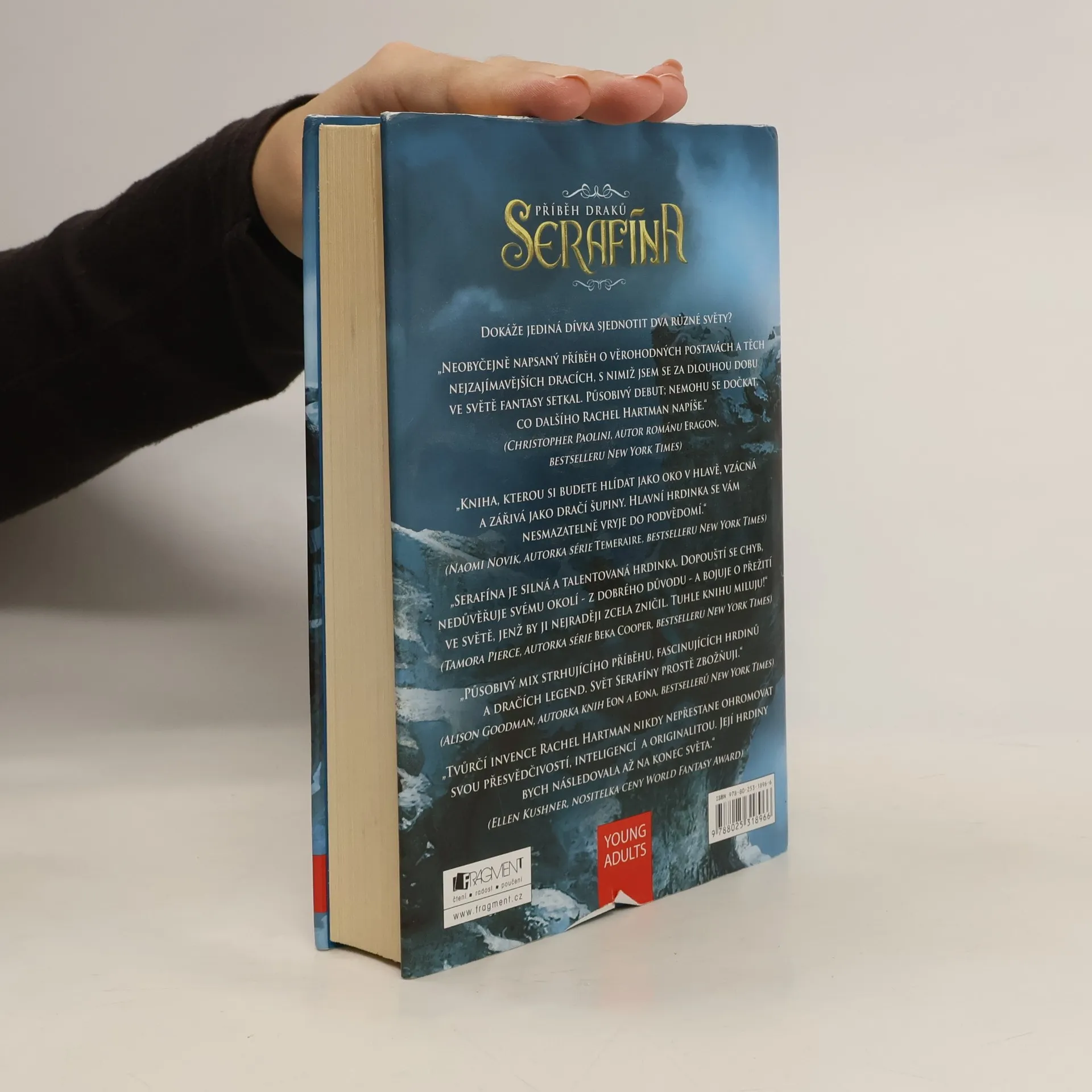 V království Gored žijí lidé s draky v míru už čtyřicet let, vzájemná nedůvěra však přetrvává. Draci jsou schopni brát na sebe lidskou podobu, ale přestože mají neobyčejně pronikavý rozum, lidské emoce jim zůstávají záhadou. Dívka Serafína, nadaná hudebnice, nechová důvěru ani k jedné z obou stran. Když je zavražděn příslušník královské rodiny a podezření padá na draky, v ohrožení se ocitá i její vlastní tajemství, které by ji mohlo stát život… Existuje hodně knih o dracích. Debut spisovatelky Rachel Hartmanové nad nimi ale vyniká. Trnitá cesta Serafíny za poznáním a přijetím sebe sama se vám vryje pod kůži.