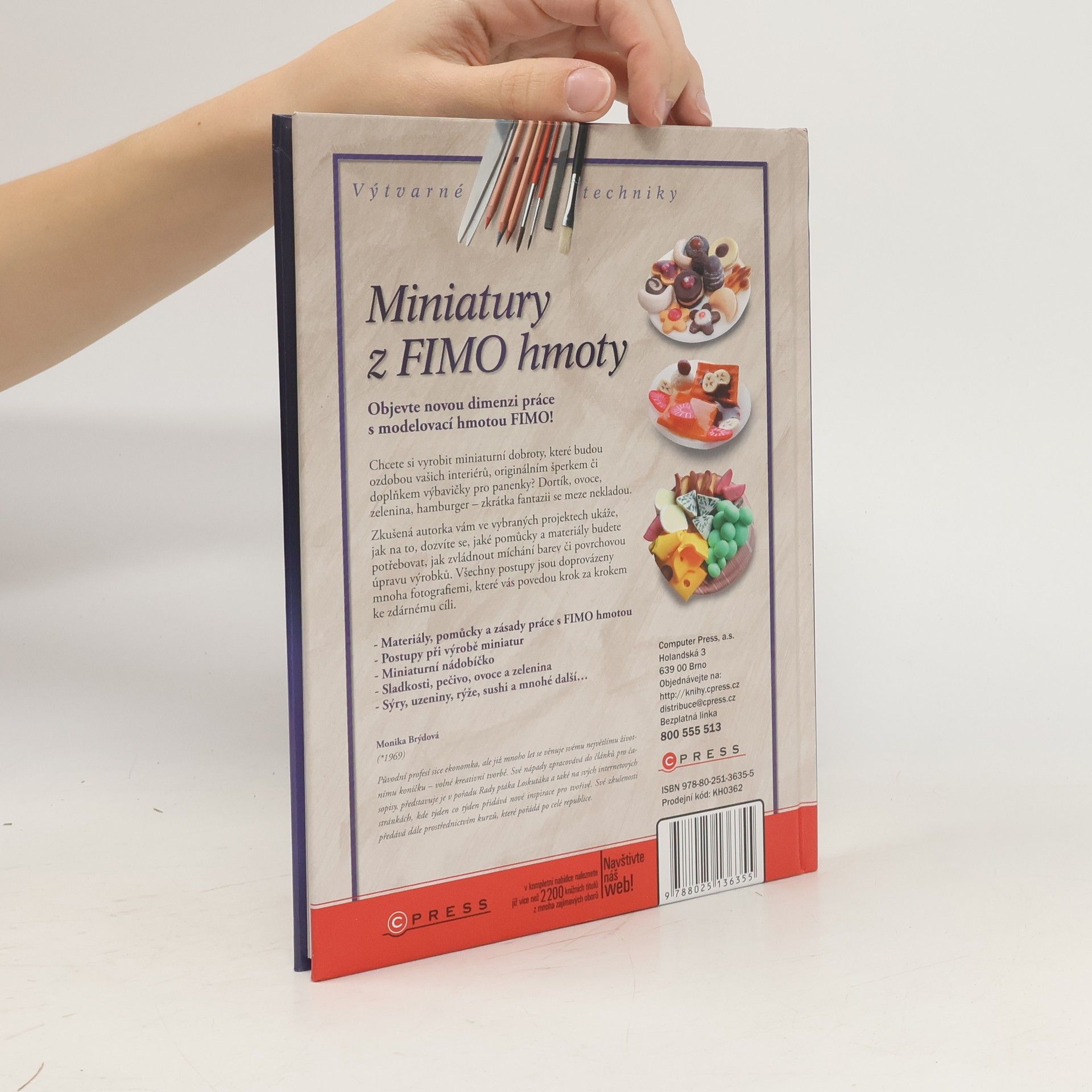 Chcete vyzkoušet novou dimenzi práce s FIMO hmotou? Vyrobit si miniaturní dobroty, které budou ozdobou vašich interiérů, originálním šperkem či doplňkem výbavičky pro panenky? Dortík, ovoce, zelenina, hamburger, zkrátka fantazii se meze nekladou. Zkušená autorka vám ve vybraných projektech ukáže, jak na to, dozvíte se, jaké pomůcky a materiály budete potřebovat, jak zvládnout míchání barev či povrchovou úpravu výrobků.