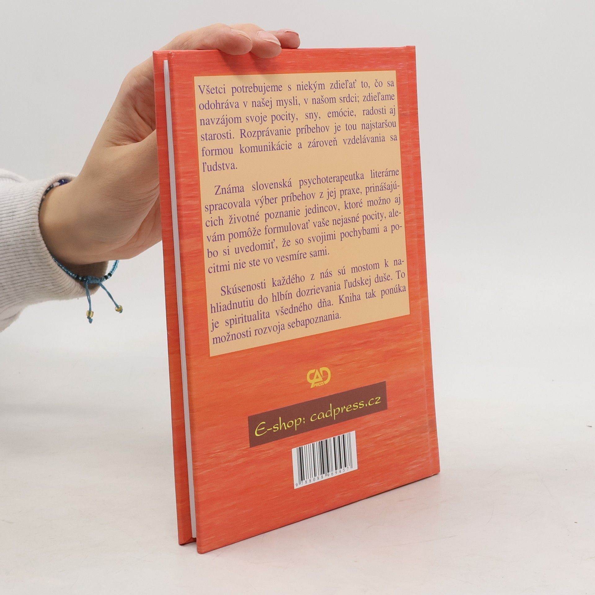 Známa slovenská psychoterapeutka literárne spracovala výber príbehov z jej praxe, prinášajúcich životné poznanie jedincov, ktoré možno aj vám pomôže formulovať vaše nejasné pocity, alebo si uvedomiť, že so svojimi pochybami a pocitmi nie ste vo vesmíre sami. Všetci potrebujeme s niekým zdieľať to, čo sa odohráva v našej mysli, v našom srdci; zdieľame navzájom svoje pocity, sny, emócie, radosti aj starosti. Rozprávanie príbehov je tou najstaršou formou komunikácie a zároveň vzdelávania sa ľudstva. Skúsenosti každého z nás sú mostom nahliadnutiu do hlbín dozrievania ľudskej duše. To je spiritualita všedného dňa. Kniha tak ponúka možnosti rozvoja sebapoznania.