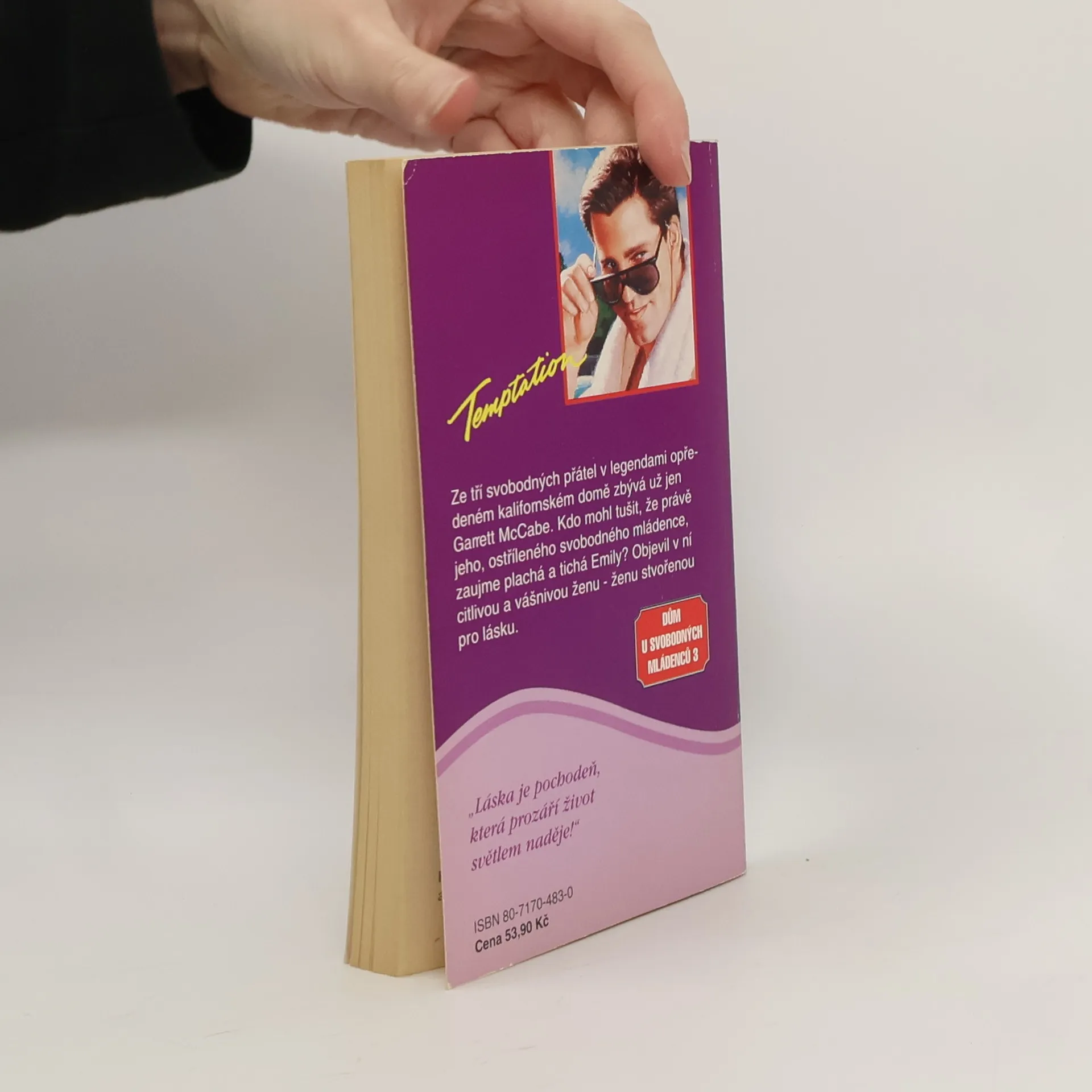 Ze tří svobodných přátel v legendami opředeném kalifornském domě zbývá už jen Garret McCabe. Kdo mohl tušit, že právě jeho, ostříleného svobodného mládence, zaujme plachá a tichá Emily ? Objeví v ní citlivou a vášnivou ženu - ženu stvořenou pro lásku.