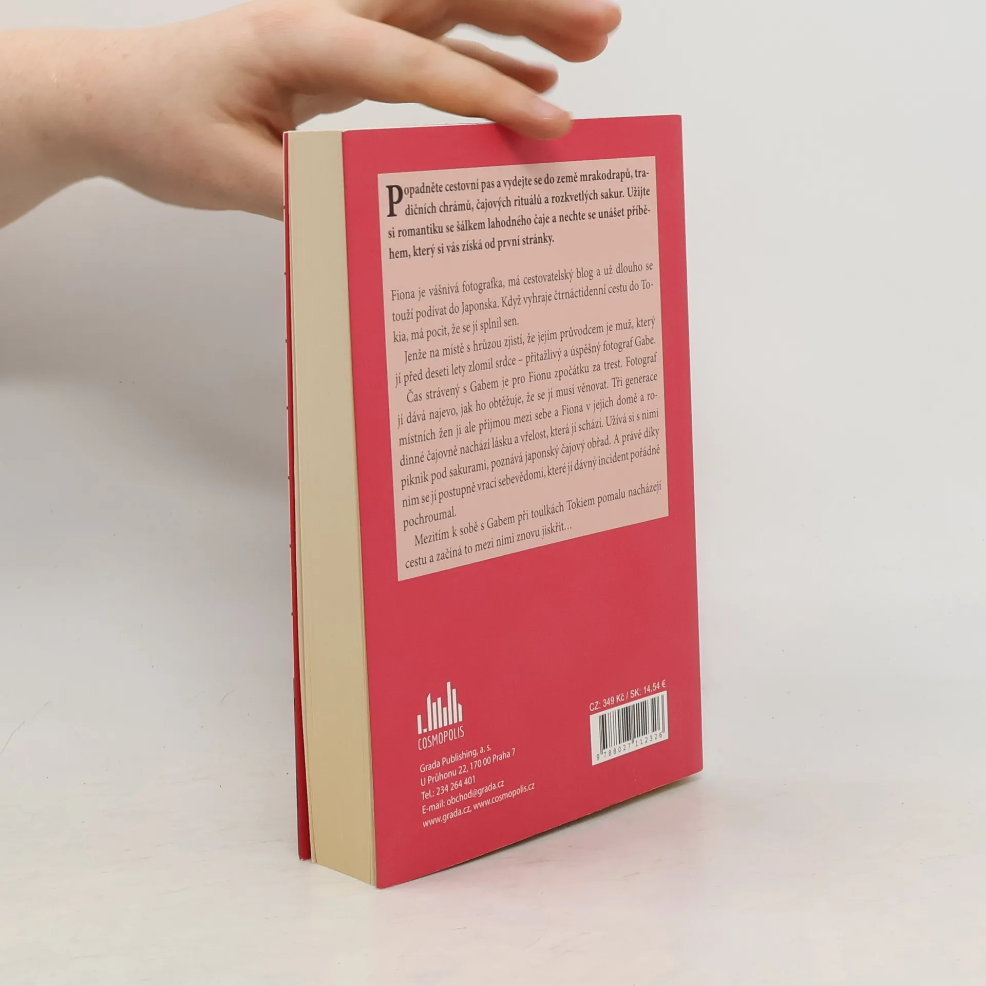 Popadněte cestovní pas a vydejte se do země mrakodrapů, tradičních chrámů, čajových rituálů a rozkvetlých sakur. Užijte si romantiku s šálkem lahodného čaje a nechte se unášet příběhem, který si vás získá od první stránky. Fiona je vášnivá fotografka, má cestovatelský blog a už dlouho se touží podívat do Japonska. Když vyhraje čtrnáctidenní cestu do Tokia, má pocit, že se jí splnil sen. Jenže na místě s hrůzou zjistí, že jejím průvodcem je muž, který jí před deseti lety zlomil srdce – přitažlivý a úspěšný fotograf Gabe. Čas strávený s Gabem je pro Fionu zpočátku za trest. Fotograf jí dává najevo, jak ho obtěžuje, že se jí musí věnovat. Tři generace místních žen ji ale přijmou mezi sebe a Fiona v jejich domě a rodinné čajovně nachází lásku a vřelost, která jí schází. Užívá si s nimi piknik pod sakurami, poznává pravý japonský čajový obřad. A právě díky nim se jí postupně vrací sebevědomí, které jí dávný incident pořádně pochroumal. Mezitím k sobě s Gabem při toulkách Tokiem pomalu nacházejí cestu a začíná to mezi nimi znovu jiskřit…
