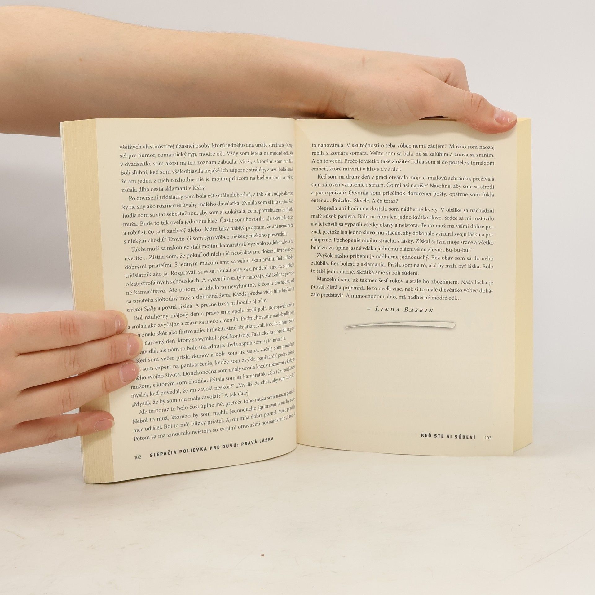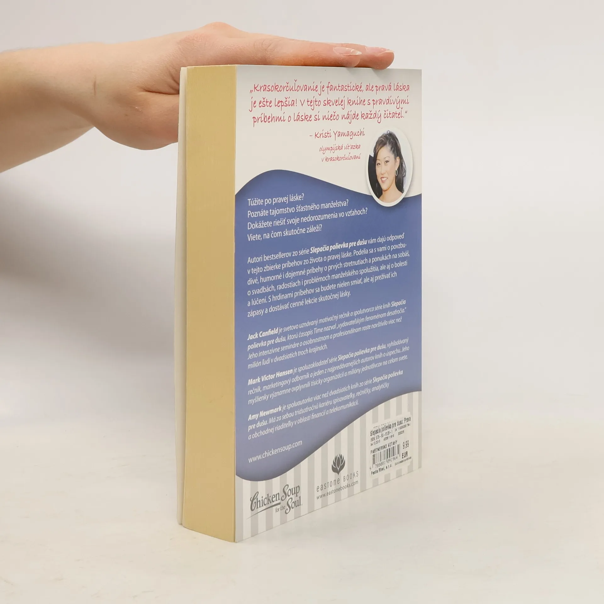 Túžite po pravej láske? Poznáte tajomstvo šťastného manželstva? Dokážete riešiť svoje nedorozumenia vo vzťahoch? Viete, na čom skutočne záleží? Autori bestsellerov zo série Slepačia polievka pre dušu vám dajú odpoveď v tejto zbierke príbehov zo života o pravej láske. Podelia sa s vami o povzbudivé, humorné i dojemné príbehy o prvých stretnutiach a ponukách na sobáš, o svadbách, radostiach i problémoch manželského spolužitia, ale aj o bolesti a lúčení. S hrdinami príbehov sa budete nielen smiať, ale aj prežívať ich zápasy a dostávať cenné lekcie skutočnej lásky.