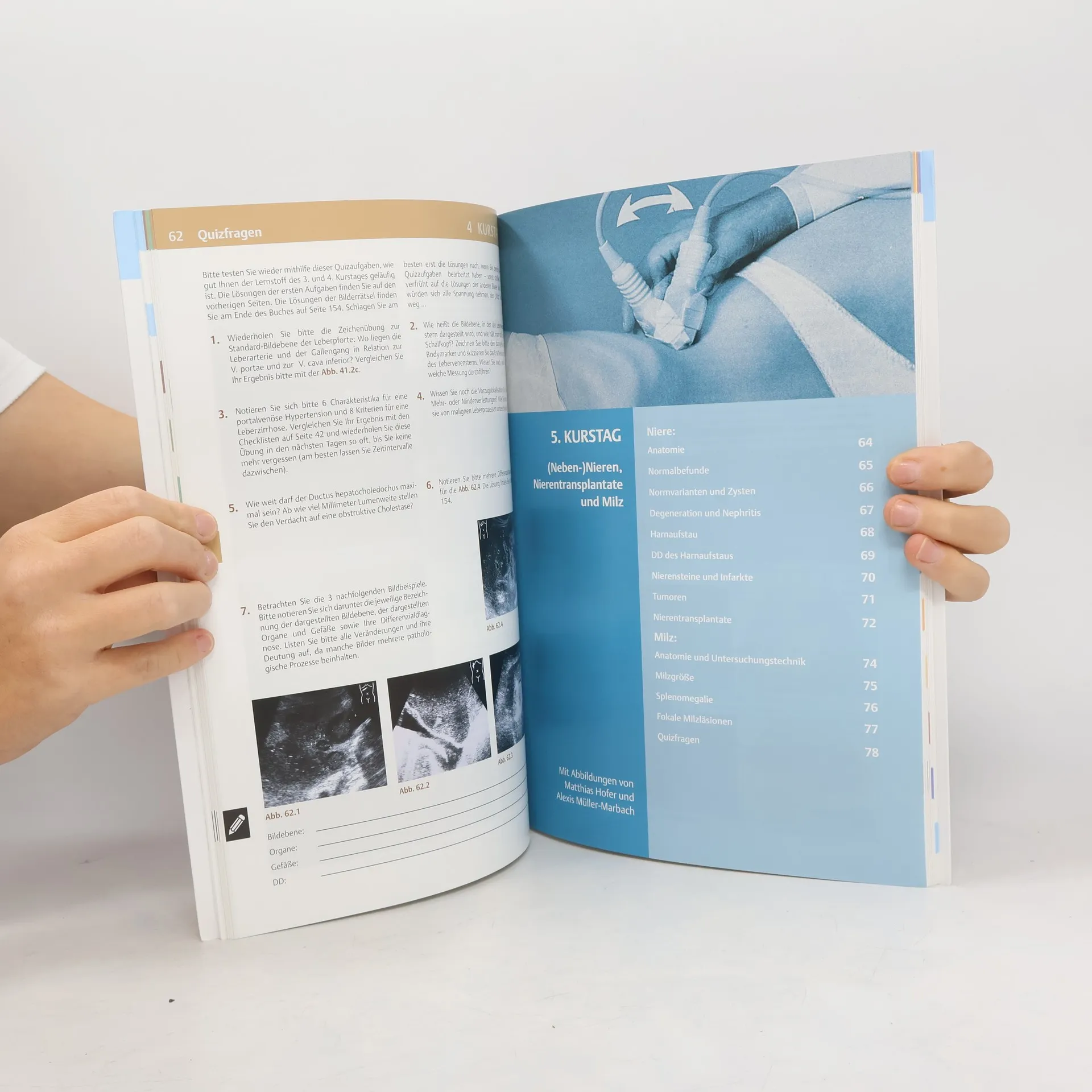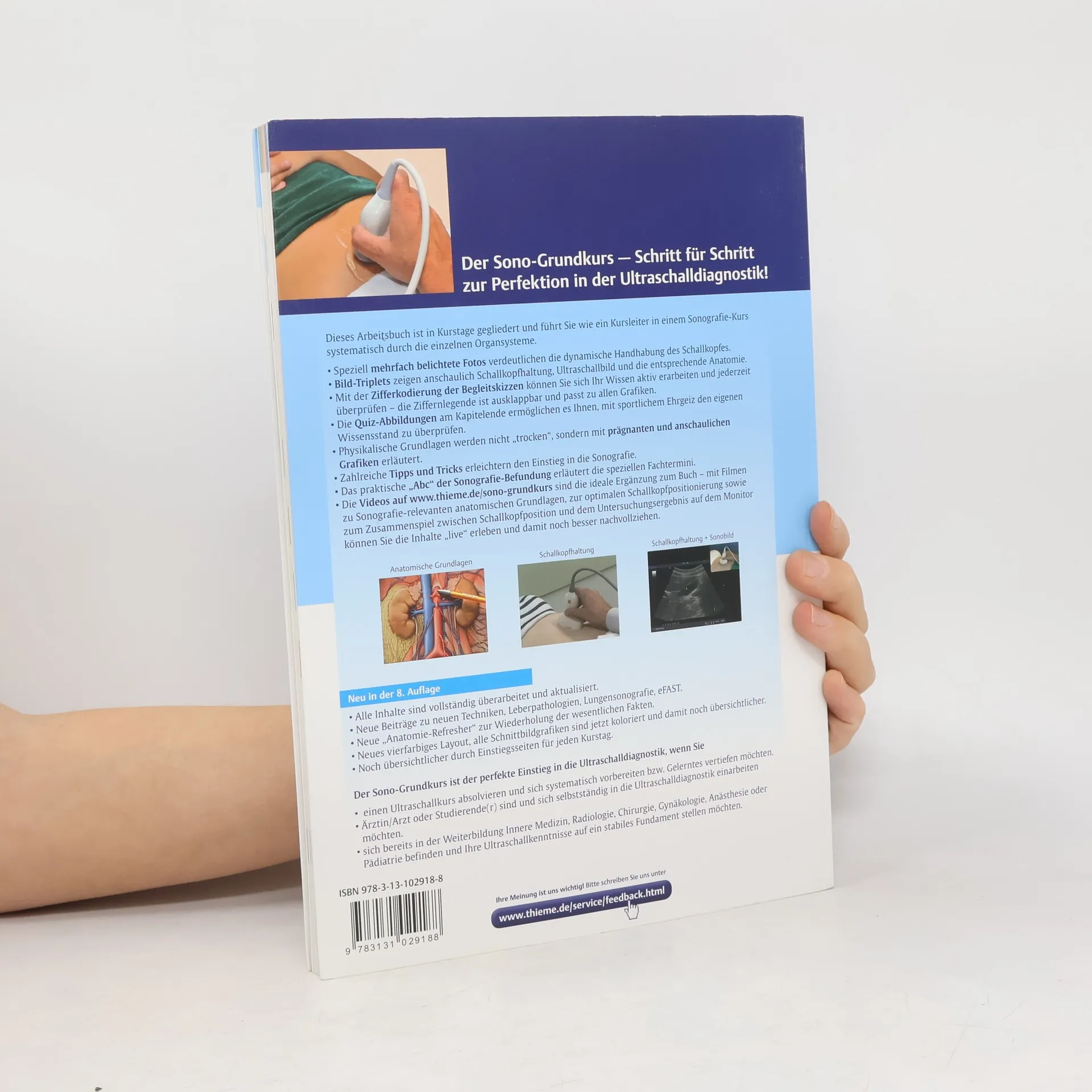 Dieses Arbeitsbuch ist in sieben Kurstage gegliedert und führt Sie wie ein Kursleiter in einem Sonographie-Kurs systematisch durch die einzelnen Organsysteme. - Mit Quiz-Abbildungen am Kapitelende, um den eigenen Wissensstand zu überprüfen - Physikalische Grundlagen werden mit anschaulichen Grafiken erläutert - Das praktische „ABC“ der Sonografie-Befundung erläutert die speziellen Fachtermini Das ist neu: - Vollständig überarbeitet und aktualisiert - Beiträge zu neuen Techniken, Leberpathologien, Lungensonografie, eFAST - „Anatomie-Refresher“ zur Wiederholung der wesentlichen Fakten - Noch übersichtlicher durch Einstiegsseiten für jeden Kurstag - Zahlreiche, eindrückliche Filme stehen online zur Verfügung