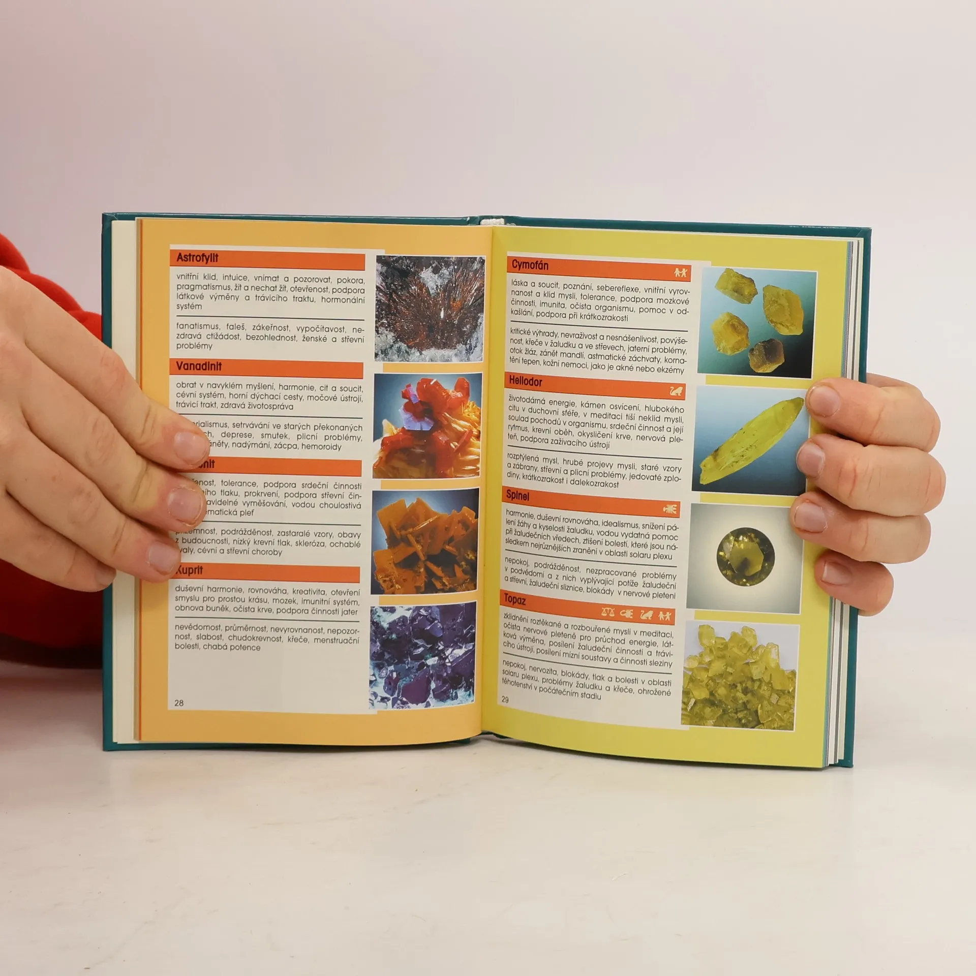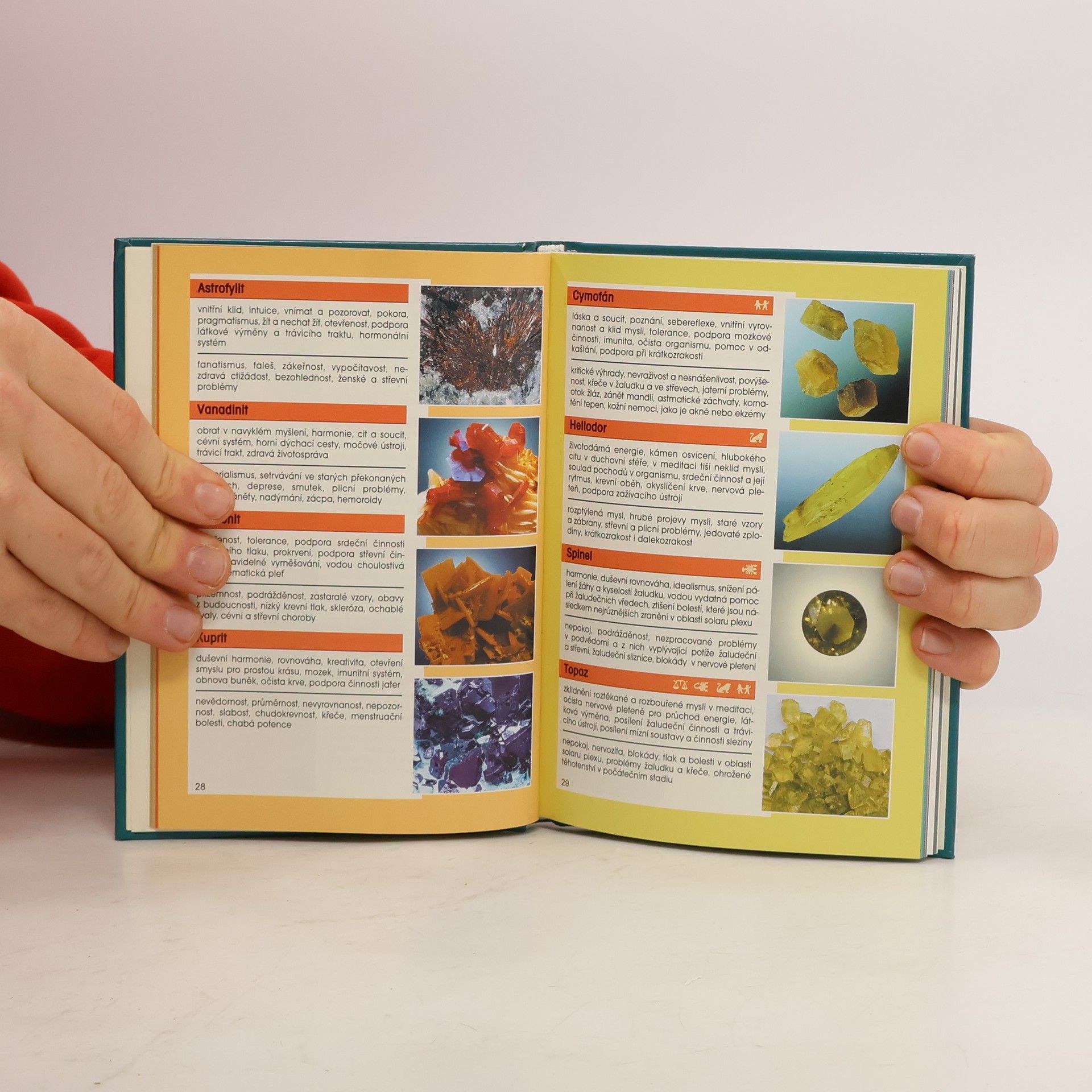 Tato kniha slouží k rychlé orientaci v léčivých kamenech. 328 druhů je seřazeno podle barev a současně čaker, jež barvám odpovídají. Tam, kde existuje více barevných odrůd, je kámen zařazen buď podle barvy nejtypičtější, nebo ve skupině kamenů vícebarevných. U každého kamene se uvádí jeho možné léčivé působení duchovní, duševní, mentální a zdravotní.