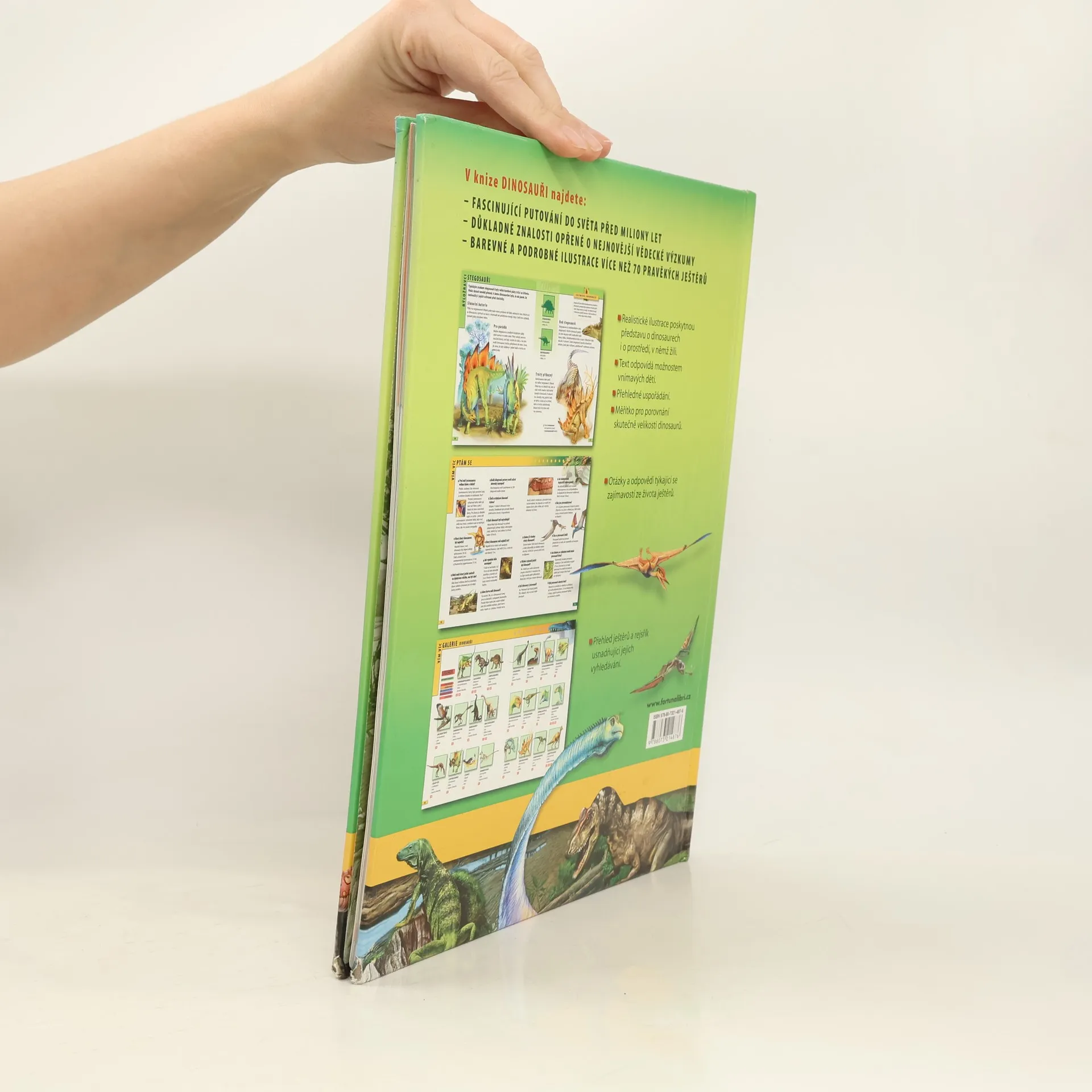 V knize najdete - realistické ilustrace poskytující představu o dinosaurech i o prostředí, v němž žili. Text odpovídá možnostem vnímavých dětí. Otázky a odpovědi týkající se zajímavosti ze života dinosaurů.