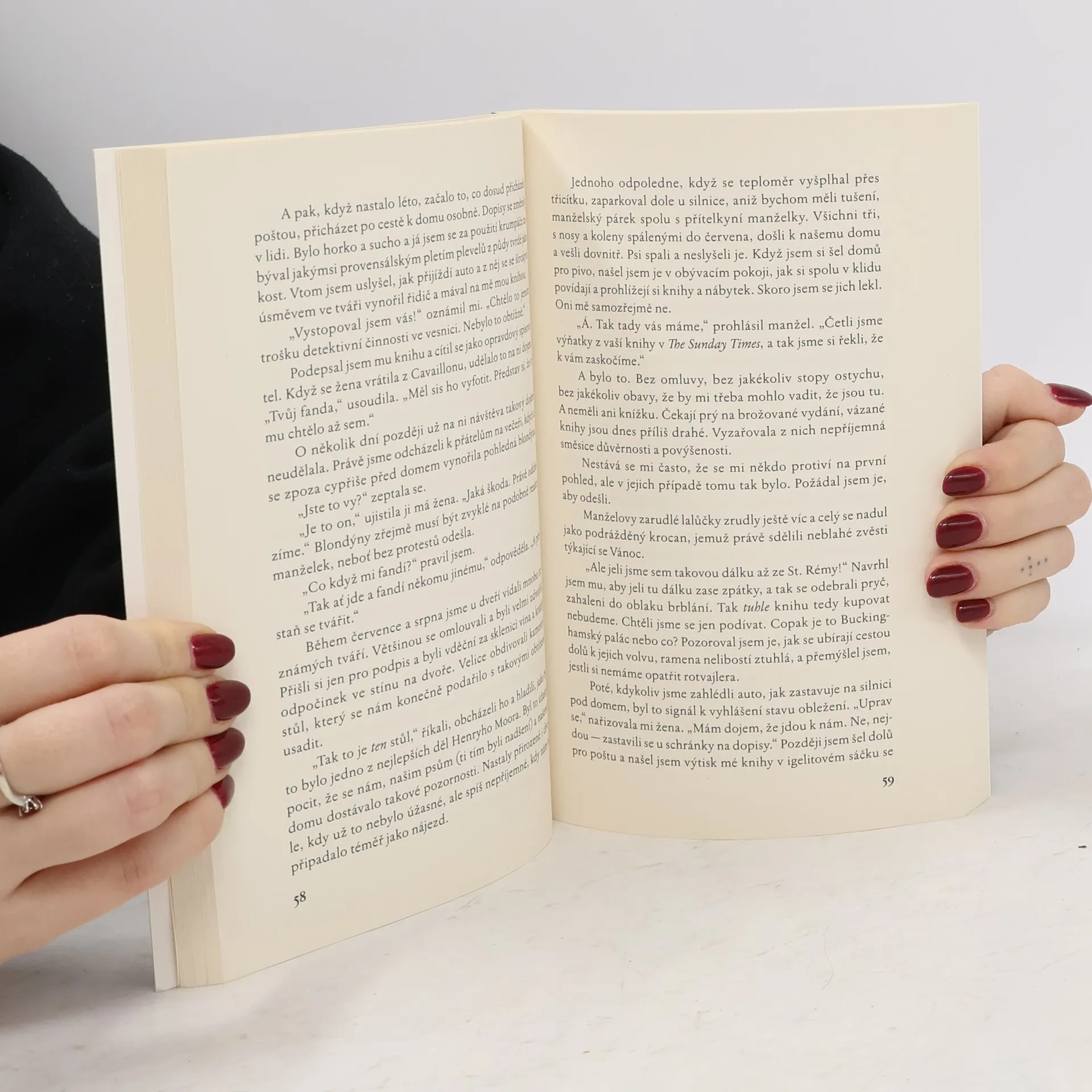 Spolu s autorem se opět ocitáme pod obrovským volným nebem, které umožňuje vychutnat si život naplno jako sklenku pastisu, neboť jak nás poučí místní odborník jeho pití vyžaduje horko, sluneční jas a iluzi, že se zastavil čas. Můžeme se těšit na koncert ropuch ze St. Pantaléon zpívajících Marseillaisu, přehlídku psů, vosy alkoholičky, povídání o vinných sklípcích a degustaci vín, pravých lanýžích, tržnicích, policajtech i realitních agentech. Zkušený labužník ocení hojnost a rozmanitost popisovaných tradičních lahůdek a jistě každý zatouží po klidné atmosféře tříhodinových obědů v místnosti plné lidí, kteří se oddávají jídlu a pití. Svět a jeho problémy zůstávají venku, ve vzduchu je cítit spokojenost. Inu, nelze tomu odolat...