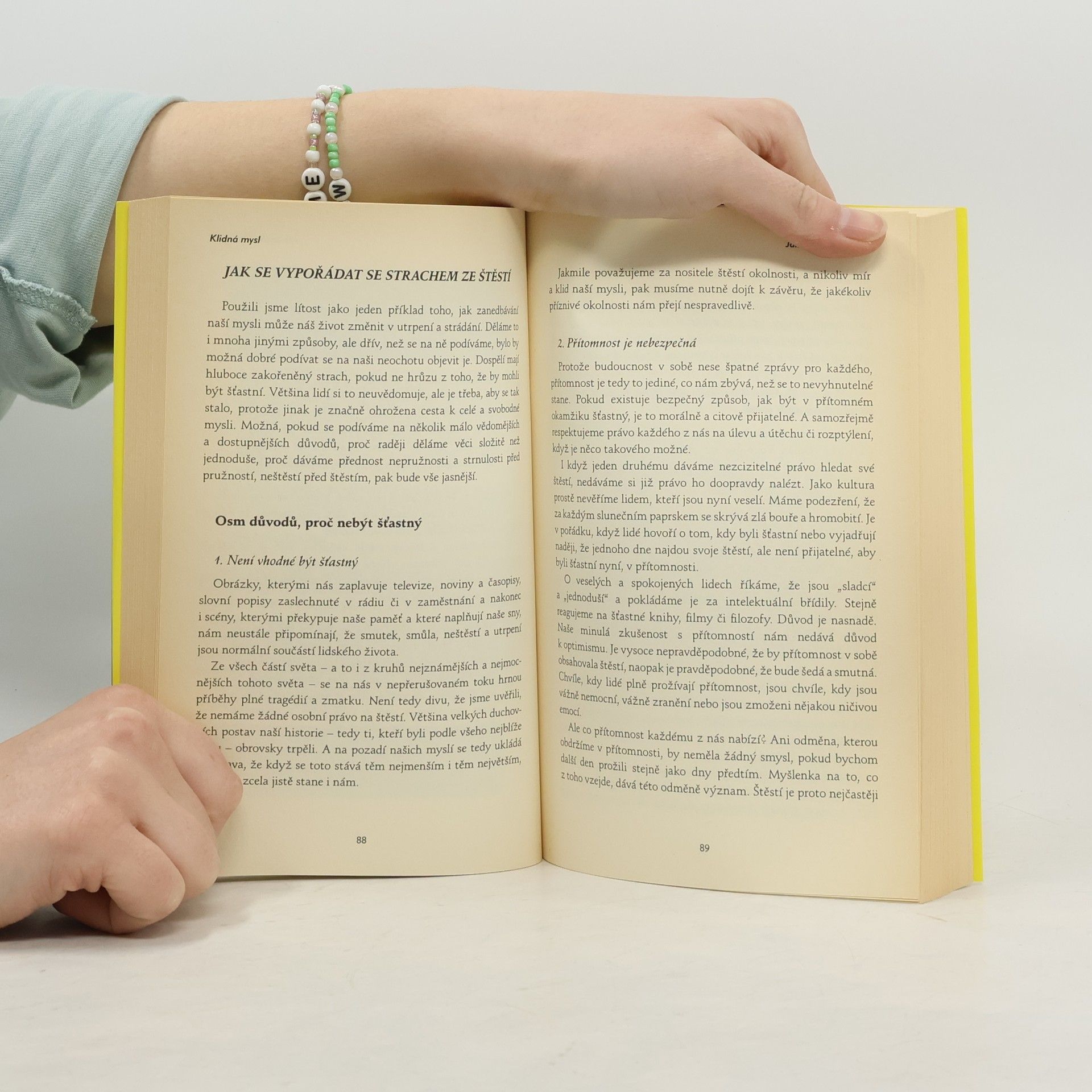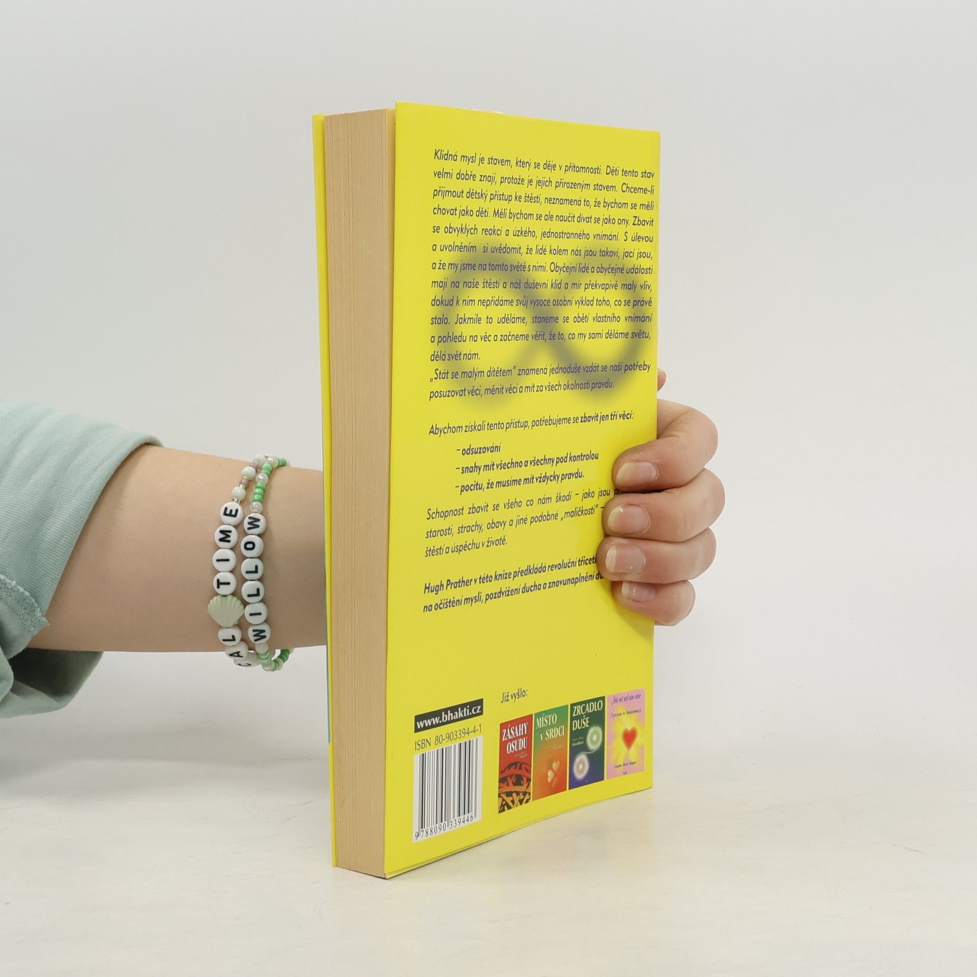 Klidná mysl je stavem, který se děje v přítomnosti. Děti tento stav velmi dobře znají, protože je jejich přirozeným stavem. Chceme-li přijmout dětský přístup ke štěstí, neznamená to, že bychom se měli chovat jako děti. Měli bychom se ale naučit dívat se jako ony. Zbavit se obvyklých reakcí a úzkého, jednostranného vnímání. S úlevou a uvolněním si uvědomit, že lidé kolem nás jsou takoví, jací jsou, a že my jsme na tomto světě s nimi. Obyčejní lidé a obyčejné události mají na naše štěstí a náš duševní klid a mír překvapivě malý vliv, dokud k nim nepřidáme svůj vysoce osobní výklad toho, co se právě stalo. Jakmile to uděláme, staneme se obětí vlastního vnímání a pohledu na věc a začneme věřit, že to, co my sami děláme světu, dělá svět nám. „Stát se malým dítětem“ znamená jednoduše vzdát se naší potřeby posuzovat věci, měnit věci a mít za všech okolností pravdu. Abychom získali tento přístup, potřebujeme se zbavit jen tří věcí: - odsuzování - snahy mít všechno a všechny pod kontrolou - pocitu, že musíme mít vždycky pravdu. Schopnost zbavit se všeho co nám škodí – jako jsou problémy, starosti, strachy, obavy a jiné podobné "maličkosti" - je klíčem ke štěstí a úspěchu v životě. Hugh Prather v této knize předkládá revoluční třicetidenní program na očištění mysli, pozdvižení ducha a znovunaplnění duše.