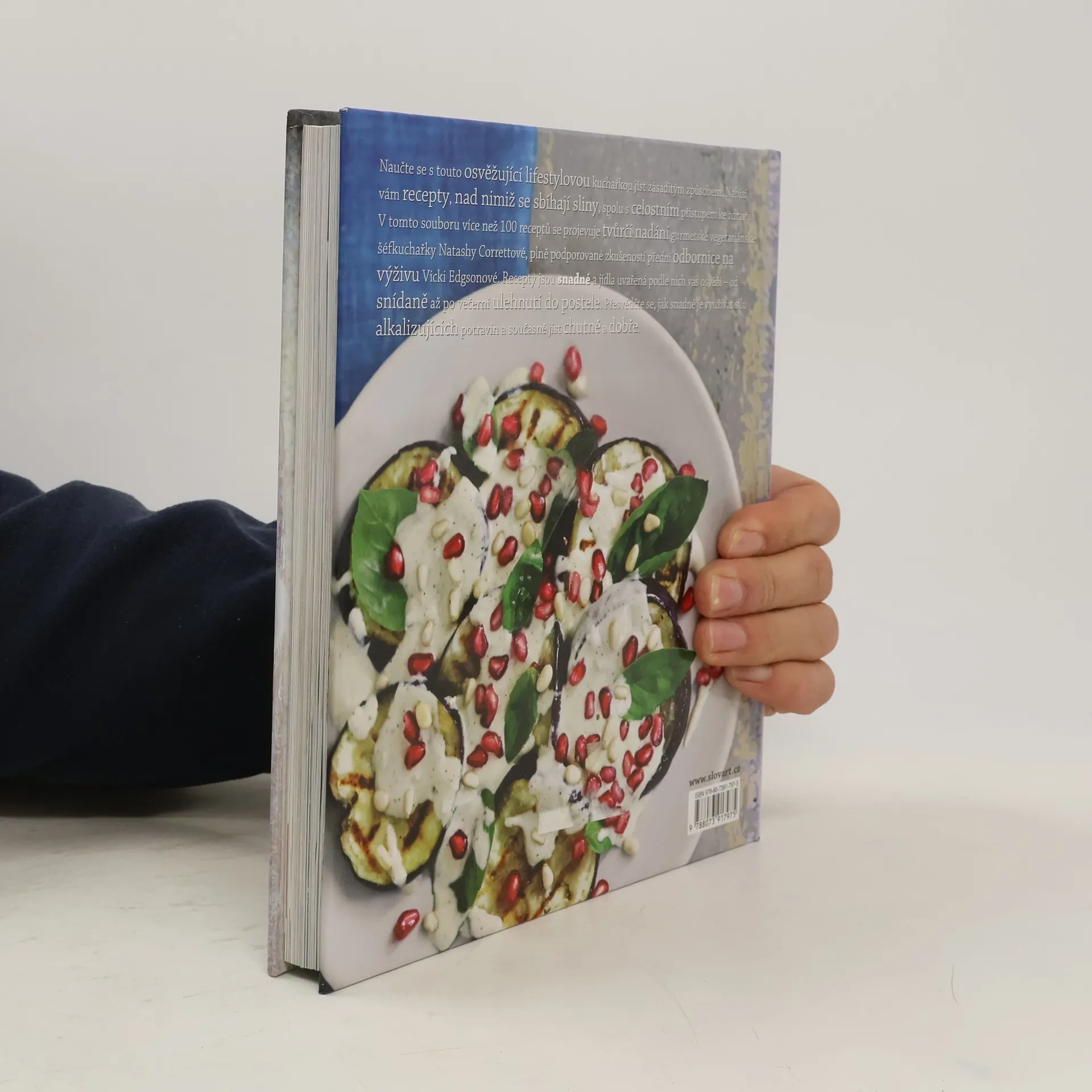 Naučte se s touto osvěžující lifestylovou kuchařkou jíst zásaditým způsobem. Nabízí vám recepty, nad nimiž se sbíhají sliny, spolu s celostním přístupem ke zdraví. V tomto souboru více než 100 receptů se projevuje tvůrčí nadání gurmetské vegetariánské šéfkuchařky Natashy Correttové, plně podporované zkušeností přední odbornice na výživu Vicki Edgsonové. Recepty jsou snadné a jídla uvařená podle nich vás osvěží po celý den – od snídaně až po večerní ulehnutí do postele. Vyzkoušejte dokonalý ranní životabudič, artyčoková srdíčka se sýrem feta, lilkové závitky s pestem, polévku z máslové tykve, salát z karamelizovaných hrušek a čočky, karí z fazolek mungo, kořeněné fazolové karbanátky, kokosový chlebíček, hummus ze špenátu a cizrny, mandlovou buchtu s citronem a mákem nebo banánovou zmrzlinu s křupavým tofé. Lehce se přesvědčíte, jak snadné je využívat sílu alkalizujících potravin a současně jíst chutně a dobře.