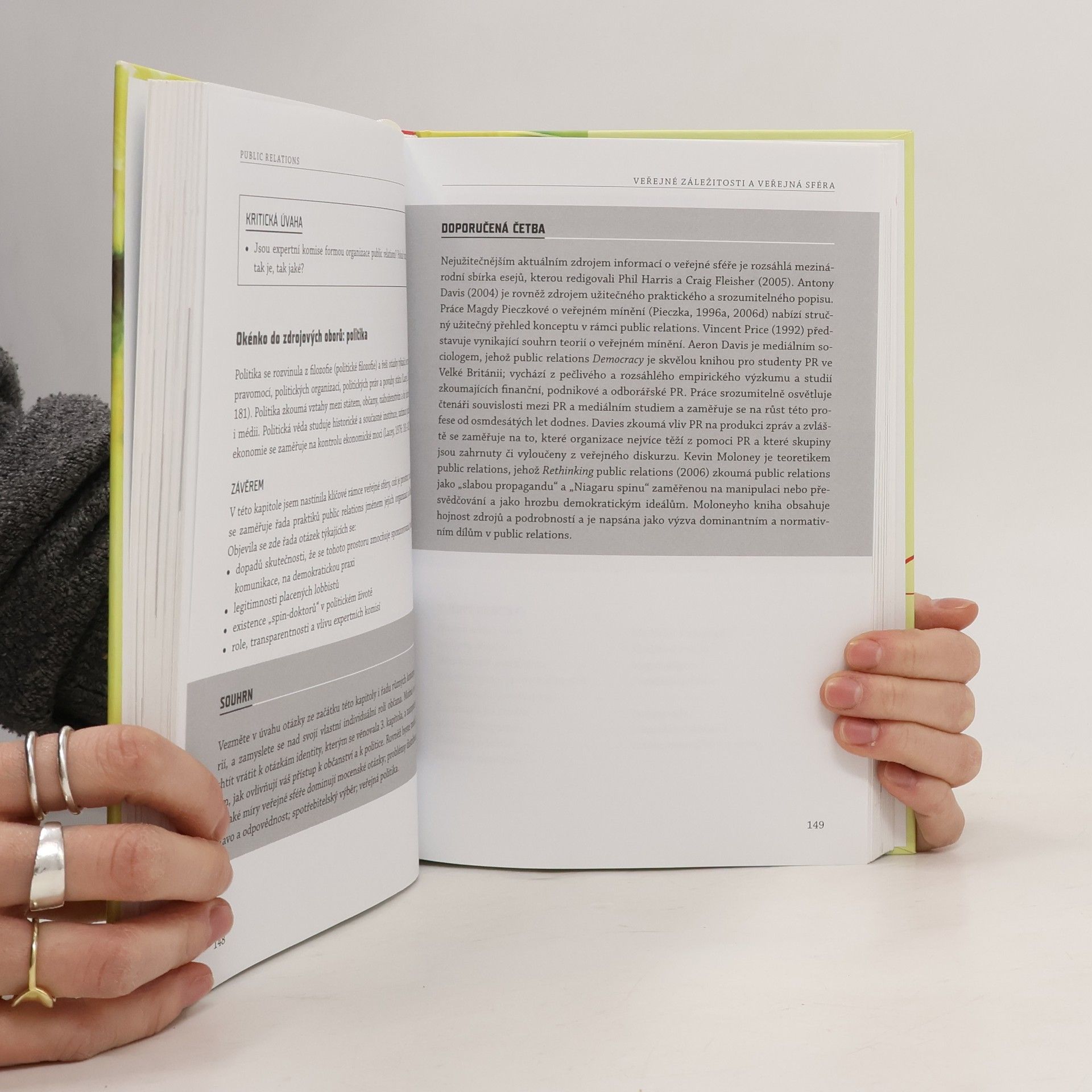 Kniha poskytuje komplexní pohled na problematiku oboru public relations – nedefinuje a nevnímá PR pouze jako součást podnikového marketingu, ale i jako komplexní obor a dovednost ovlivňovat mínění. PR zařazuje do kontextu dalších příbuzných oborů vztahujících se k mediálním strategiím a k teoriím persvaze (mediální marketing, management, sociologie organizací, sociologie médií, strategická studia, diplomacie atd.) a zasvěceně mapuje jednotlivé přístupy. Kniha je určena nejen studentům mediálních studií a manažerských škol a pracovníkům firemních PR, marketingu a PR agentur, ale všem, kteří musejí efektivně komunikovat s veřejností nebo zájmovými skupinami, a to zejména prostřednictvím masmédií.
