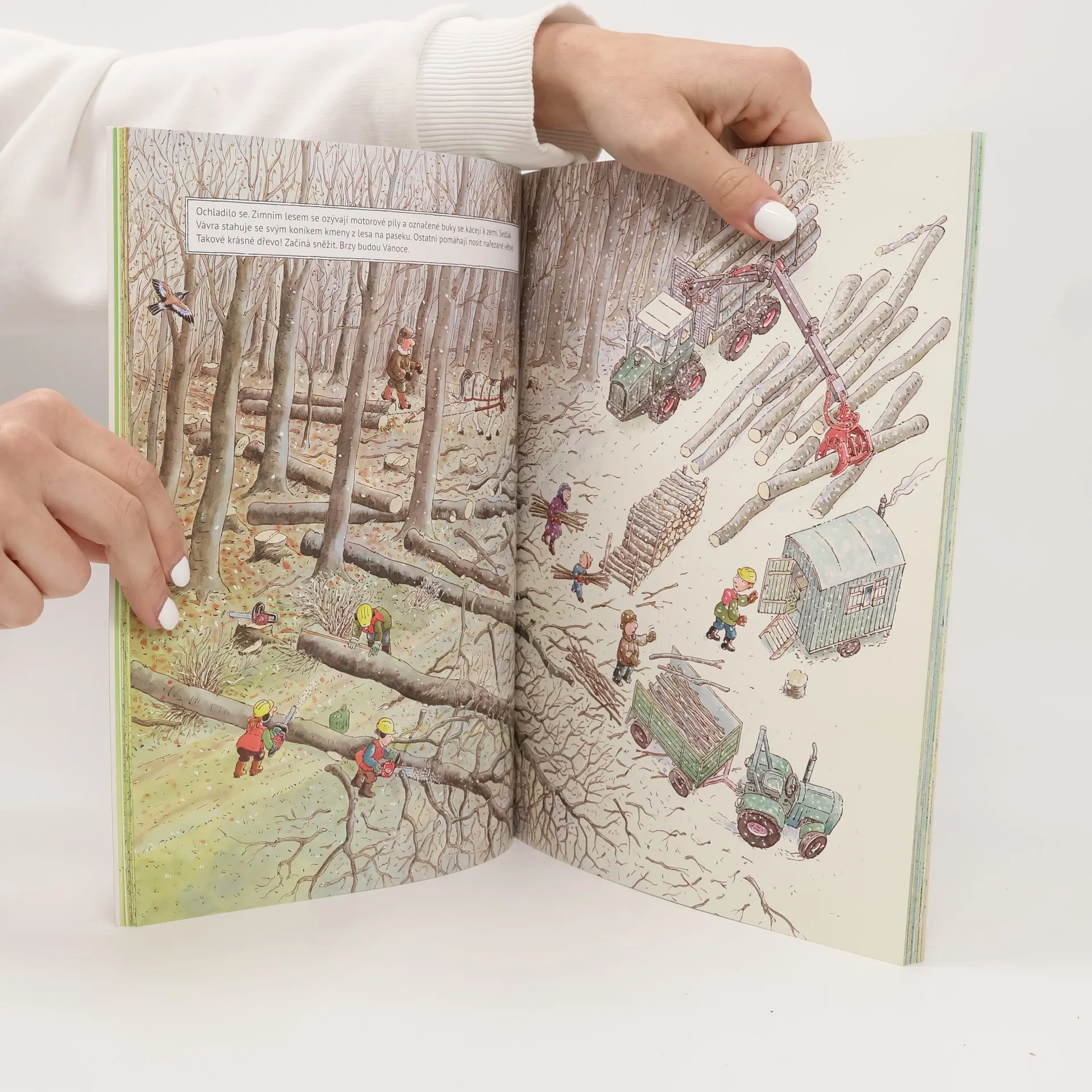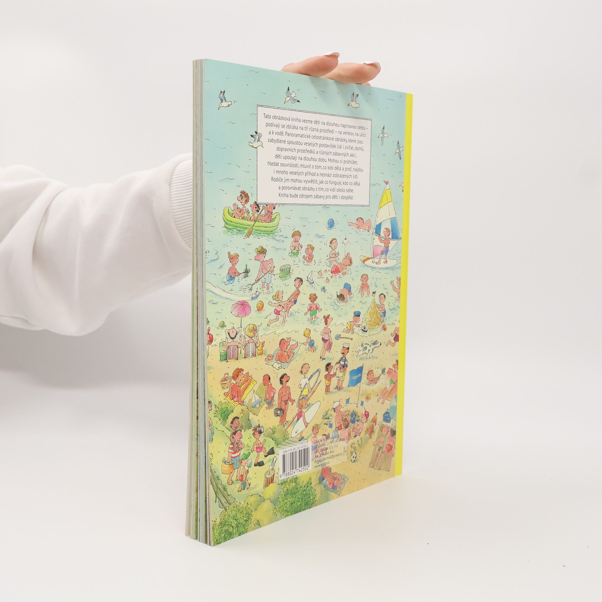 Velká obrázková kniha vezme děti na dlouhou napínavou cestu - podívají se zblízka na tři různá prostředí - na venkov, na ulici a k vodě. Panoramatické celostránkové obrázky, které jsou zabydlené spoustou veselých postaviček lidí i zvířat, domů, dopravních prostředků, zábavných akcí děti upoutají na dlouhou dobu.