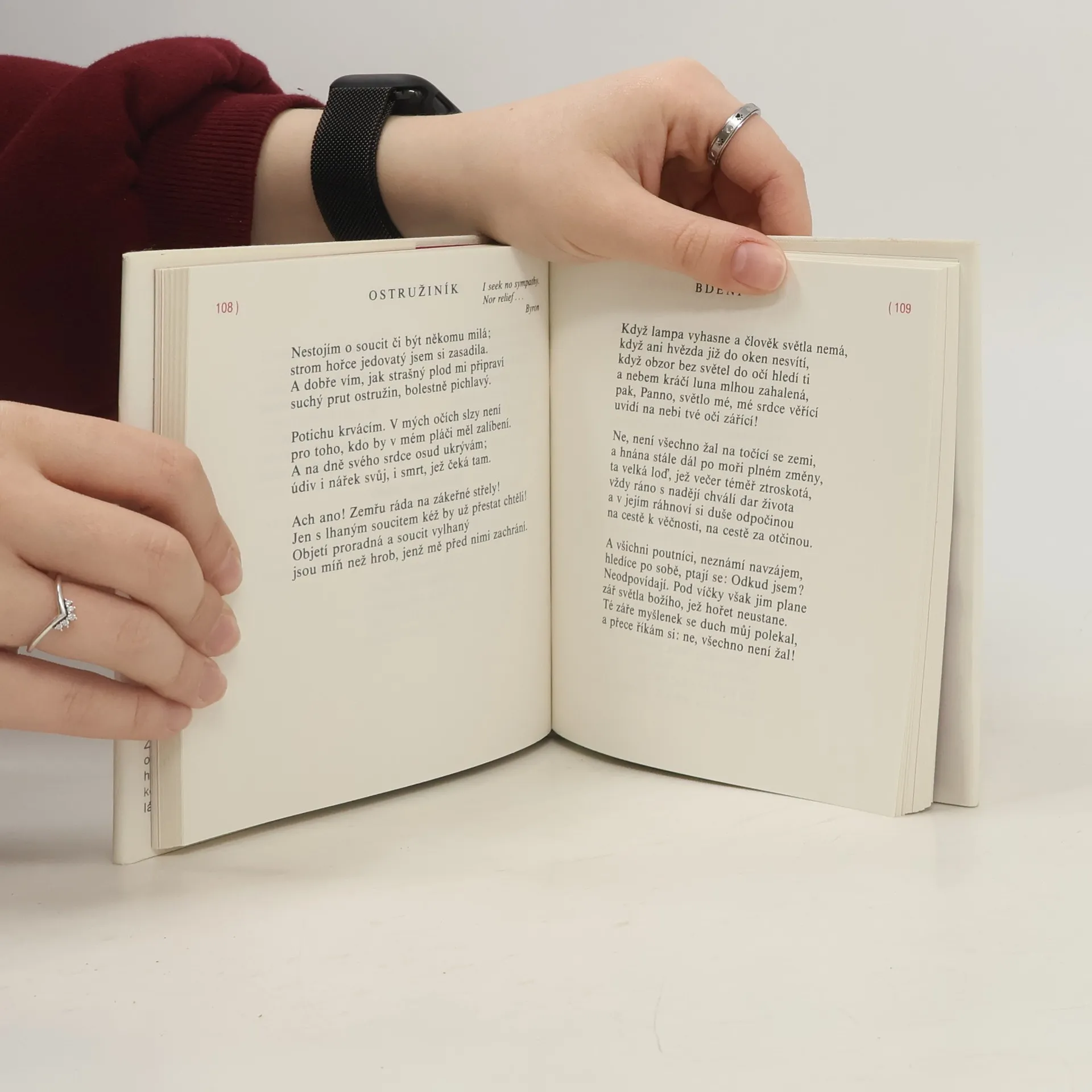 Kniha je u nás prvním chronologickým výborem z autorčina díla, jejímž inspiračním zdrojem byl vlastní neutěšený život. Básně jsou členěny do několika oddílů – Romance a elegie, Nové básně, Nářky, Chudé kvítí, Kytice a modltby, Básně vydané posmrtně. Do části Chudé kvítí byla včleněna i báseň Na ulici, kterou se za autorčina života neopovážil žádný vydavatel vydat.