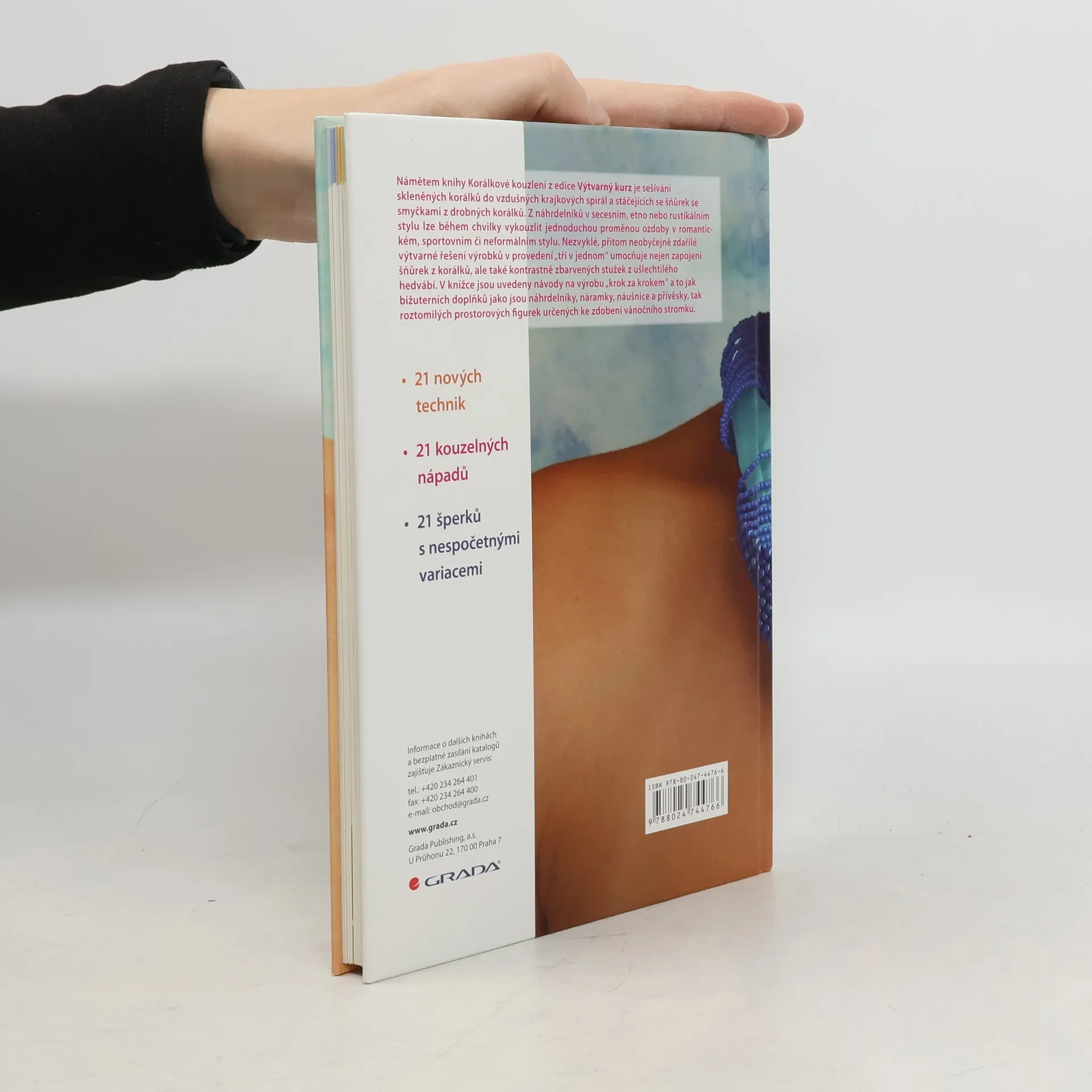 Námětem knihy je sešívání korálků do krajkových spirál a stáčejících se šňůrek se smyčkami. Z náhrdelníků v secesním, etno nebo rustikálním stylu lze během chvilky vykouzlit jednoduchou proměnou ozdoby v romantickém, sportovním či neformálním stylu. Nezvyklé, přitom neobyčejně zdařilé, výtvarné řešení výrobků v provedení „tři v jednom“ umocňuje nejen zapojení šňůrek z korálků, ale také kontrastně zbarvených stužek z hedvábí. V knížce jsou uvedeny návody na výrobu „krok za krokem,“ a to jak bižuterních doplňků jako jsou náhrdelníky, náramky, náušnice a přívěsky, tak roztomilých figurek určených ke zdobení vánočního stromku.