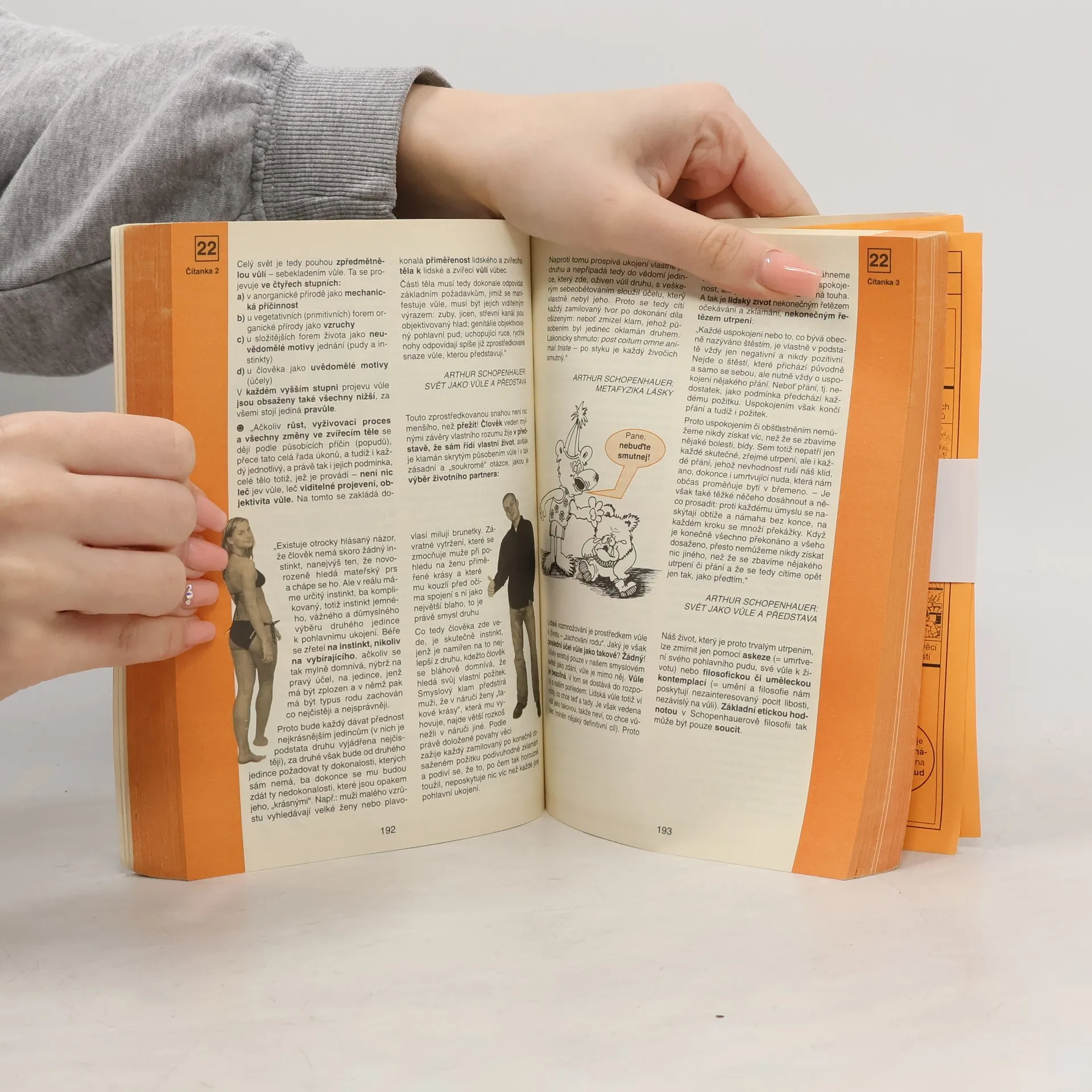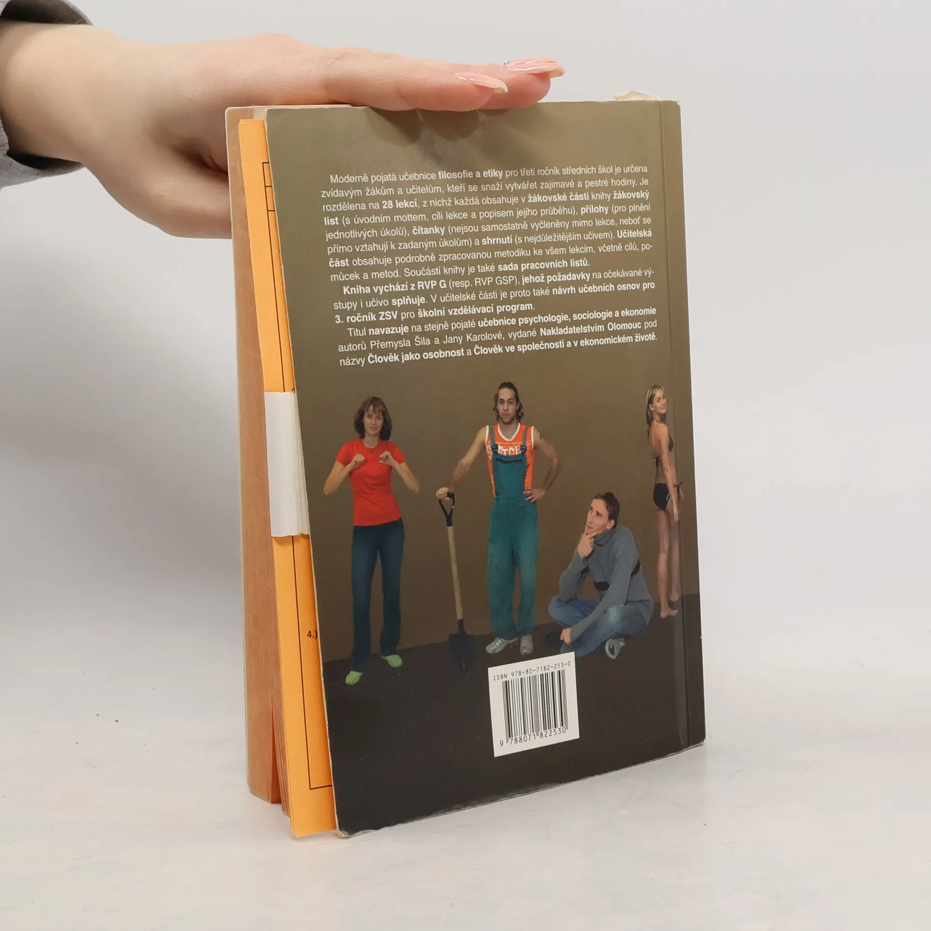 Moderně pojatá učebnice filosofie a etiky pro třetí ročník středních škol je určena zvídavým žákům a učitelům, kteří se snaží vytvářet zajímavé a pestré hodiny. Je rozdělena na 28 lekcí, z nichž každá obsahuje v žákovské části knihy žákovský list (s úvodním mottem, cíli lekce a popisem jejího průběhu), přílohy (pro plnění jednotlivých úkolů), čítanky (nejsou samostatně vyčleněny mimo lekce, nebo? se přímo vztahují k zadaným úkolům) a shrnutí (s nejdůležitějším učivem). Učitelská část obsahuje podrobně zpracovanou metodiku ke všem lekcím, včetně cílů, pomůcek a metod. Součástí knihy je také sada pracovních listů. Kniha vychází z RVP G (resp. RVP GSP), jehož požadavky na očekávané výstupy i učivo splňuje. V učitelské části je proto také návrh učebních osnov pro 3. ročník ZSV pro školní vzdělávací program. Titul navazuje na stejně pojaté učebnice psychologie, sociologie a ekonomie autorů Přemysla Šila a Jany Karolové, vydané Nakladatelstvím Olomouc pod názvy Člověk jako osobnost a Člověk ve společnosti a v ekonomickém životě.