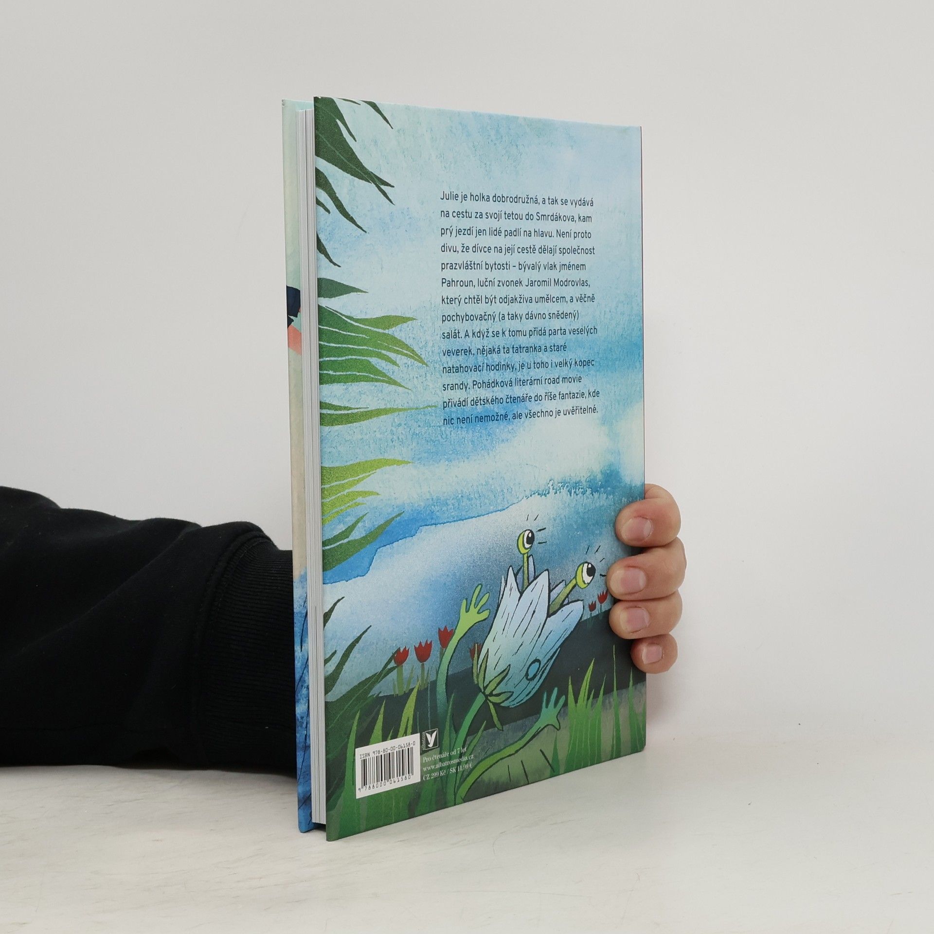 Julie je holka dobrodružná, a tak se vydává na cestu za svojí tetou do Smrdákova, kam prý jezdí jen lidé padlí na hlavu. Není proto divu, že dívce na její cestě dělají společnost prazvláštní bytosti – bývalý vlak jménem Pahroun, luční zvonek Jaromil Modrovlas, který chtěl být odjakživa umělcem, a věčně pochybovačný (a taky dávno snědený) salát. A když se k tomu přidá parta veselých veverek, nějaká ta tatranka a staré natahovací hodinky, je u toho i velký kopec srandy. Pohádková literární road movie, která přivádí dětského čtenáře do říše fantazie, kde nic není nemožné, ale všechno je uvěřitelné.
