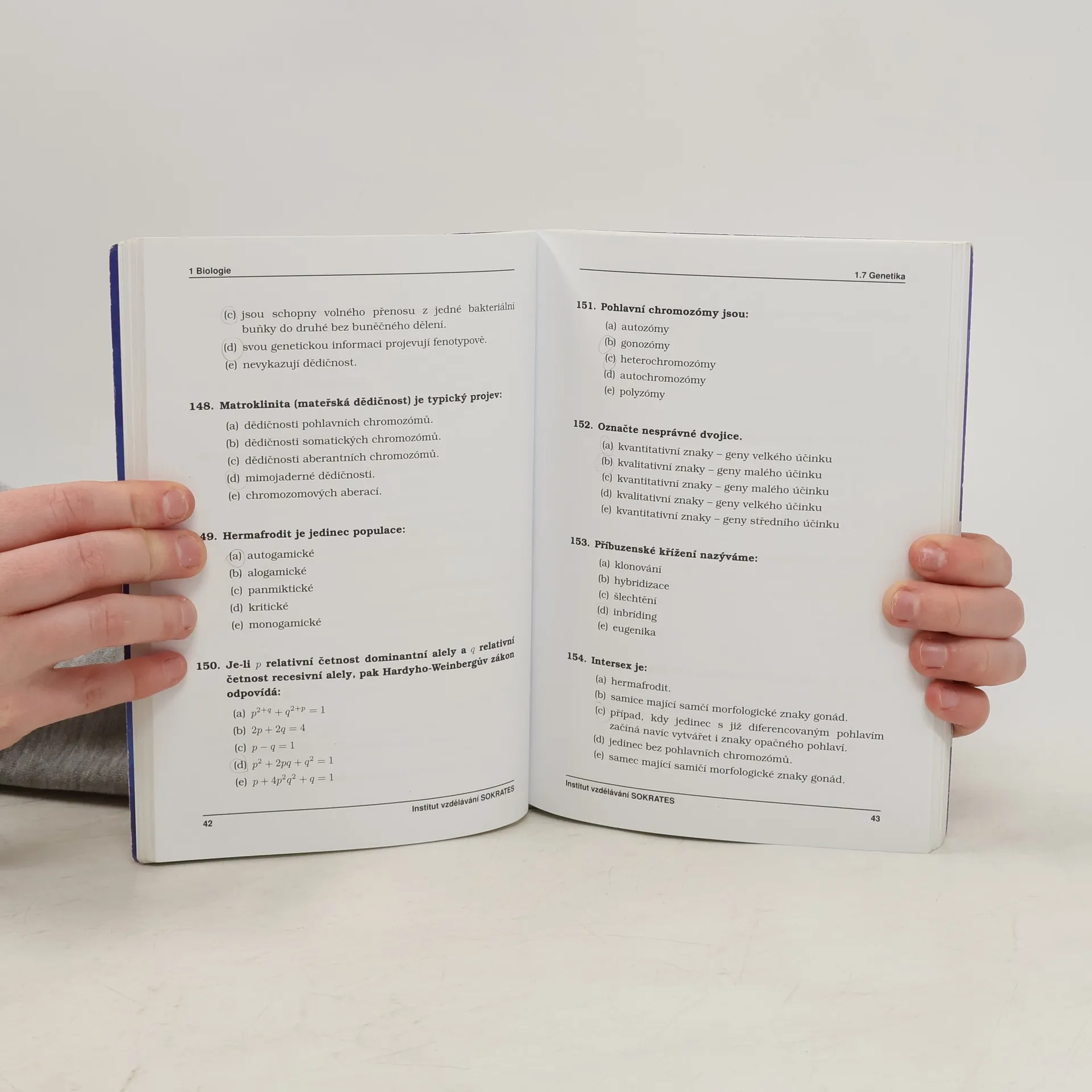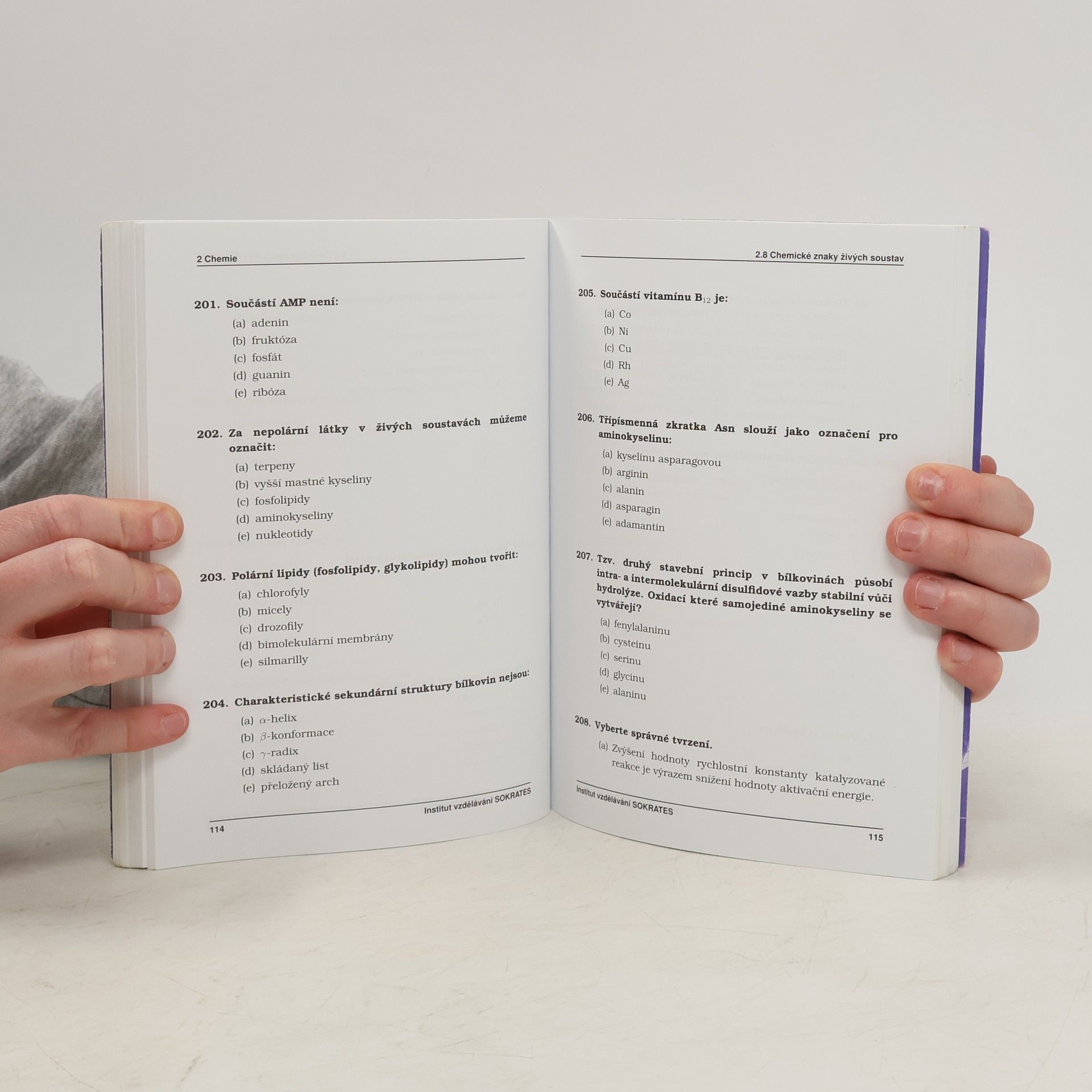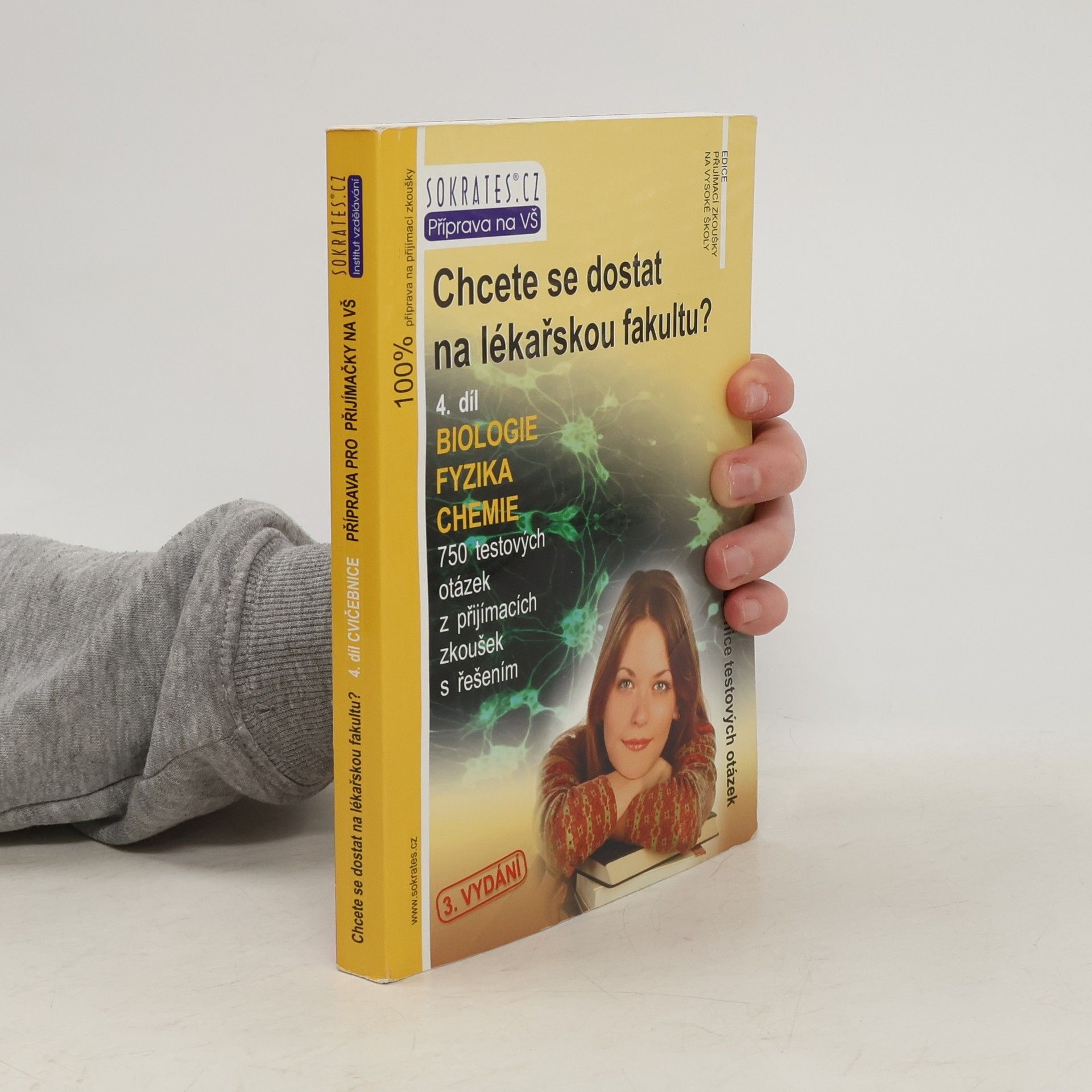 Cvičebnice testových otázek. Kniha je jedinečnou pomůckou určenou uchazečům o studium na lékařských, veterinárních, farmaceutických, zdravotně sociálních, elektrotechnických, technických, strojních, stavebních fakultách, fakultách zdravotnických studií obsahuje 750 testových otázek z minulých přijímacích zkoušek s řešením, a to z biologie, fyzika a chemie; určeno: lékařské fakulty UK v Praze, Plzni a Hradci Králové, Lékařská fakulta MU v Brně, Lékařská fakulta a Fakulta zdravotnických studií UP v Olomouci, Lékařská fakulta v Ostravě, Veterinární a farmaceutická univerzita Brno, Farmaceutická fakulta v Hradci Králové, Přírodovědecká fakulta Univerzity Karlovy v Praze, Zdravotně sociální fakulta JČU v Českých Budějovicích, Fakulta zdravotnických studií ZČU v Plzni, Fakulta zdravotnických studií Univerzity Pardubice, Ústav zdravotnických studií UJEP v Ústí nad Labem, Ústav zdravotnických studií TUL, Fakulta výrobních technologií UJEP v Ústí nad |Labem, Elektrotechnická fakulta ZČU v Plzni, Technická fakulta ČZU v Praze, Elektrotechnická, Strojní a Stavební fakulta ČVUT v Praze a další vysoké školy. Publikaci je vhodné zkombinovat s vysvětlením problematiky v 1. - 3. díle.