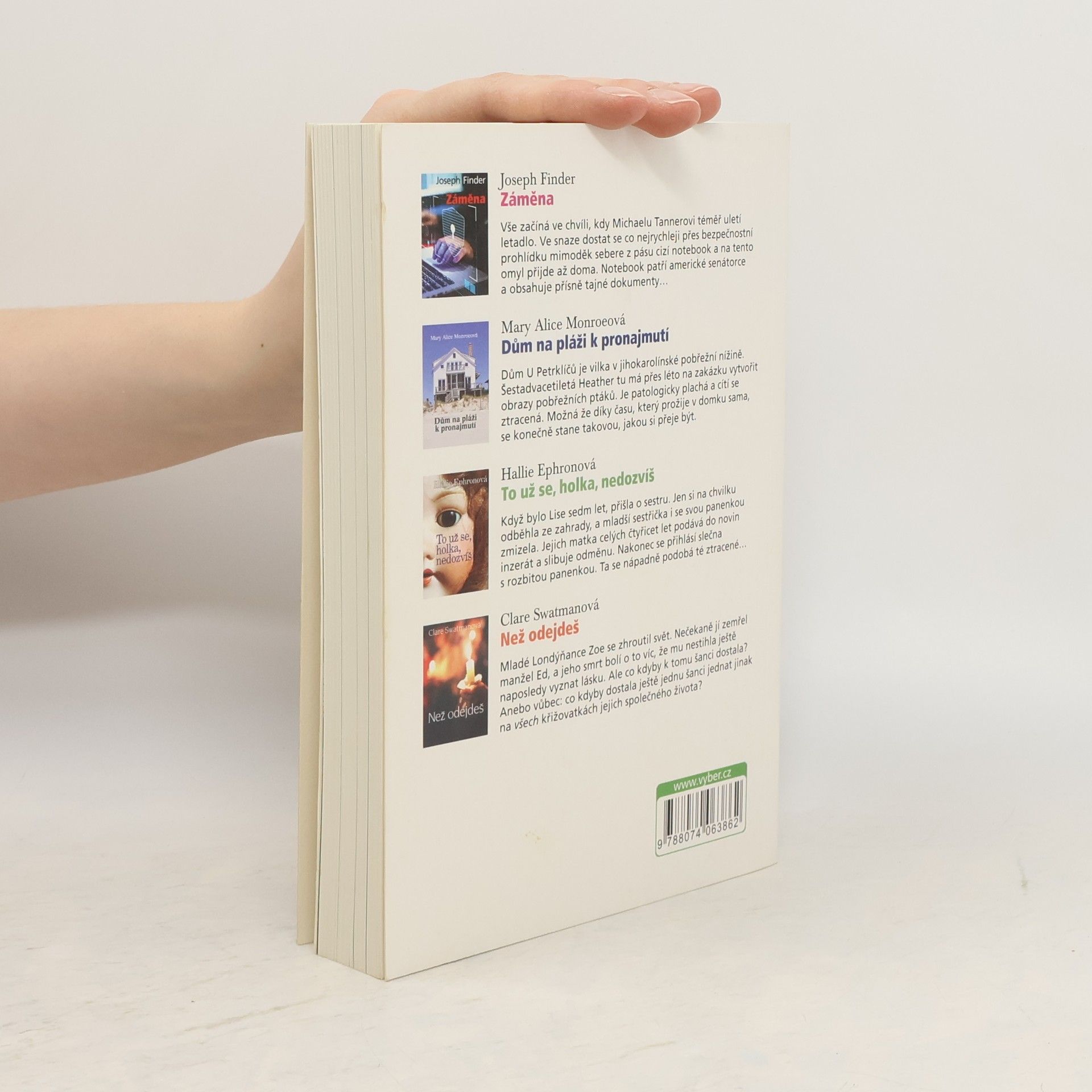 Záměna, Dům na pláži k pronajmutí, To už se, holka, nedozvíš, Než odjedeš, Joseph Finder, Mary Alice Monroe, Hallie Ephron, Clare Swatman