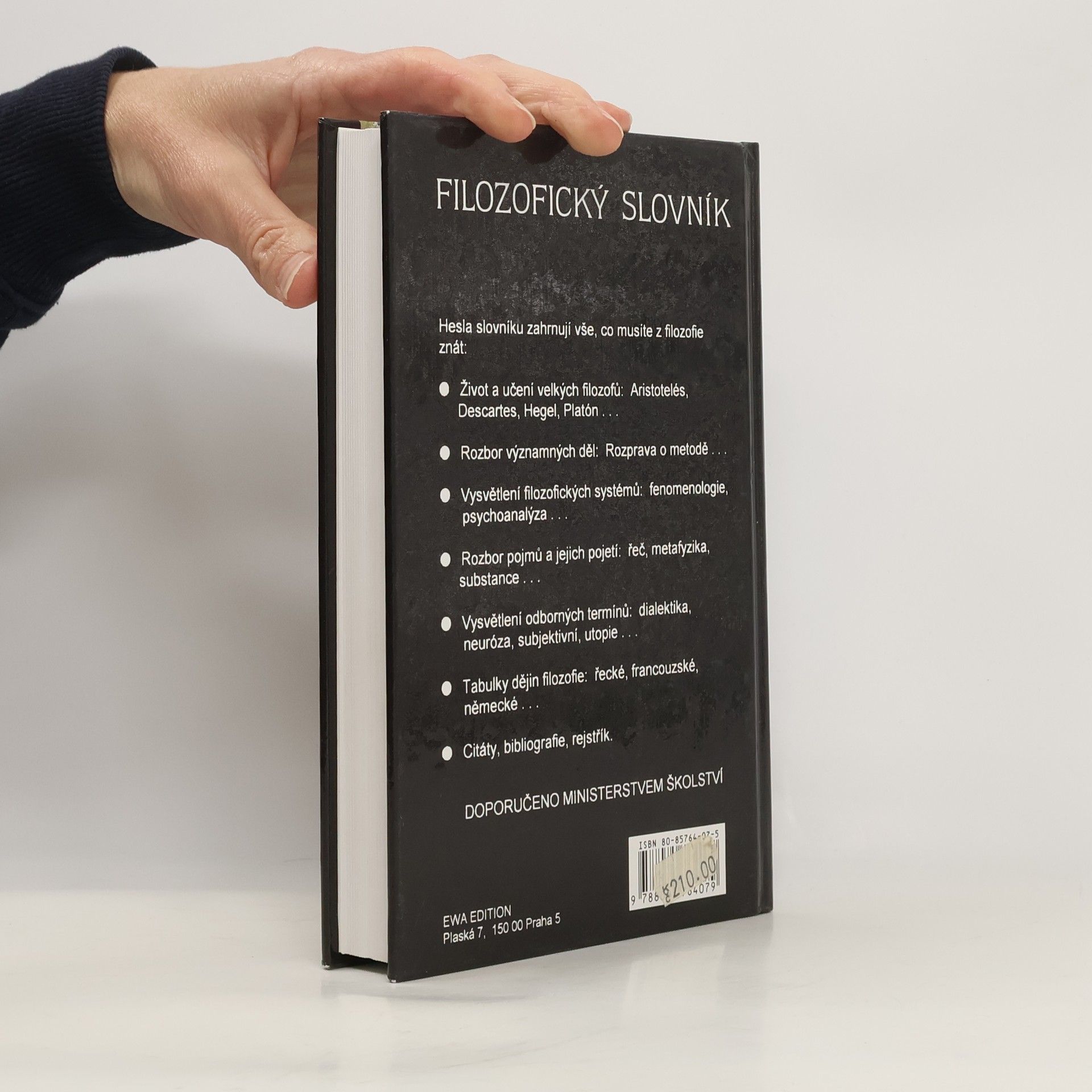 Hesla slovníku zahrnují vše, co musíte z filozofie znát: - život a učení velkých filozofů: Atistotelés, Descartes, Hegel, Platón... - Rozbor významných děl: Rozprava o metodě... - Vysvětlení filozofických systémů: fenomenologie, psychoanalýza... - Rozbor pojmů a jejich pojetí: řeč, metafyzika, substance... - Vysvětlení odborných termínů: dialektika, neuróza, subjektivní, subjektivní, utopie... - Tabulky dějin filozofie: řecké, francouzské, německé... - Citáty, bibliografie, rejstřík.