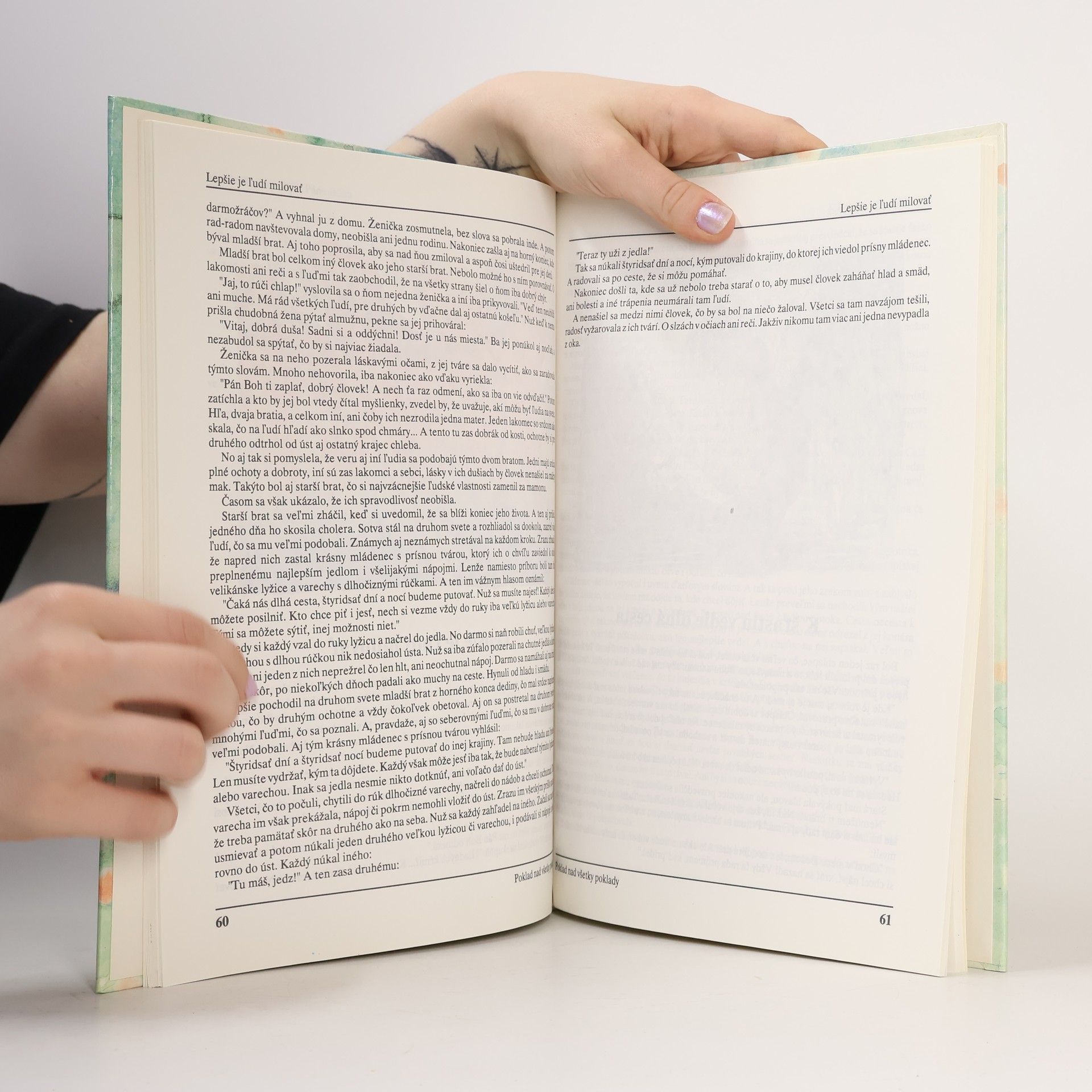 Obsah: 1. O chlapcovi, čo prinášal jar 2. Poklad nad všetky poklady 3. Radosť je cennejšia ako zlato 4. Rodičovské požehnanie stavia deťom domy 5. Chamtivá nevesta 6. Kto čo robí, sebe robí 7. O najväčšom zrne na svete 8. Bol raz jeden taký kvet 9. Ako jeden netvor mútil vodu 10. Starý otec a jeho vnuk Urban 11. Lakomca neminie trest 12. Kde je láska, tam sa aj slniečko rado pozerá 13. Zlatý kľúč spod buka 14. Chlieb má veľkú moc 15. Ten má, kto pracuje 16. Ako Samo začal slúžiť Pánu Bohu 17. Lepšie je ľudí milovať 18. K šťastiu vedie dlhá cesta 19. O bráne, akej nikde na svete niet 20. Paľkovo najväčšie šťastie 21. Tri "Pán Boh zaplať" 22. Každému na svete treba pomáhať 23. Tri odpovede 24. Svet neraz zle súdi 25. Jankove hračky 26. Gašpar, Melichar a Baltazár 27. Ako melú Božie mlyny 28. Marko a vlky 29. Otcove rady 30. Štedrovečerné uhlíky