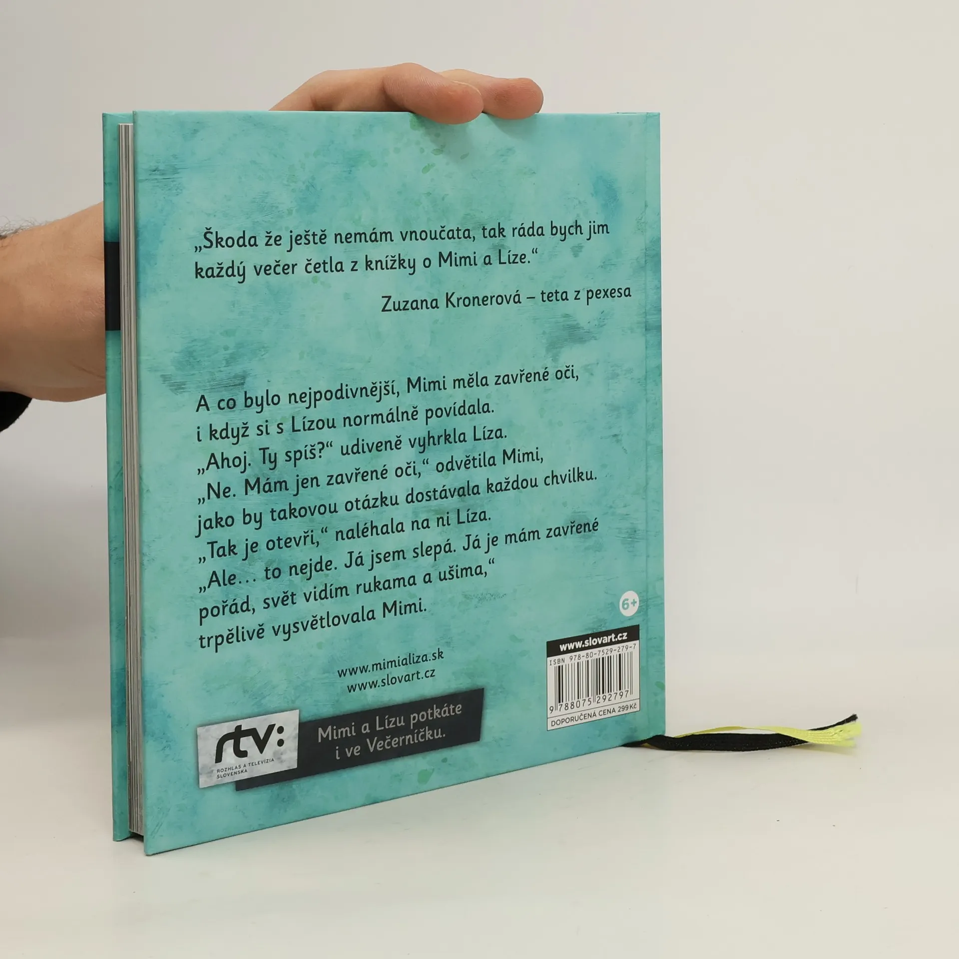 Tatínek říká, že jsem jeho sluníčko. Ale já jsem sluníčko nikdy neviděla. Jen cítím, jak mě hřeje. Ani svoje hračky nevidím. Ožijí, až když se jich dotknu prsty. To však není zázrak. Víte, já jsem slepá. Svět vidím rukama a ušima, a trochu dokonce i nosem a jazykem.“ Takhle se čtenářům představí sedmiletá Mimi. Její svět ale vůbec není nudný. Spolu s neposednou Lízou, která bydlí v jejich domě, poznává sousedy a prožívá jedno dobrodružství za druhým. Zrak najednou není důležitý a i dny jsou plné nekonečné fantazie, překvapení, tajemna, vzrušení… Dozvíte se třeba, jestli tety švadleny zachránily s Mimi a Lízou v látkové džungli osamělého krokodýla nebo jak to dopadlo na Štědrý den s pejskem z Dárečkova. Příběhy s krásnými obrázky vám kromě chvil, kdy se vám bude napětím tajit dech, přinesou i jasnější pohled na to, co je v životě důležité a hezké.