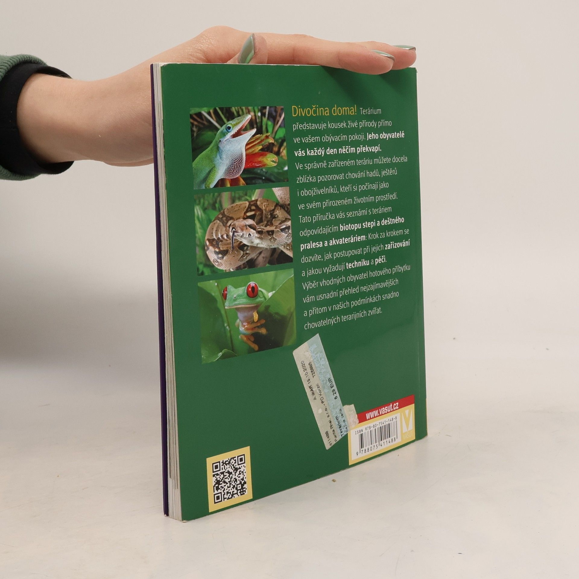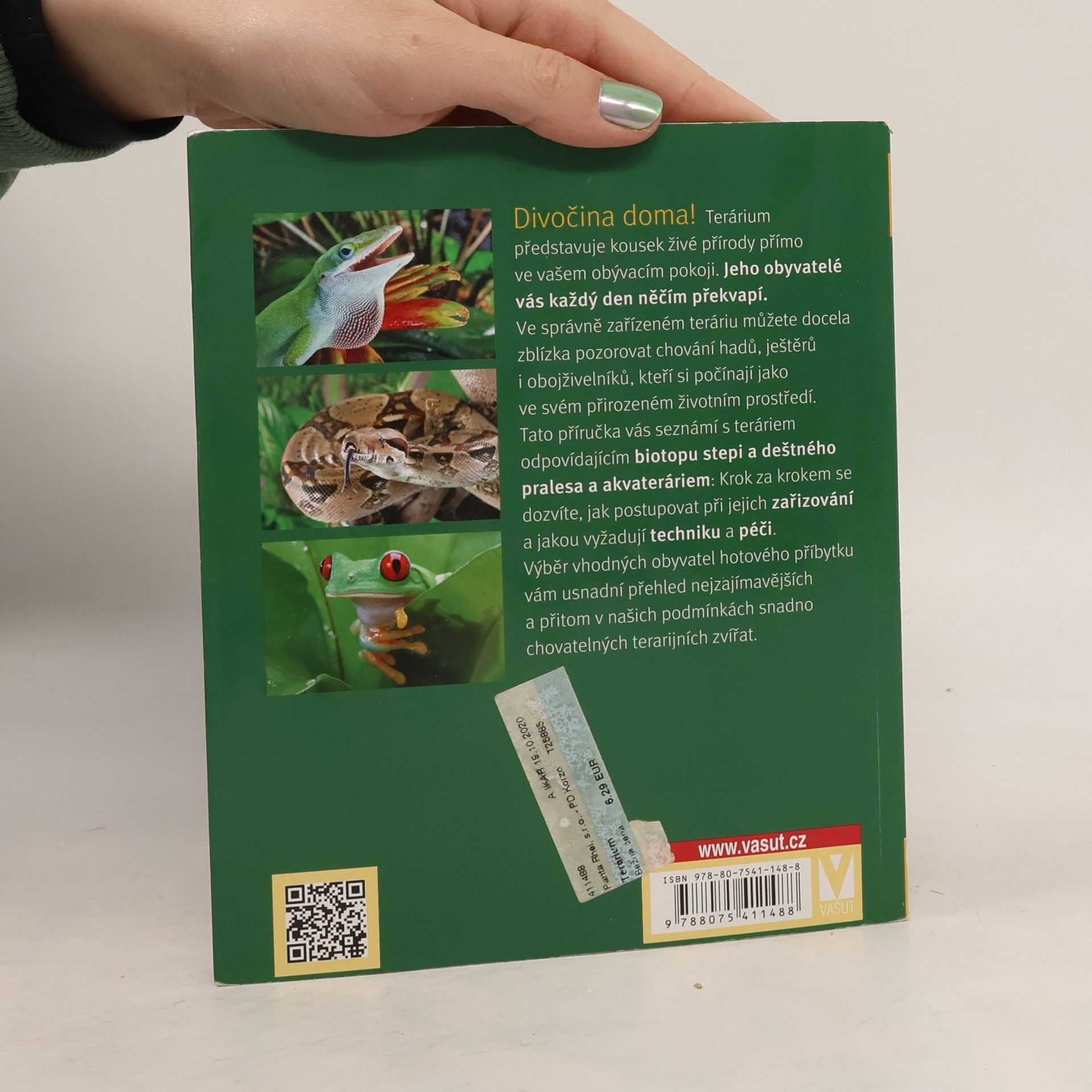 Divočina doma! Terárium představuje kousek živé přírody přímo ve vašem obývacím pokoji. Jeho obyvatelé vás každý den něčím překvapí. Ve správně zařízeném teráriu můžete docela zblízka pozorovat chování hadů, ještěrů i obojživelníků, kteří si počínají jako ve svém přirozeném životním prostředí. Tato příručka vás seznámí s teráriem odpovídajícím biotopu stepi a deštného pralesa a akvateráriem: Krok za krokem se dozvíte, jak postupovat při jejich zařizování a jakou vyžadují techniku a péči. Výběr vhodných obyvatel hotového příbytku vám usnadní přehled nejzajímavějších a přitom v našich podmínkách snadno chovatelných terarijních zvířat.