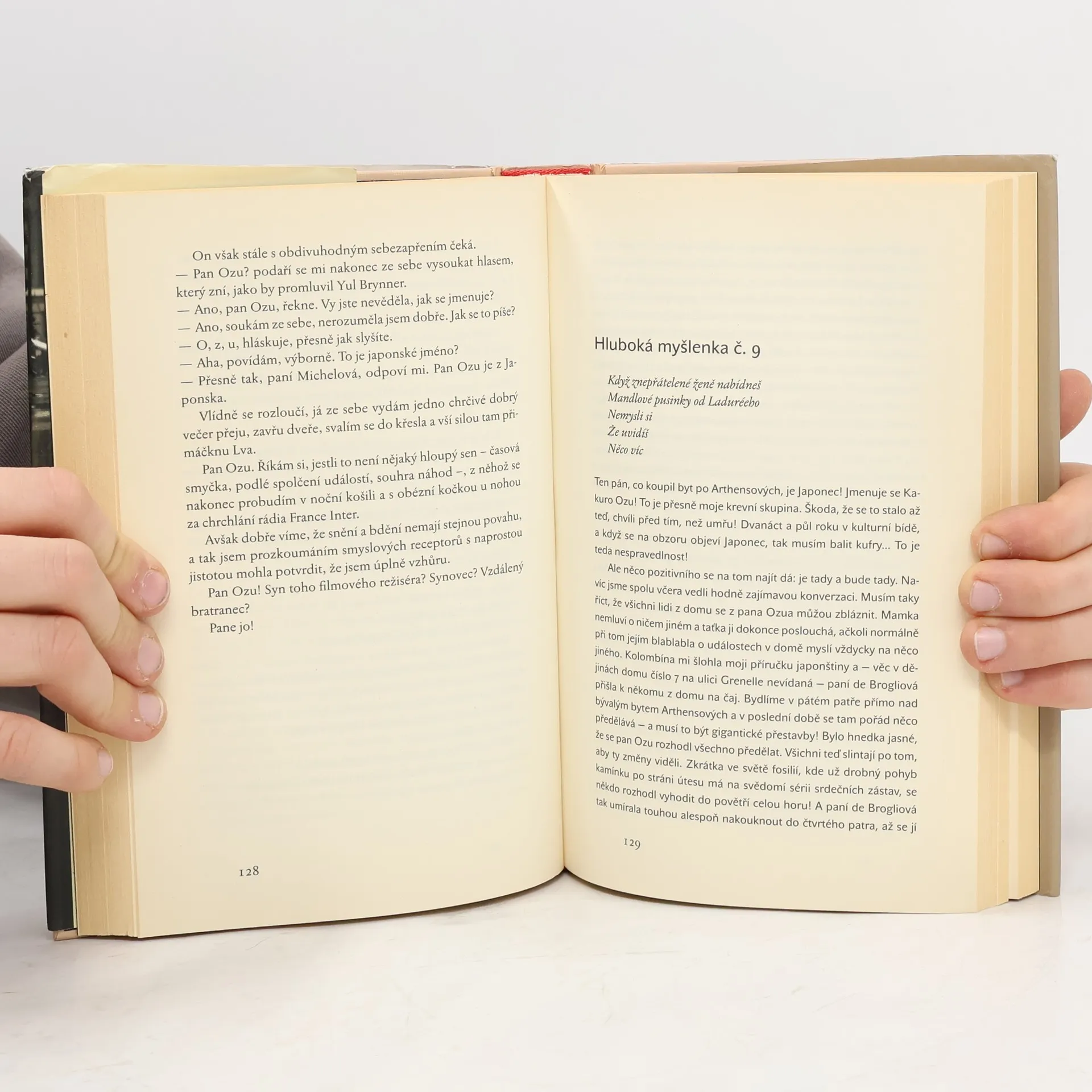 Jmenuju se Renée. Je mi padesát čtyři a už sedmadvacet let dělám domovnici v čísle 7 na ulici Grenelle. Je to pěkný soukromý dům se dvorem a zahradou uvnitř, který je rozdělený na osm velmi luxusních bytů. Všechny jsou obrovské a v každém někdo bydlí. Jsem malá, ošklivá, tlustá vdova, mám kuří oka a někdy, když mám těžké ráno, sípu jako mamut. Naprosto přesně odpovídám tomu, co obecné společenské vědomí označilo paradigmatem domovnice, takže nikoho by ani ve snu nenapadlo, že jsem sečtělejší a vzdělanější než všichni bohatí obyvatelé našeho domu. Jmenuju se Paloma, je mi dvanáct a bydlím v Paříži v jednom drahým bytě v čísle 7 na ulici Grenelle. Navzdory všemu tomuhle štěstí a všemu tomuhle bohatství už dost dlouho vím, že konečná stanice je stejně akvárko. A jak to, že to vím? Já jsem totiž dost inteligentní. Dokonce výjimečně inteligentní. Proto jsem se taky rozhodla. Na konci tohohle školního roku, v den svých třináctých narozenin, tedy přesně 16. června, spáchám sebevraždu. Muriel Barberyová píše o hlubokých věcech se svůdnou lehkostí, ironickým jazykem vypráví prostý a dojemný příběh o setkávání a míjení, o slepotě a vidění, o pomíjivosti i věčnosti.