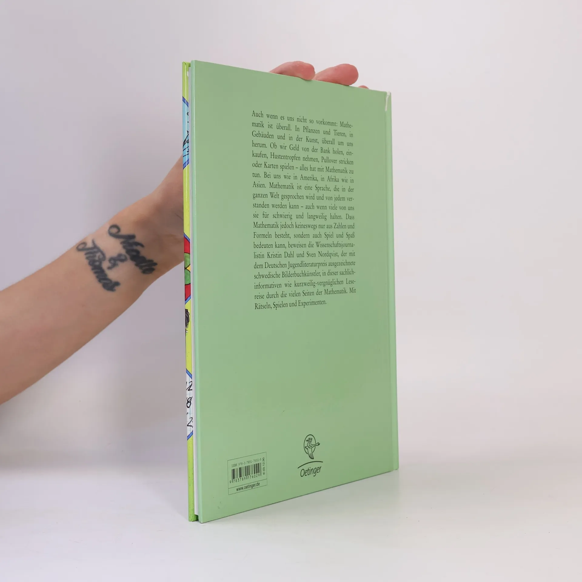 Auch wenn es uns nicht so vorkommt: Mathematik ist überall. In Pflanzen und Tieren, in Gebäuden und in der Kunst, überall um uns herum. Ob wir Geld von der Bank holen, einkaufen, Hustentropfen nehmen, Pullover stricken oder Karten spielen - alles hat mit Mathematik zu tun. Bei uns wie in Amerika, in Afrika wie in Asien. Mathematik ist eine Sprache, die in der ganzen Welt gesprochen wird und von jedem verstanden werden kann - auch wenn viele von uns sie für schwierig und langweilig halten. Dass Mathematik jedoch keineswegs nur aus Zahlen und Formeln besteht, sondern auch Spiel und Spaß bedeuten kann, beweisen die Wissenschaftsjournalistin Kristin Dahl und Sven Nordqvist, der mit dem Deutschen Jugendliteraturpreis ausgezeichnete schwedische Bilderbuchkünstler, in dieser sachlich-informativen wie kurzweilig-vergnüglichen Lesereise durch die vielen Seiten der Mathematik. Mit Rätseln, Spielen und Experimenten.