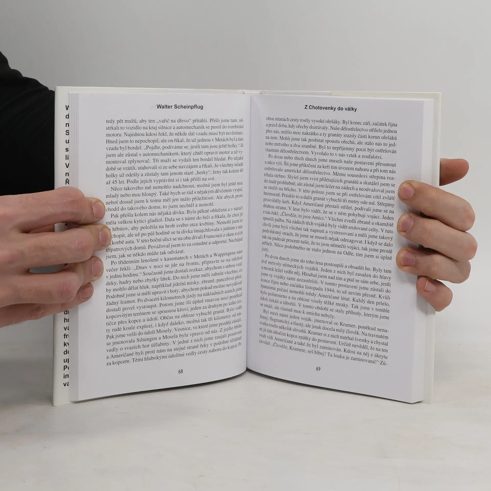 Walter Scheinpflug, narozený v roce 1925 v Chotovence, vypráví o svých válečných a poválečných zážitcích mezi lety 1943-46. Jeho rodná obec, blízko Světce u Bíliny, již neexistuje. Po vyučení zedníkem byl v osmnácti letech povolán do Říšské pracovní služby, ale na radu otce se nepřihlásil do Waffen-SS. V roce 1944 však podlehl touze „něco zažít“ a po absolvování poddůstojnické školy byl nasazen v Dánsku. Po invazi Spojenců v Normandii se jeho jednotka přesunula do Francie, kde se účastnil těžkých ústupových bojů. Následně strávil několik měsíců v Kurmarku a na východní frontě, kde byl v květnu zajat sovětskou armádou. Podařilo se mu uprchnout a vrátit domů, poté byl internován v československém táboře a pracoval jako zemědělský dělník. V roce 1946 uprchl do sovětské okupační zóny a žil v pozdější NDR. Jeho příběh ilustruje osudy mladých chlapců, kteří se nechali ovlivnit nacionalistickou propagandou. Walter vzpomíná i na bezkonfliktní vztahy s Čechy, přičemž jeden z jeho českých vrstevníků mu po válce zřejmě zachránil život během „čistek“ v pohraničí.