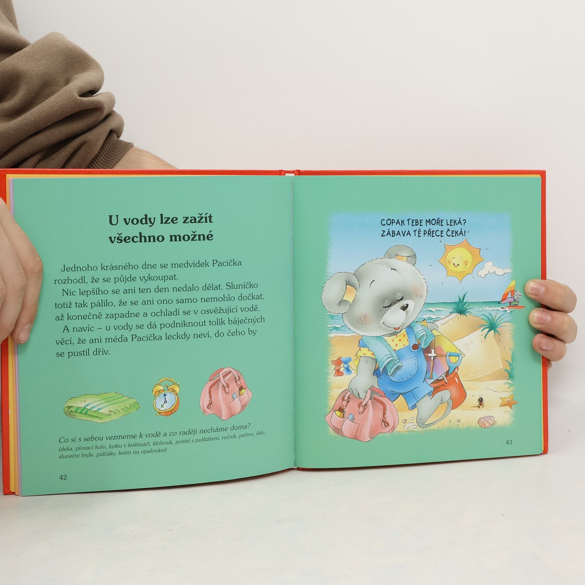 Rozmanitý příběh medvídka Pacičky, který má kolem sebe spousty kamarádů a společně sází kytičky nebo staví hrad z písku. Pro předškolní děti. Medvídek Pacička má o zábavu i práci postaráno. Při výletu do hor se skamarádí s kamzíkem, při práci na zahrádce mu k tomu vesele cvrdliká vrabec Čenda. Na pláži zase staví hrad z písku a při plavání si povídá s rybičkou. Zpestřením knihy je to, že obsahuje jednoduché kvízy a otázky, které souvisí s jednotlivými příběhy. Děti z nabízených možností vybírají správnou odpověď. Na každém obrázku je také skryta beruška. Najdete ji? (www.mlp.cz)