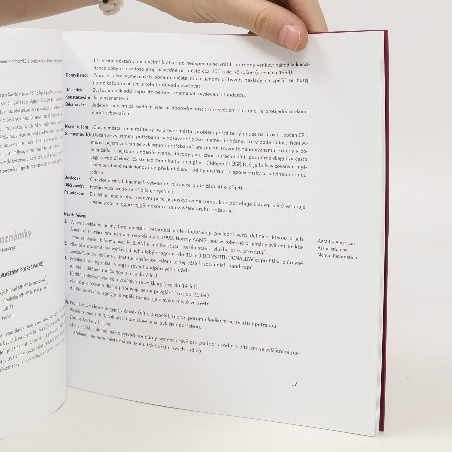 Kniha zaznamenává kroky jednoho (ojedinělého) ředitele ústavu sociální péče na cestě k proměně této instituce na regionální agenturu sociálních služeb, jejímž hlavním smyslem je praktická obhajoba přirozených práv lidí ohrožených institucionalizovanou péčí. Kniha textů Milana Chába, který byl od roku 1981 až do své smrti v roce 2001 ředitelem Ústavu sociální péče v Horní Poustevně.Jako ředitel usiloval o proměnu ústavu na síť sociálních služeb komunitního typu. Texty zařazené do knihy ilustrují jeho úsilí; současně jsou inspirací pro ostatní, kteří se zajímají o transformaci ústavní péče v ČR.