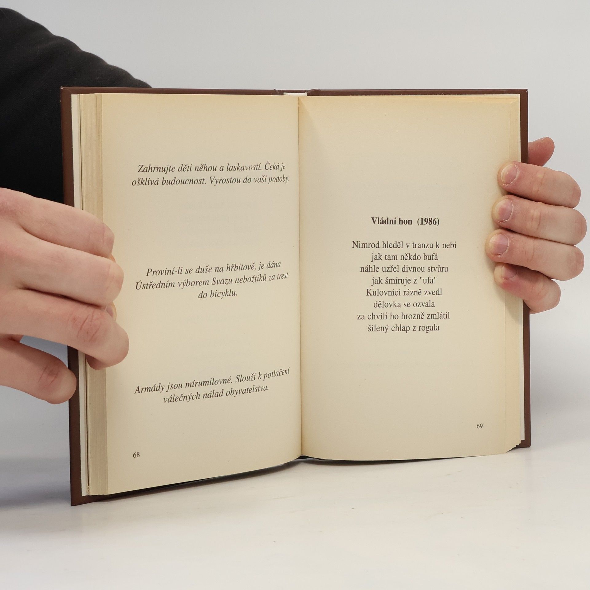 Chronologicky zabírá tento výbor období od roku 1967 až prakticky do současnosti. Středem jeho zájmu je glosování událostí na naší společenské a politické scéně s ironií a nadhledem, vtipem i sarkasmem.