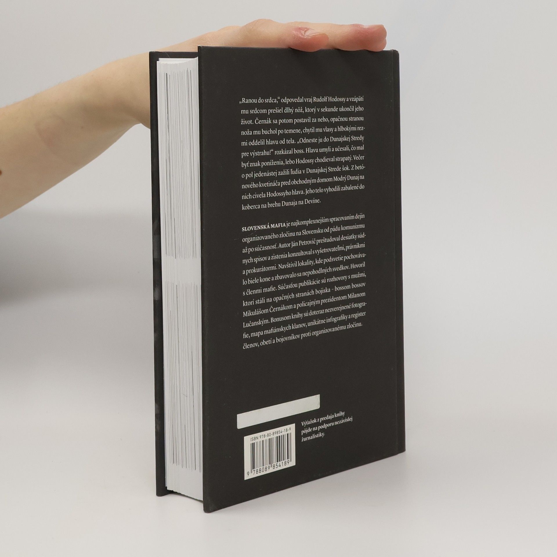 Slovenská mafia je najkomplexnejším spracovaním dejín organizovaného zločinu na Slovensku od pádu komunizmu až po súčasnosť. Autor Ján Petrovič sa téme slovenskej mafie venuje od začiatku novinárskej kariéry. Pri príprave vyše 400-stranovej publikácie hovoril s mafiánmi, ktorí prežili vybavovanie si účtov v podsvetí, skončili za mrežami alebo sú dnes na slobode. Bol na miestach, kde dochádzalo k výbuchom a ďalším násilným trestným činom. Navštívil lokality, kde podsvetie pochovávalo biele kone a zbavovalo sa nepohodlných svedkov. Preštudoval desiatky súdnych spisov a svoje zistenia konzultoval s vyšetrovateľmi, právnikmi a prokurátormi. Bonusom knihy sú doteraz nezverejnené fotografie, mapa mafiánskych klanov, unikátne infografiky a register členov, obetí a bojovníkov proti organizovanému zločinu s vyše 600 položkami. Súčasťou knihy sú exkluzívne rozhovory s mužmi, ktorí stáli na opačných stranách bojiska - bossom bossov Mikulášom Černákom a policajným prezidentom Milanom Lučanským. Výťažok z predaja knihy pôjde na podporu nezávislej žurnalistiky.