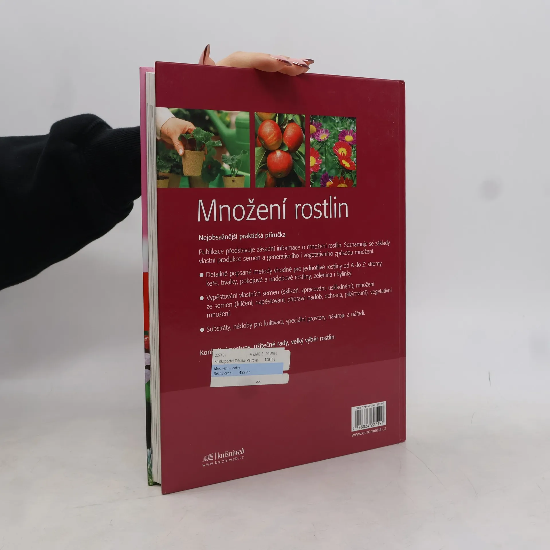 Publikace se věnuje způsobům vlastní produkce semen a generativního i vegetativního způsobu množení. Bod po bodu probírá jednotlivé kroky: sklizeň, zpracování, uskladnění, klíčení, napěstování, přípravu nádob, ochranu, pikýrování atd. Popisuje metody vhodné pro jednotlivé rostliny (stromy, keře, trvalky, pokojové a nádobové rostliny, zelenina i bylinky) a dává tipy, jaké použít substráty, nádoby pro kultivaci, nástroje, nářadí ad.