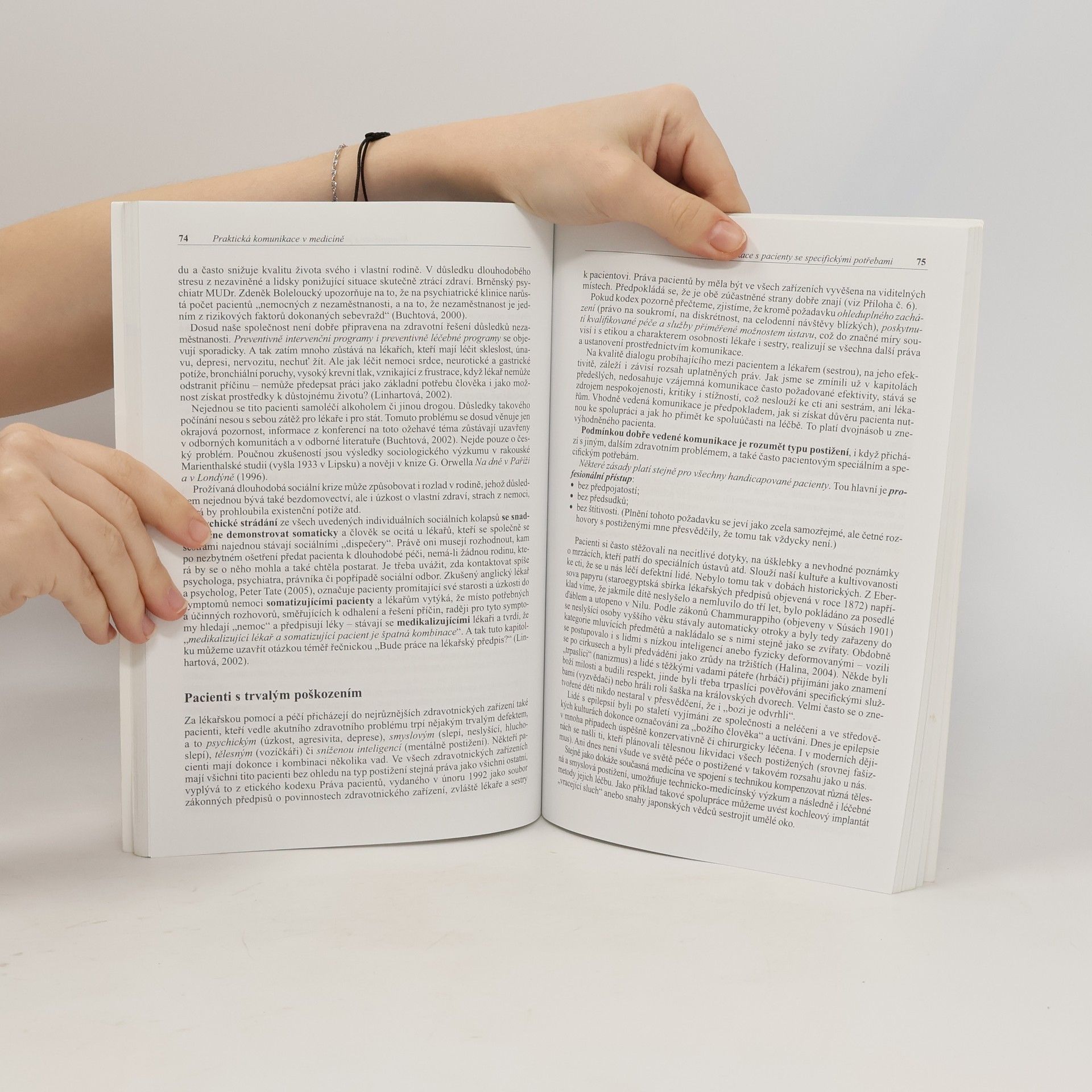 Skvěle napsaná kniha, která je pro naši odbornou veřejnost potřebná jako sůl, v sobě spojuje prvky vědeckého díla i učebnice. Autorka, která nejen učí na vysoké škole, ale je i známá publicistka, jasně dokazuje, že ví, o čem píše. Navíc celou problematiku podává natolik poutavě, že se od textu nelze odtrhnout. Odborný text je místy lákavě jinde až explozivně doplněn životními příběhy a kazuistikami. Celá kniha dokazuje, že slovo v rukou lékaře je jako skalpel v rukou chirurga. Publikace je určena především studujícím a lékařům všech medicínských oborů, sestrám, psychologům – tedy všem zdravotníkům v praxi klinické i ambulantní, ale také všem zájemcům o dobrou a účinnou komunikaci, v neposlední řadě i samotným pacientům. Publikace je vhodná jak pro pre- tak pro postgraduální získávání zkušeností. Měla by se stát povinnou literaturou pro všechny zdravotníky – a nejen pro ně!