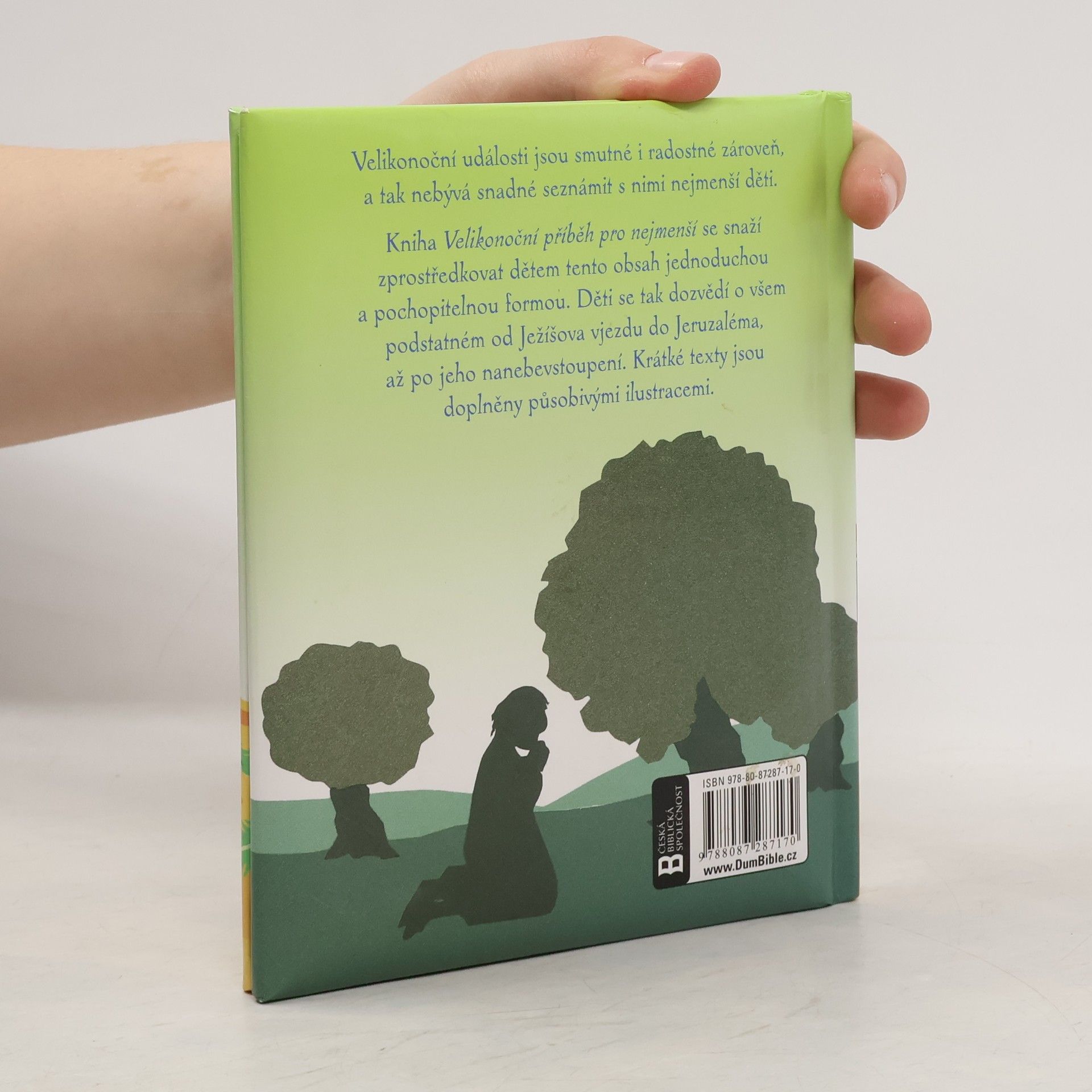 Velikonoční události jsou smutné i radostné zároveň, a tak nebývá snadné seznámit s nimi nejmenší děti. Kniha Velikonoční příběh pro nejmenší se snaží zprostředkovat dětem tento obsah jednoduchou a pochopitelnou formou. Děti se tak dozvědí o všem podstatném od Ježíšova vjezdu do Jeruzaléma, až po jeho nanebevztoupení. Krátké texty jsou doplněny působivými ilustracemi.