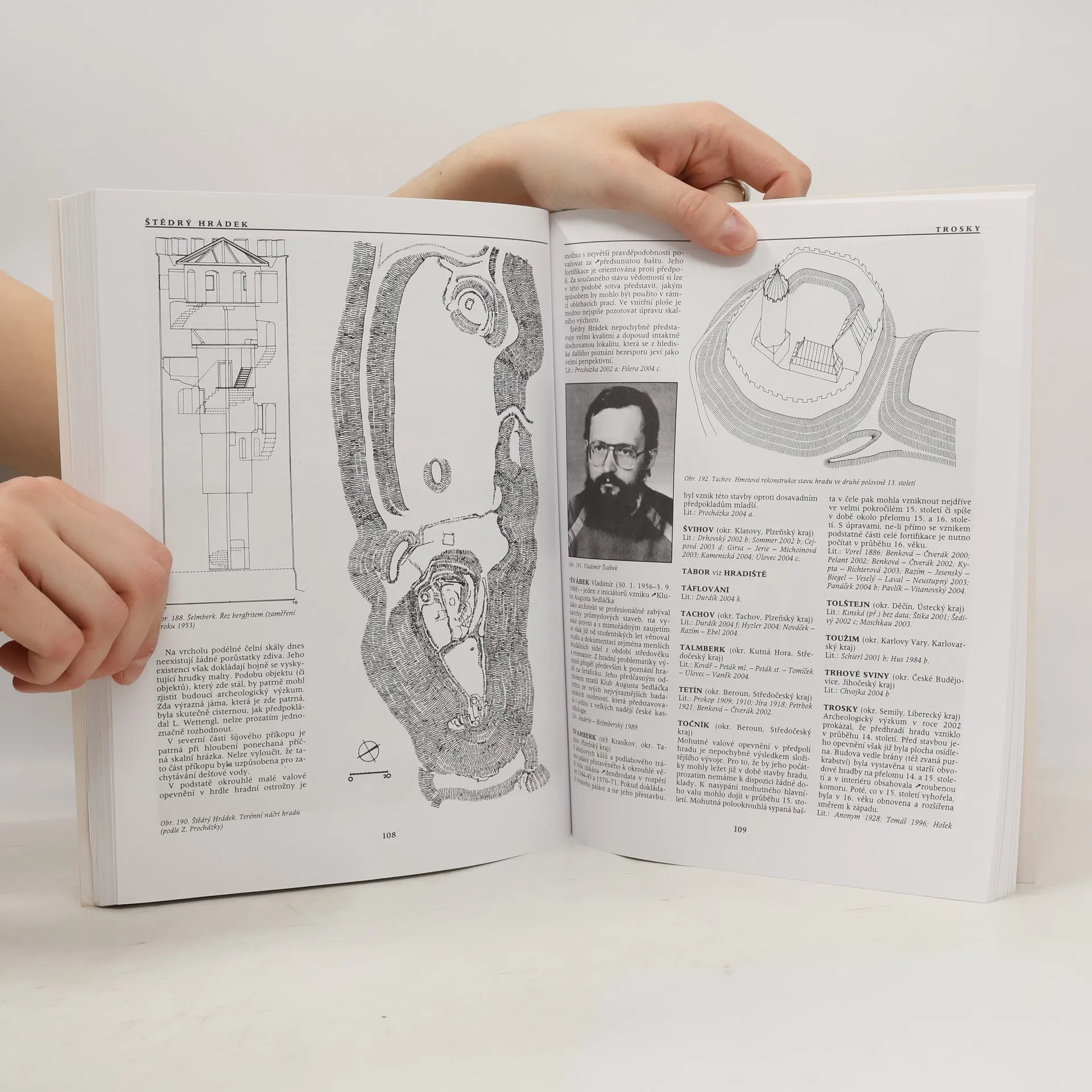 V již druhém svazku dodatků přináší autor jednak několik nových lokalit, ale především - na základě terénních výzkumů, publikovaných zpráv, ale i nově objevených archivních pramenů, a hlavně ilustrací a nové literatury (Dodatky a doplňky ke stávajícím heslům). Svazek uzavírá podrobná bibliografie kastellologické literatury 2002-2004.