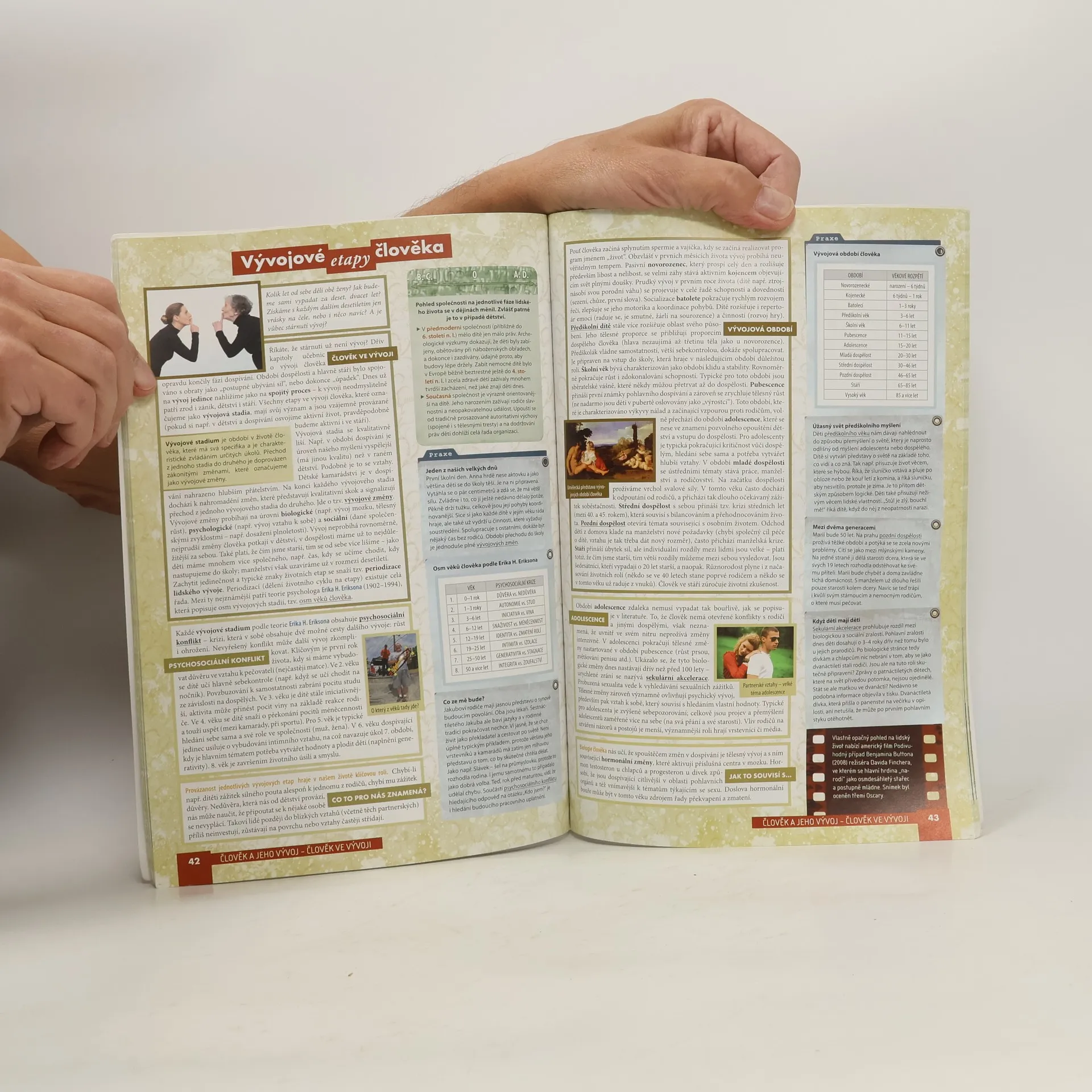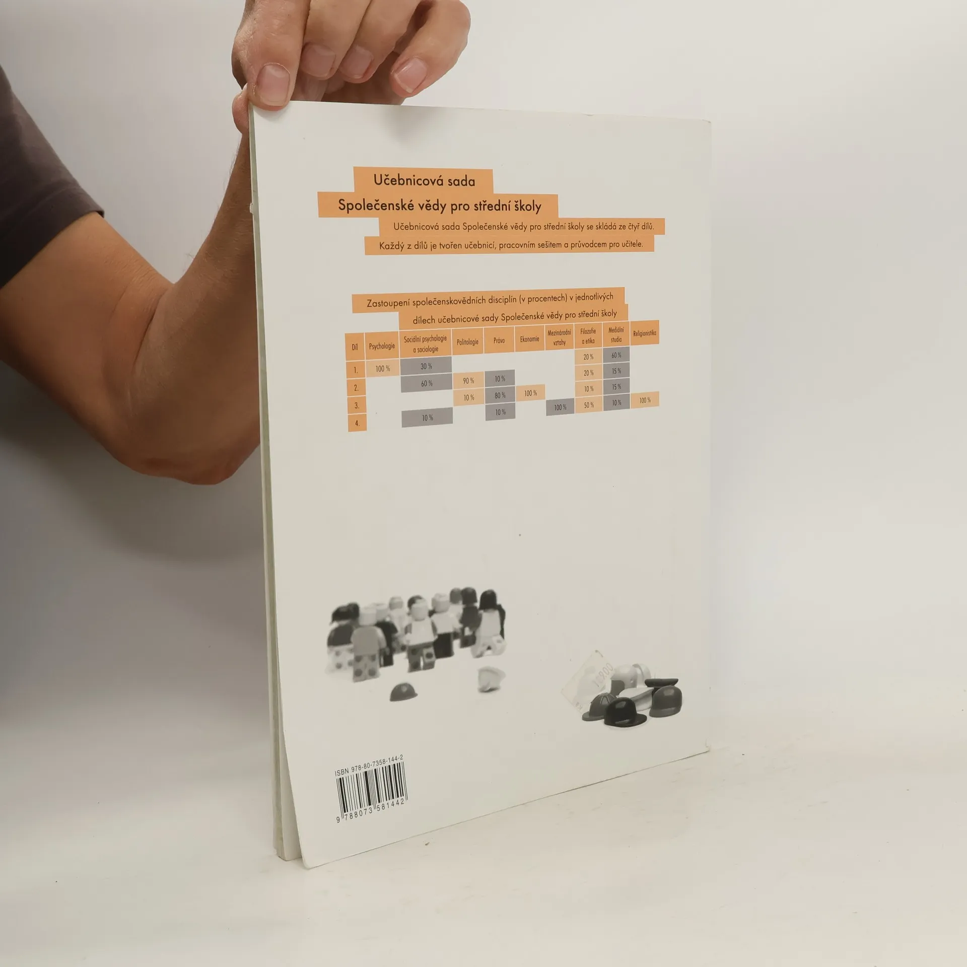 Učebnice přistupuje novým způsobem k problematice společenských věd, představujíc učivo s ohledem na každodenní souvislosti a požadavky současných studentů. Texty jsou zpracovány a kontrolovány vysokoškolskými odborníky, což zajišťuje jejich spolehlivost a faktickou přesnost. Je zpracována podle požadavků RVP pro gymnaziální a střední odborné vzdělávání, což umožňuje její využití v obou typech škol. Naplňuje legislativní požadavky jak po stránce obsahu, tak rozvíjením klíčových kompetencí žáků, zohledněním mezipředmětových vztahů a průběžným zařazováním průřezových témat. Učebnice je rozdělena do čtyř tematických celků, které se zaměřují na klíčové výkladové problémy: poznávání skutečnosti, vývoj člověka a vlivy na něj, individuální odlišnost a psychologické základy, a pravidla soužití s druhými. Tyto celky jsou dále děleny na kapitoly a podkapitoly, což odpovídá struktuře pracovního sešitu. Podkapitoly, jako základní jednotky učebnice, jsou buď jednostránkové, nebo dvoustránkové, odpovídající časové dotaci. Učebnice je koncipována tak, aby zajišťovala provázanost jednotlivých podkapitol a zároveň usnadnila odlišení povinného učiva od doplňujících informací.