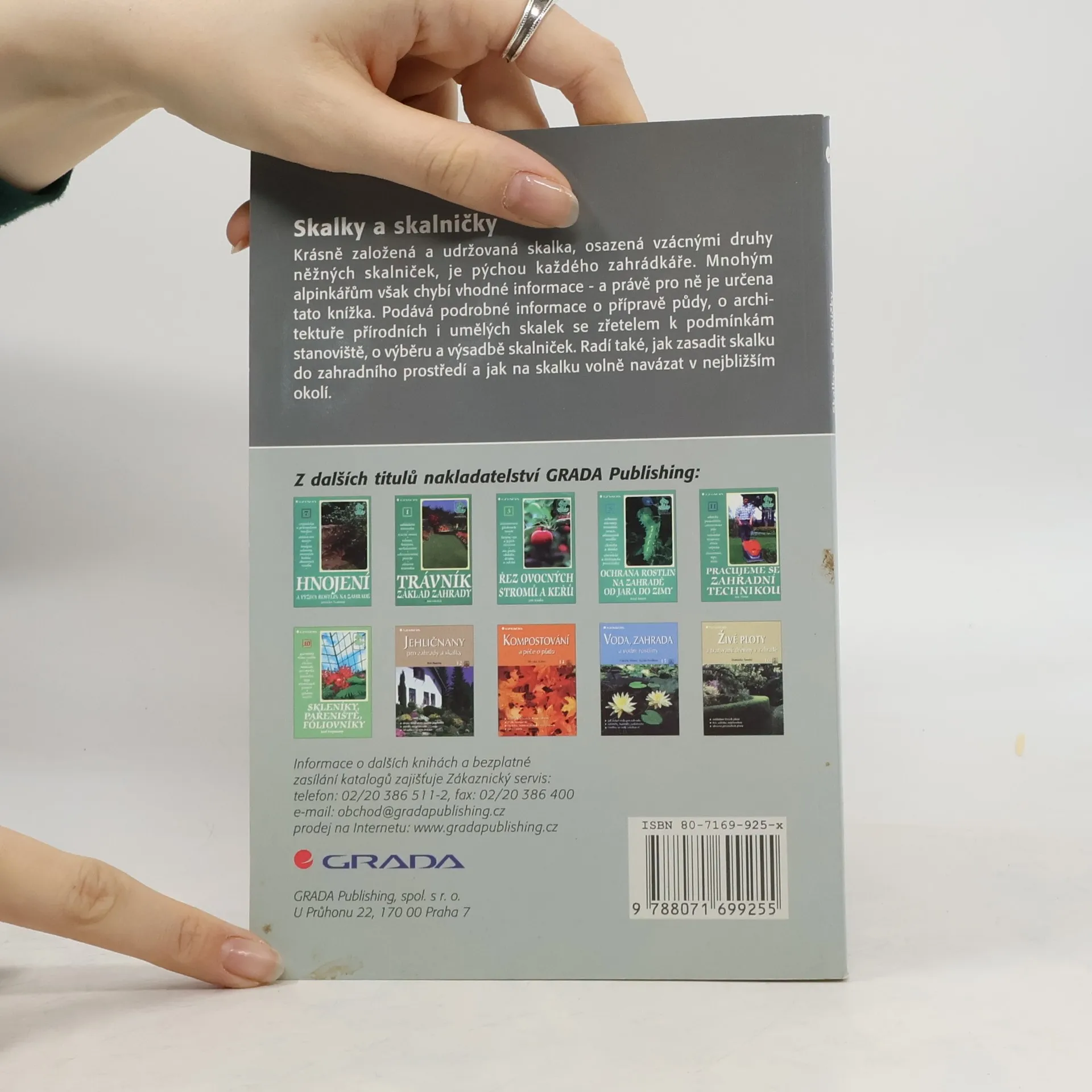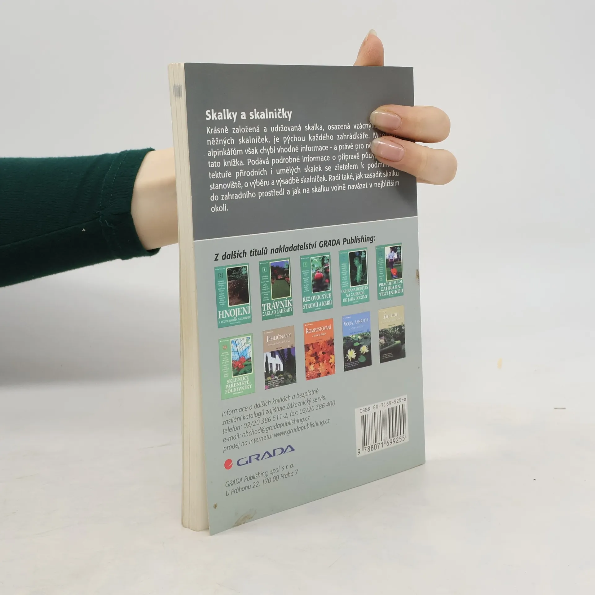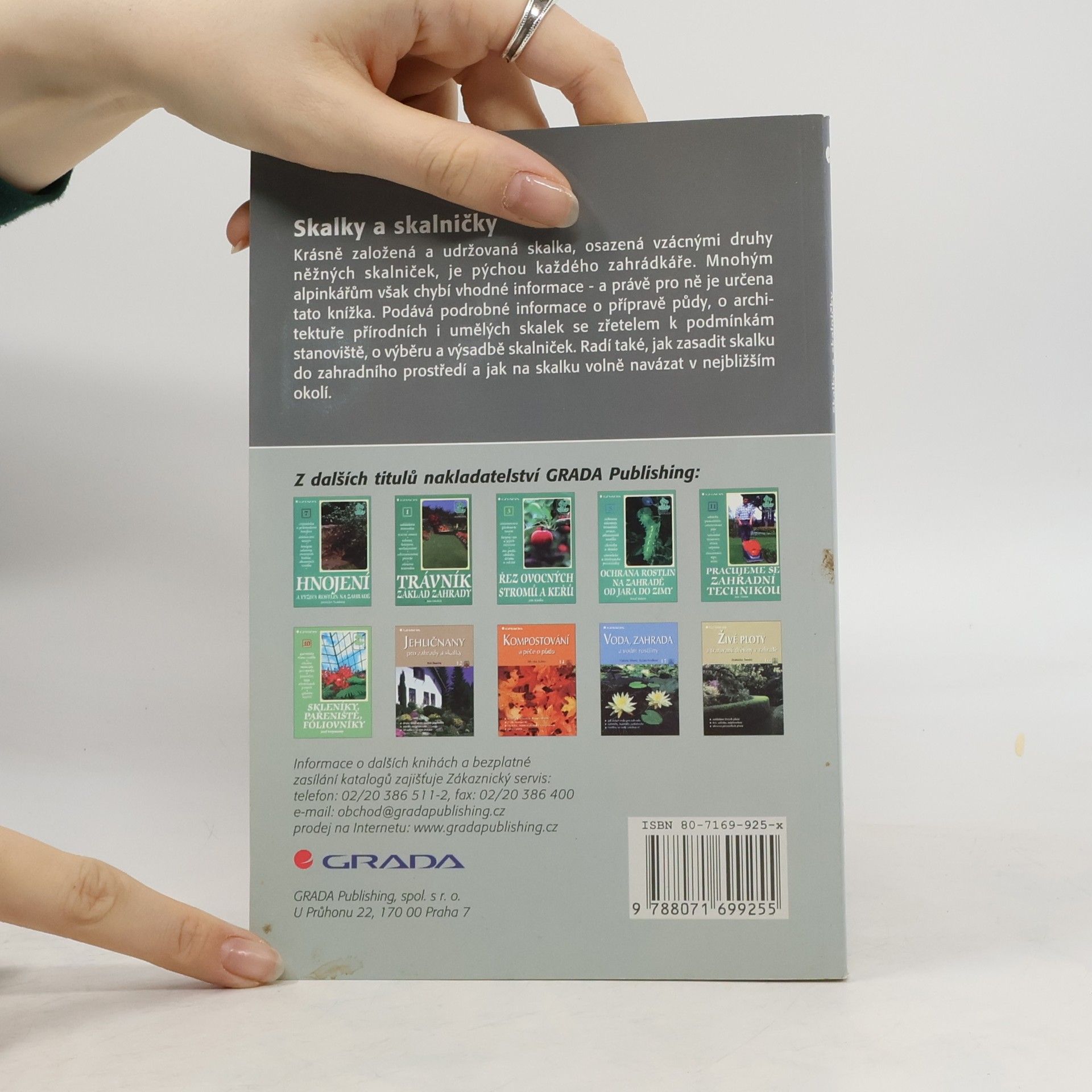 Praktické rady jak vytvořit skalku a jak o ni pečovat. Kniha podává podrobné informace o druzích skalek, jejich stavbě a estetických zákonitostech, které by měly skalky splňovat. Autor poradí při výběru vhodného umístění, přípravě půdy a podstatnou část textu věnuje rostlinám pěstovaným na skalkách a faktorům, které ovlivňují jejich správný růst. Kniha je doplněna řadou barevných fotografií, přehledných nákresů a rejstříkem latinských názvů druhů a kultivarů. 107 stran a 25 stran barevné přílohy.