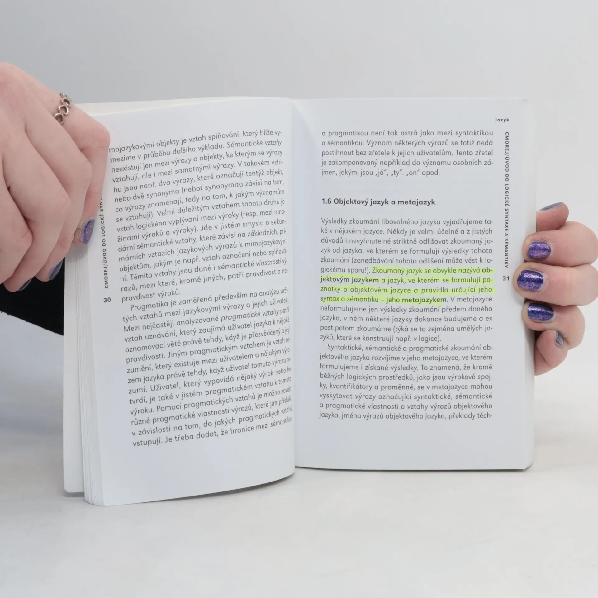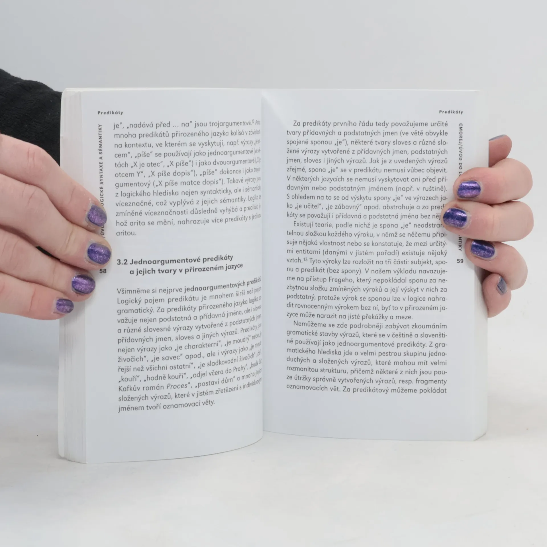 Cílem knihy je obeznámit čtenáře se základními pojmy logické syntaxe a sémantiky jazyka prvního řádu a s několika aplikacemi pojmového aparátu těchto disciplín na logickou analýzu některých druhů výrazů přirozeného jazyka.