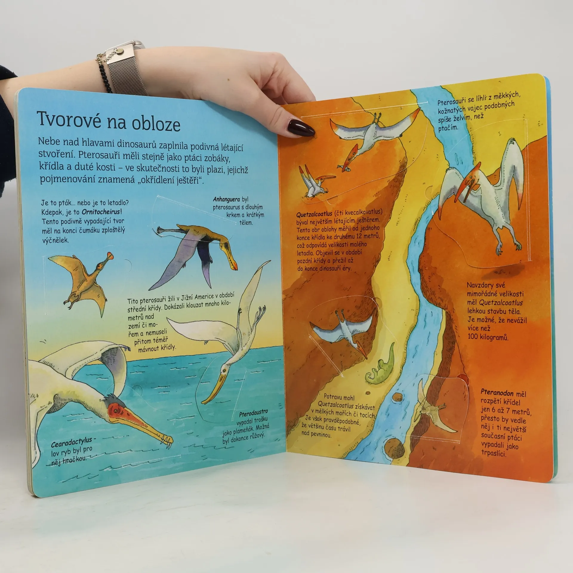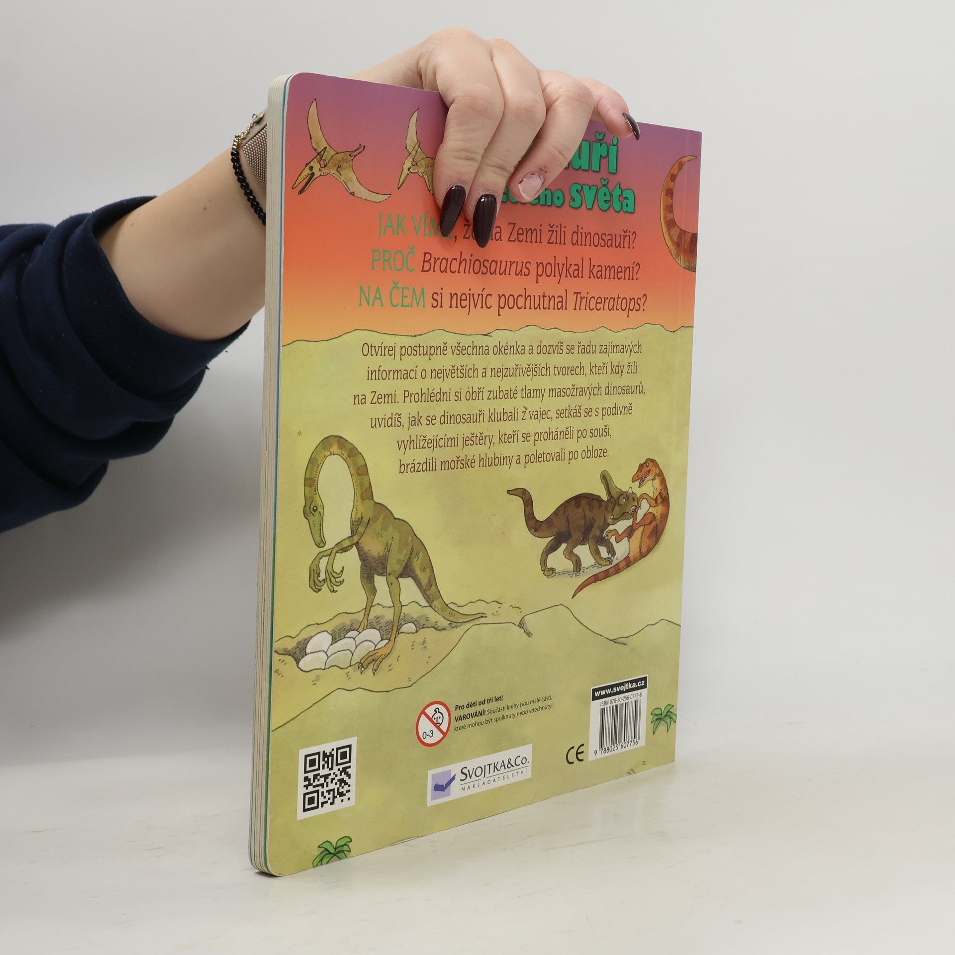 Jak jsme se dozvěděli, že na Zemi žili dinosauři? Proč brachiosaurus polykal kamení? Na čem si nejvíce pochutnal triceratops? Otevři postupně všech 50 okének a dozvíš se radu zajímavých informací o největších a nejzuřivějších tvorech, kteří kdy žili na Zemi. Prohlédneš si obří zubaté tlamy masožravých dinosaurů, uvidíš, jak se dinosauři klubali z vajec, setkáš se s podivně vyhlížejícími ještěry, kteří se proháněli po souši, brázdili mořské hlubiny nebo poletovali po obloze. Tak vzhůru na dobrodružnou cestu pradávným světem dinosaurů!