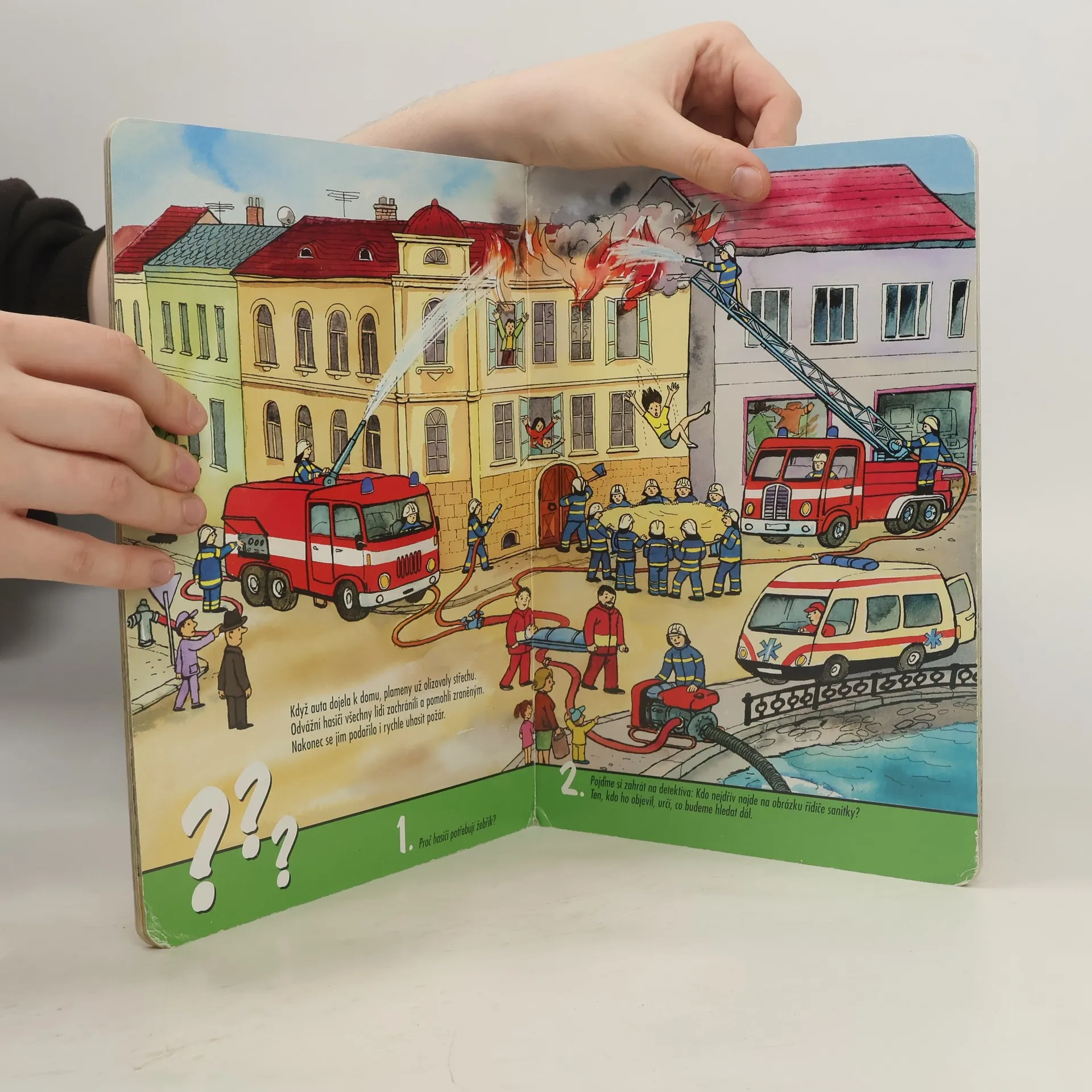 Snad každý, a nejen kluci a holčičky, se ohlédne, když uslyší houkat hasičské auto. Pronikavé “Hóóóřííí!” se rozléhá dodaleka. Co hasiči dělají a co je třeba udělat, když zjistíme, že někde hoří nebo proč hasiči potřebují žebřík se děti doví z obrázkového leporela.